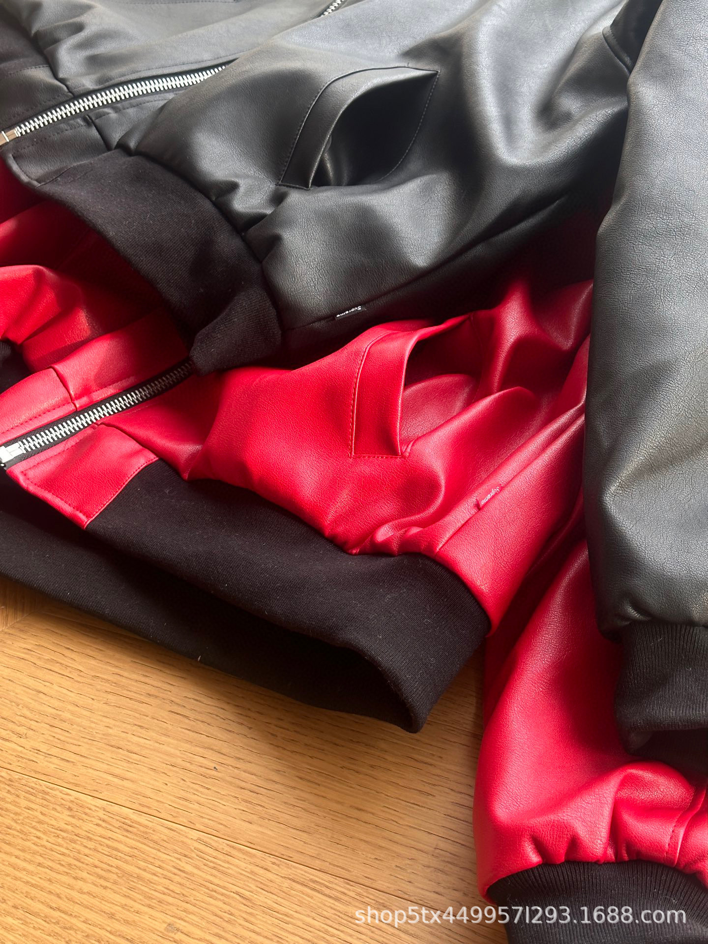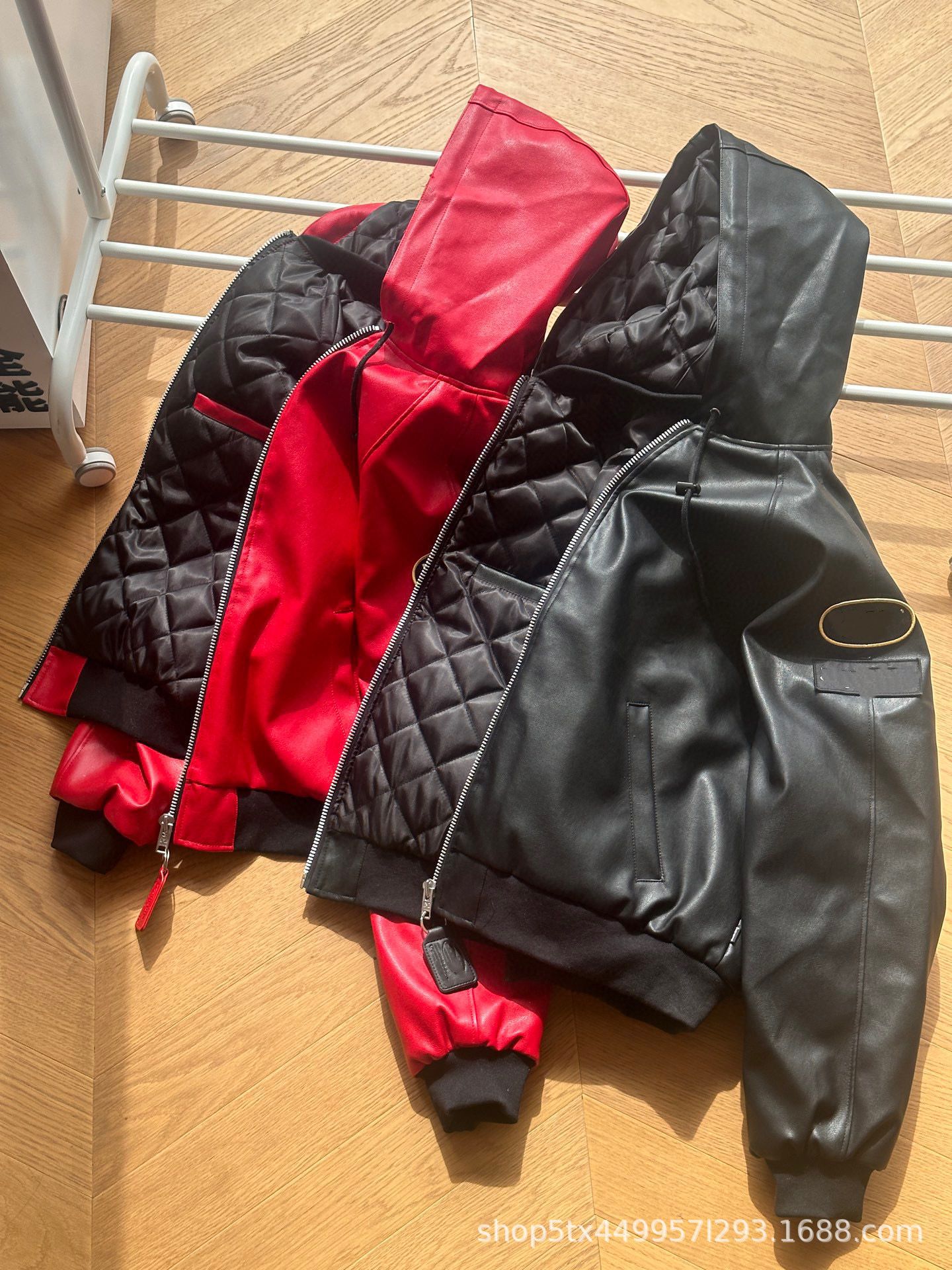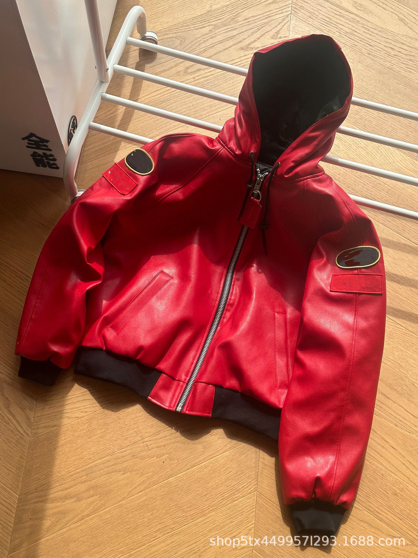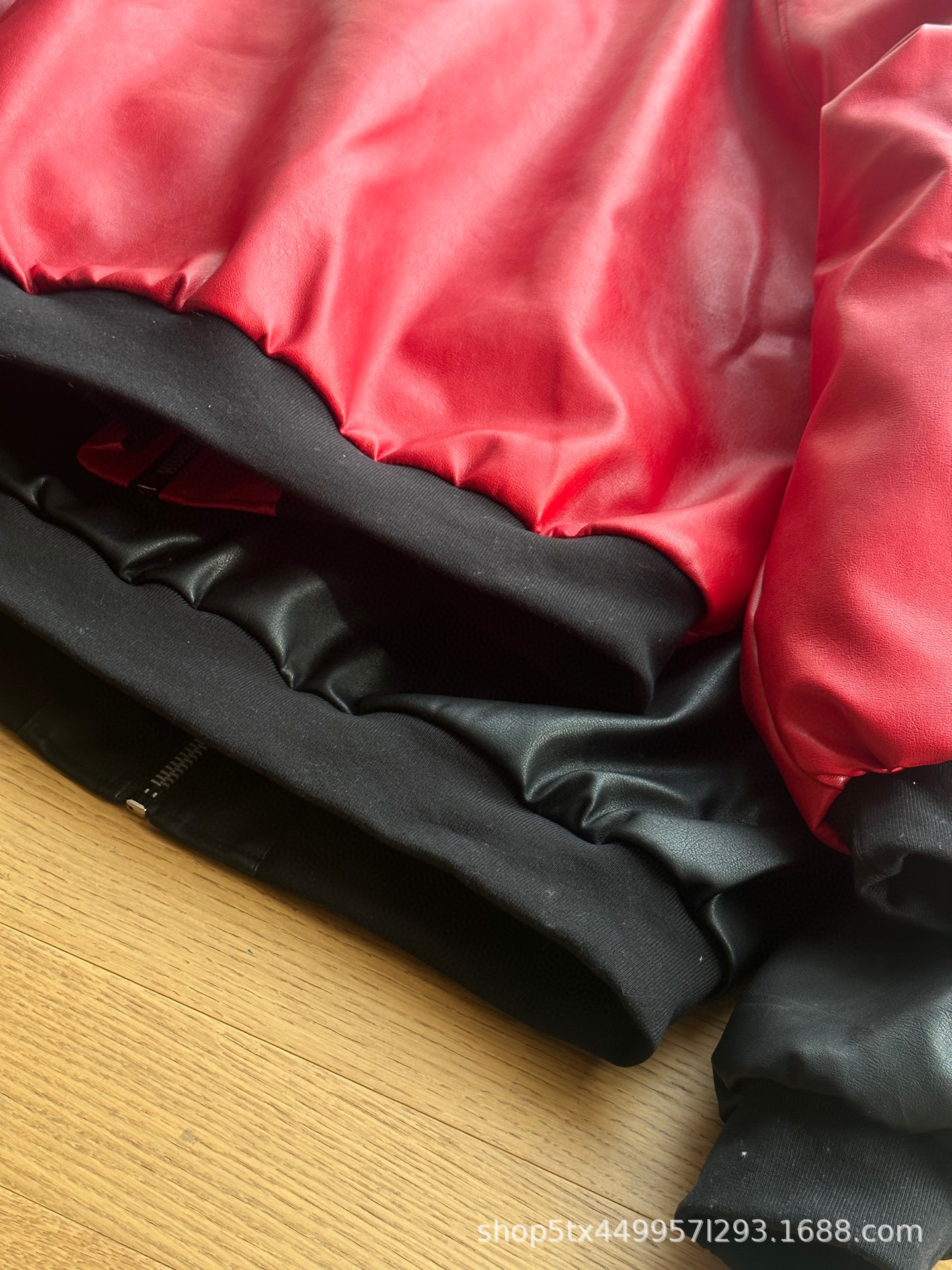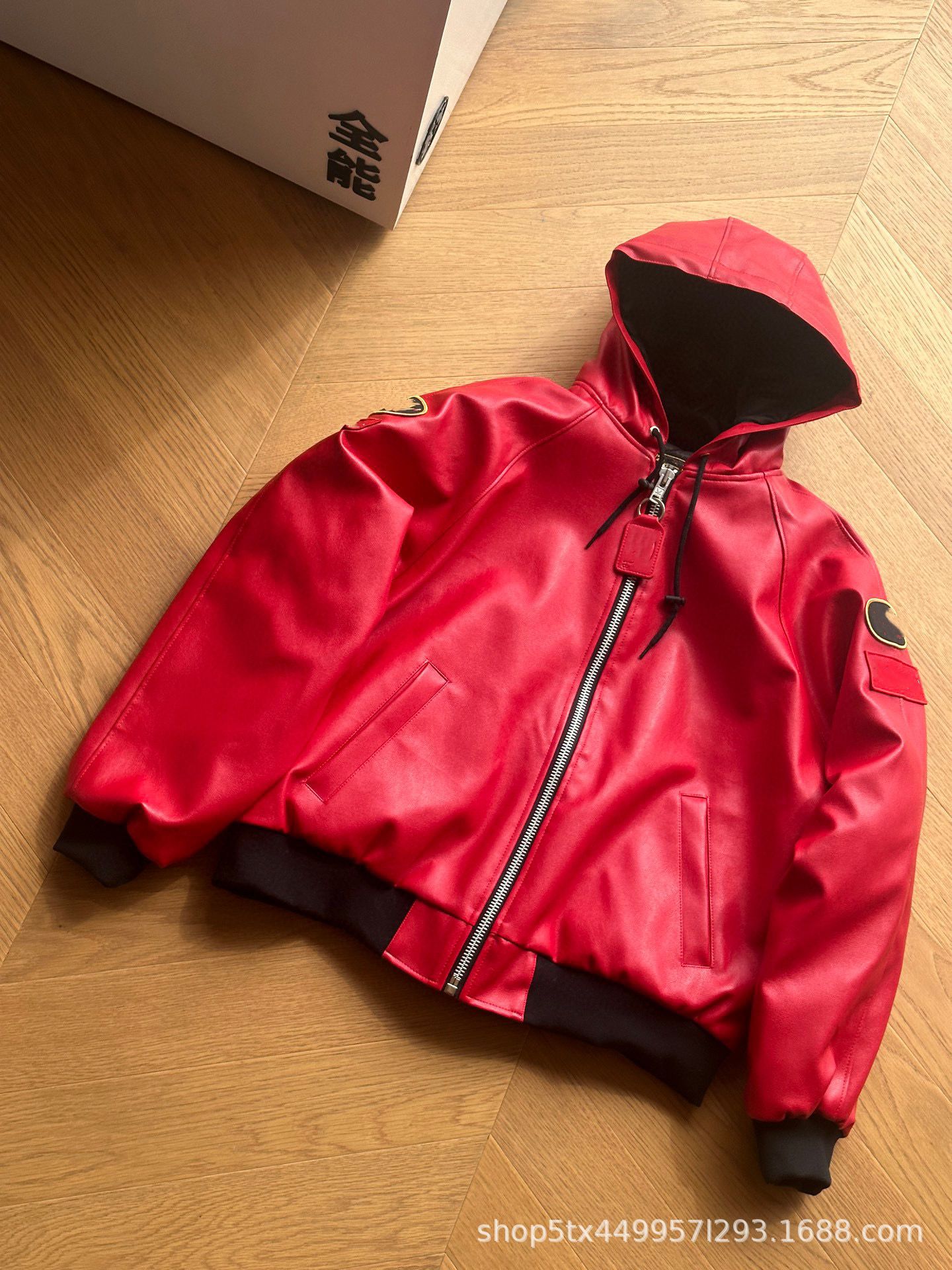 SUP 봄과 가을 새로운 후드 가죽 자켓 남성용 트렌디 한 느슨한 청소년 오토바이 재킷 한국 후드 남성용 가죽 자켓
