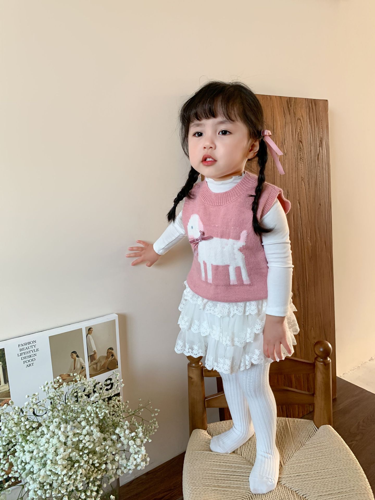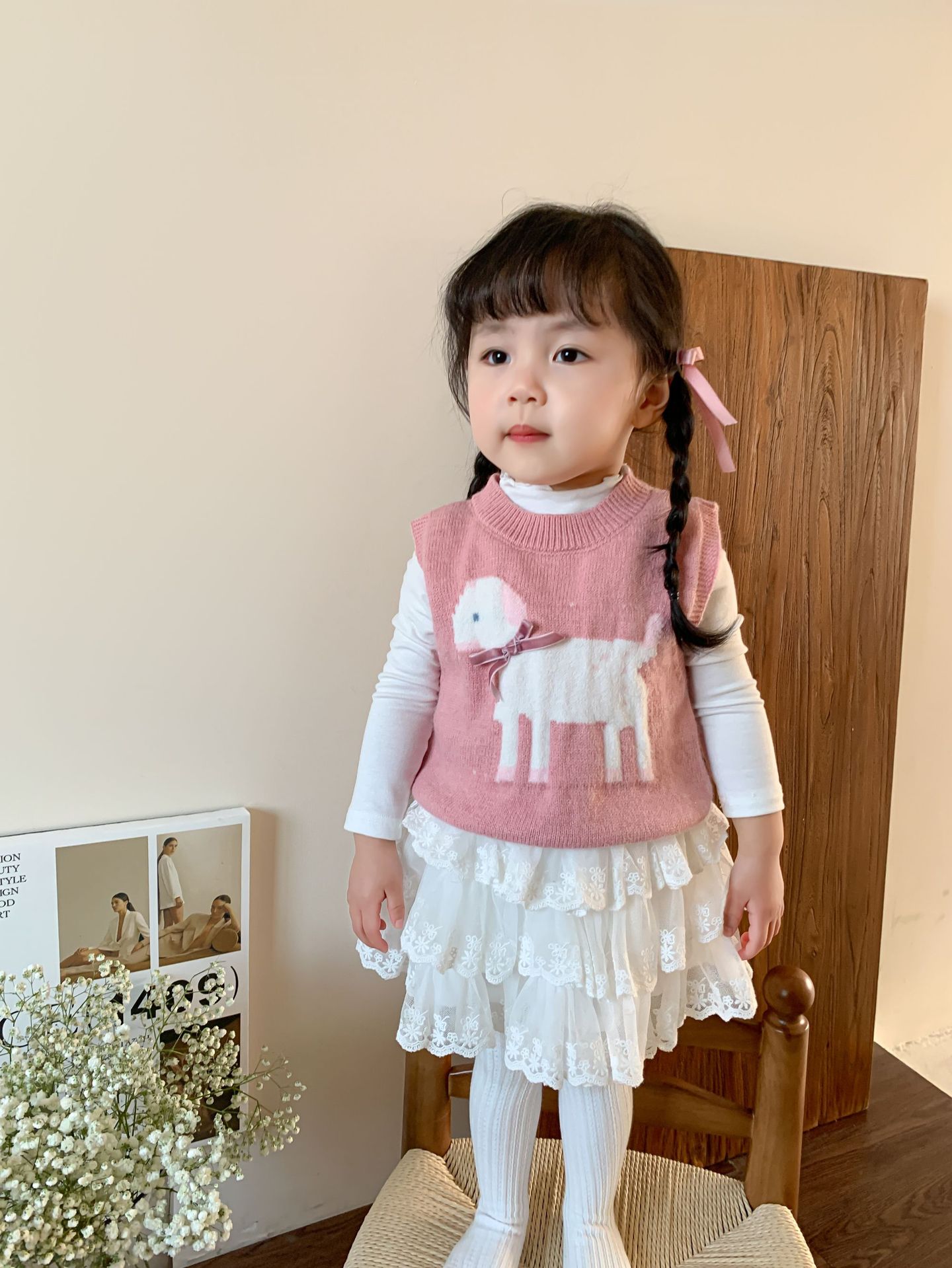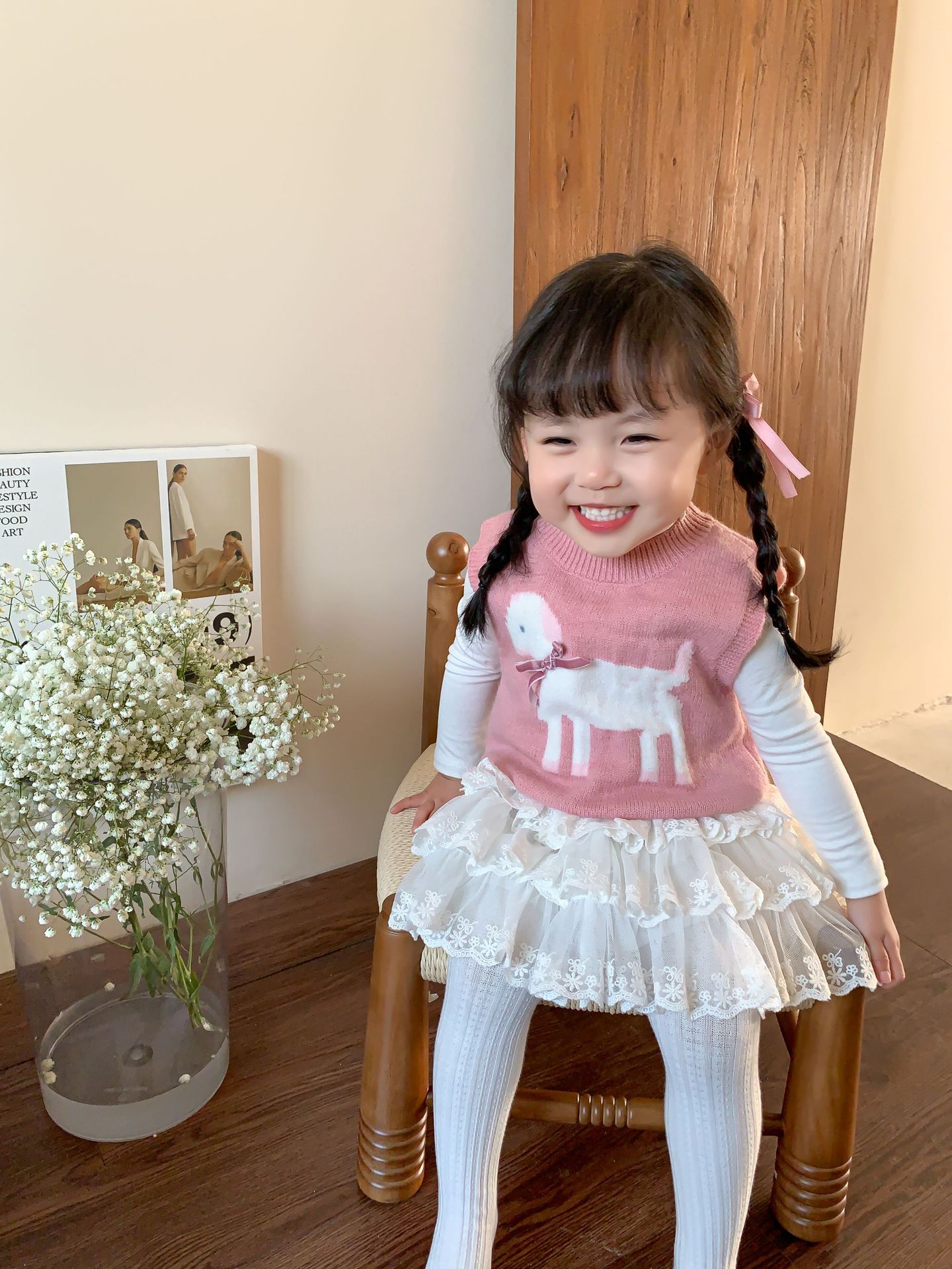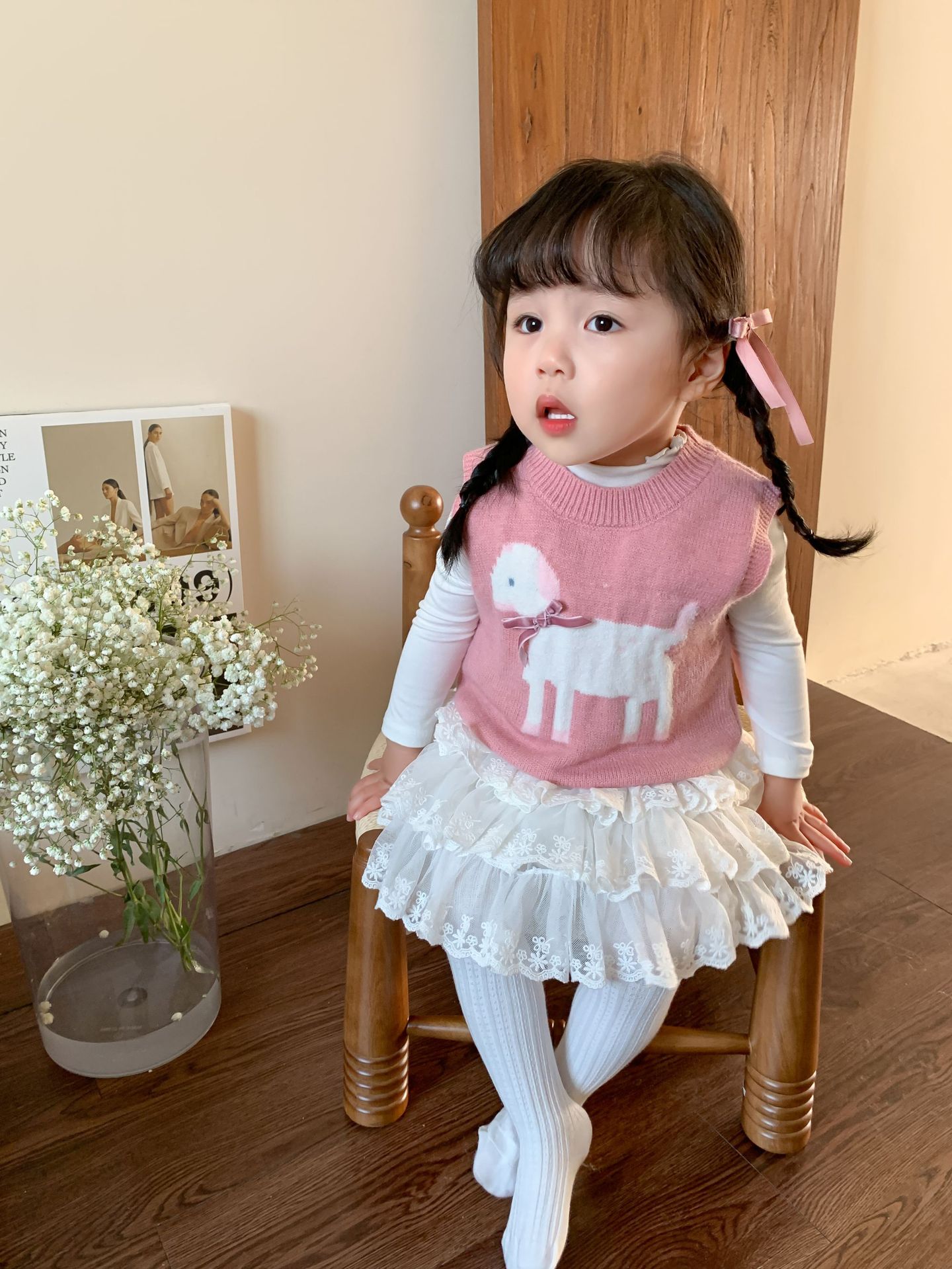 사탕수수 어린이복 여아 세트 2025 봄 신상 아동 한국 스타일 조끼 이너웨어 스커트 아기 옷스토어 가기