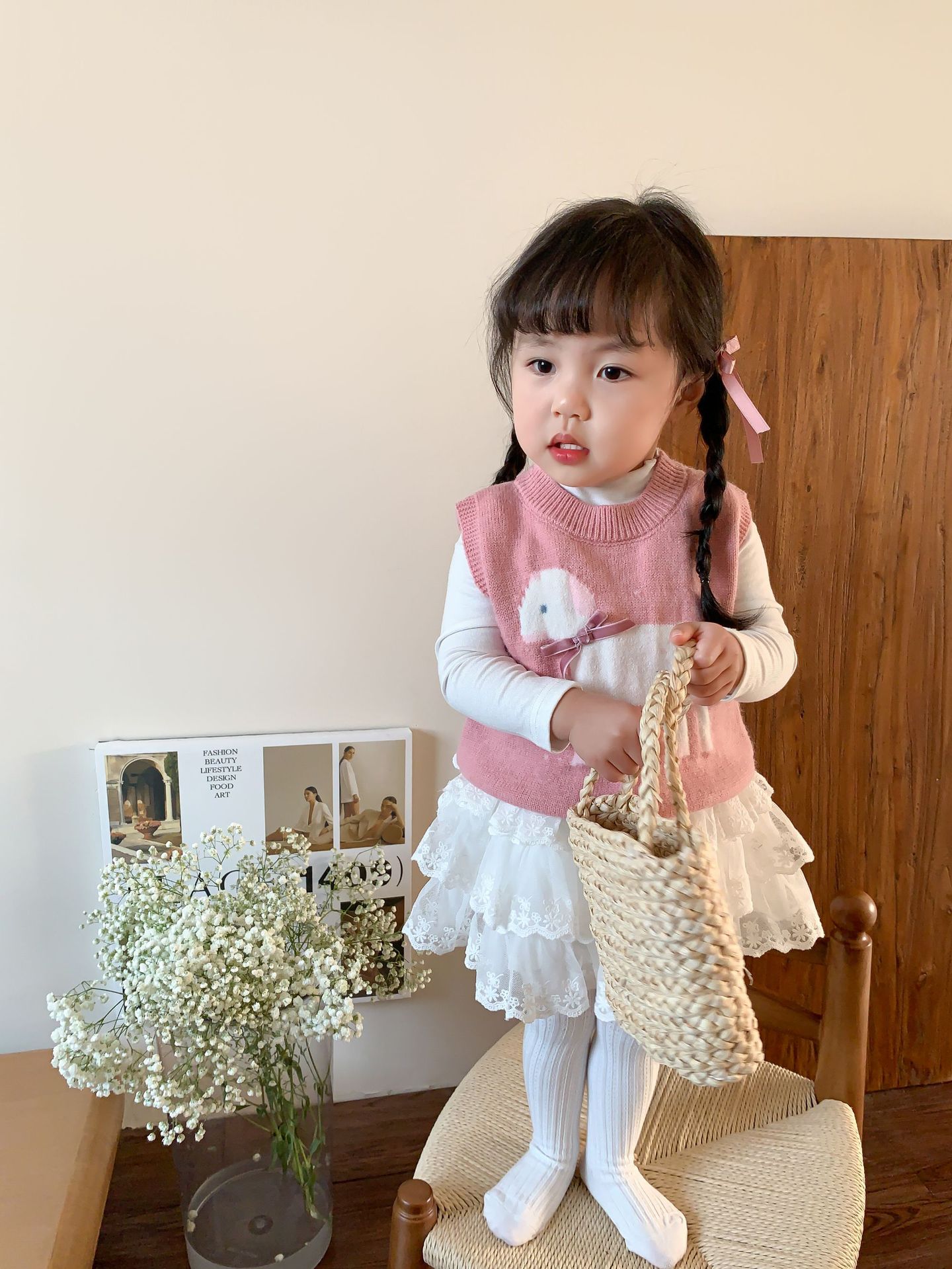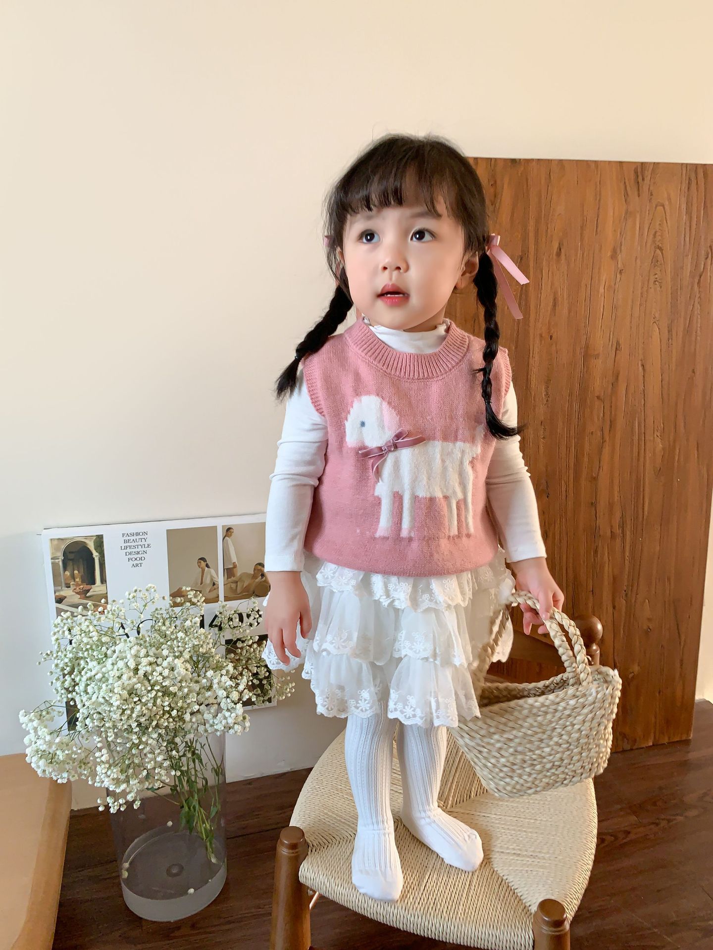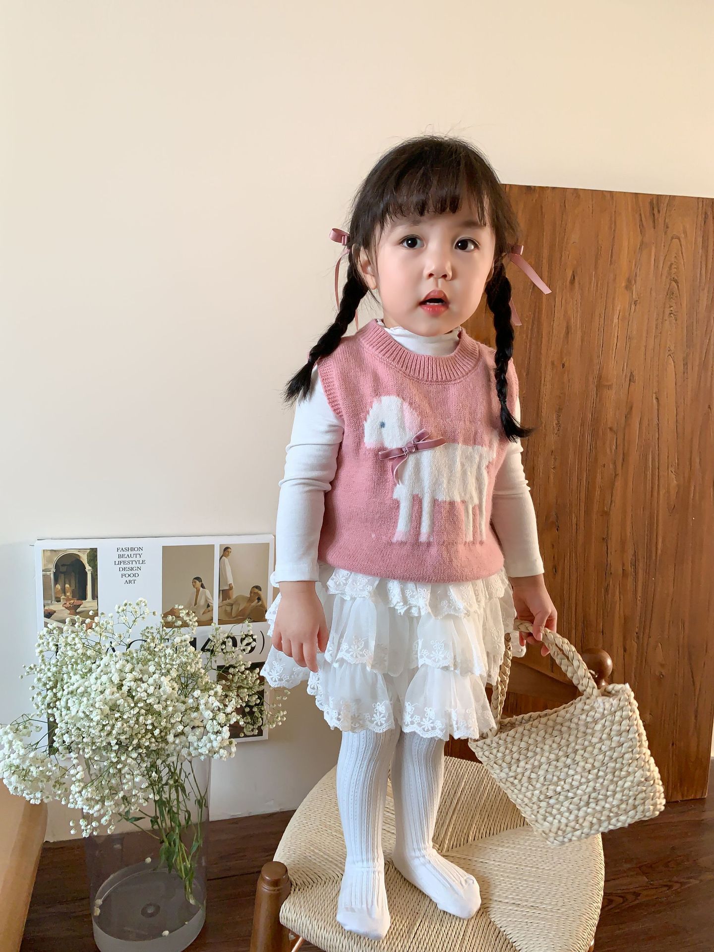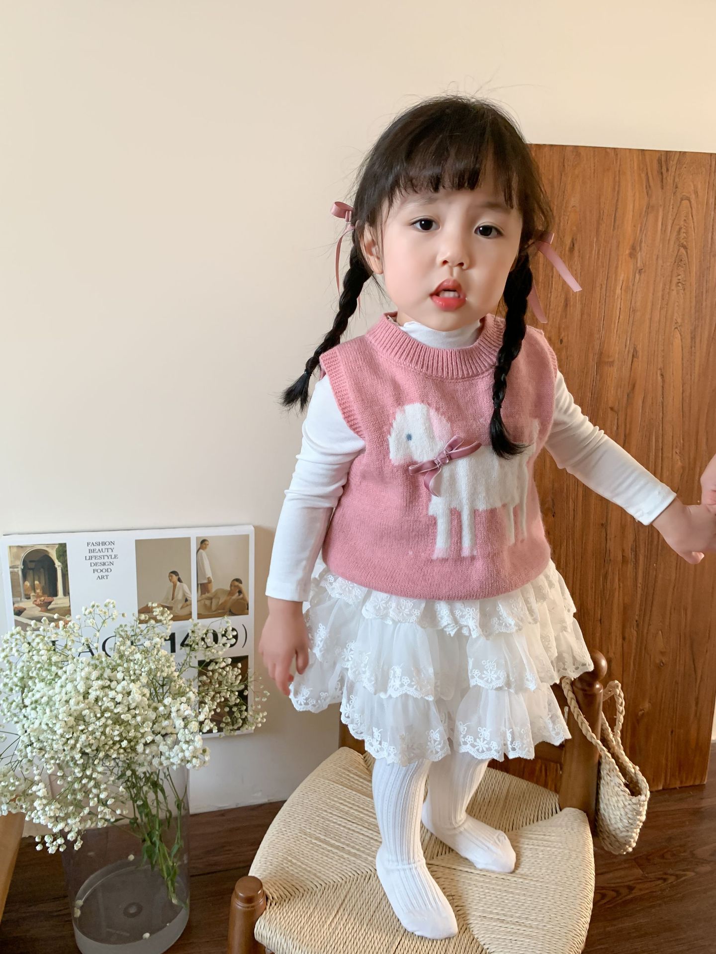 사탕수수 어린이복 여아 세트 2025 봄 신상 아동 한국 스타일 조끼 이너웨어 스커트 아기 옷스토어 가기