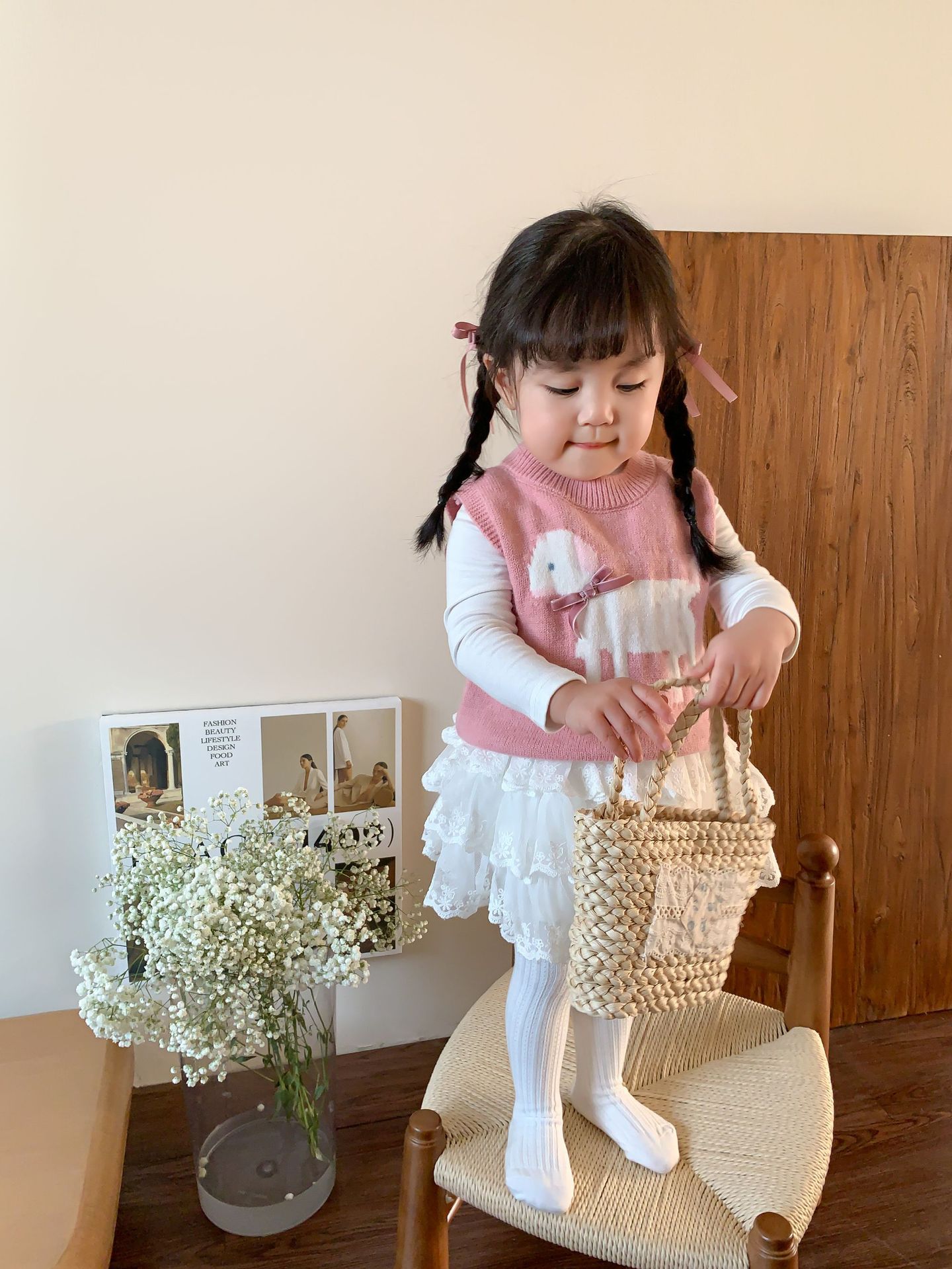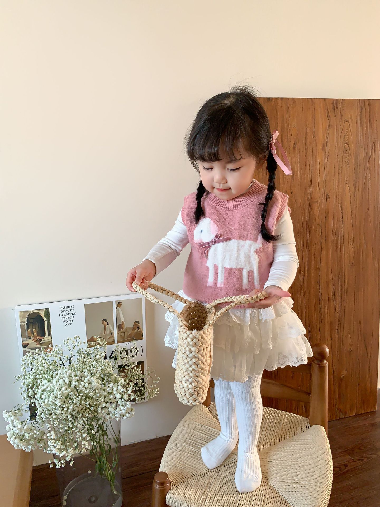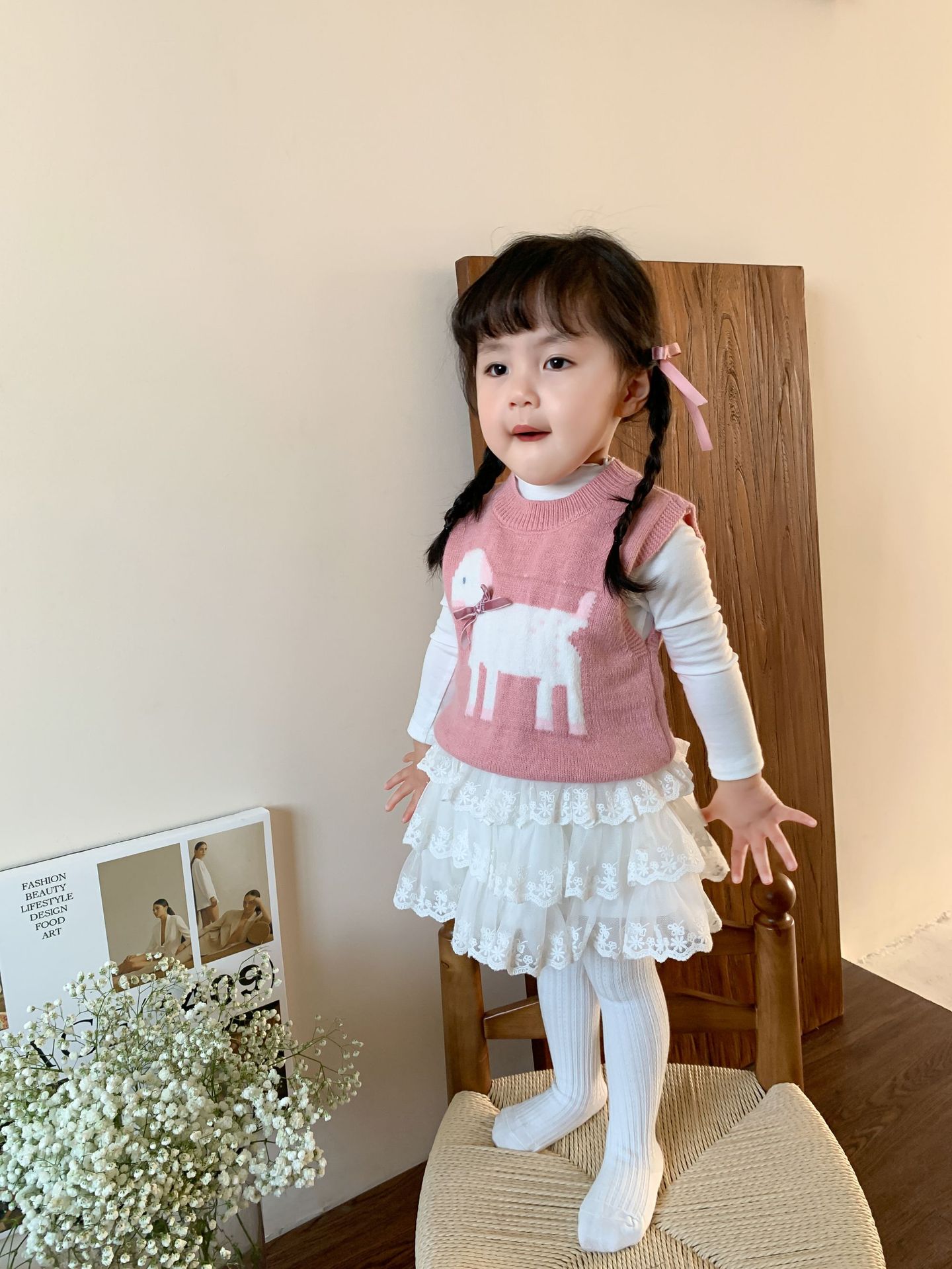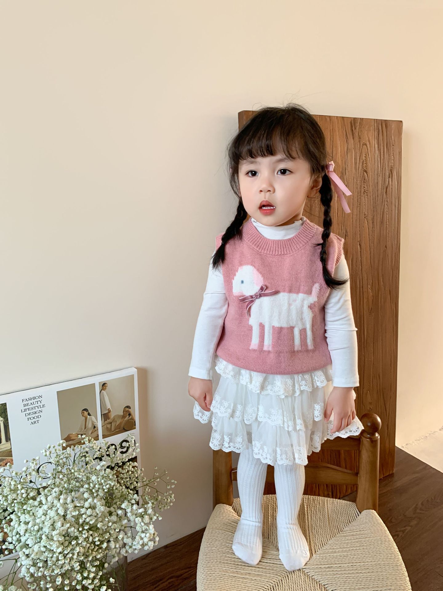 사탕수수 어린이복 여아 세트 2025 봄 신상 아동 한국 스타일 조끼 이너웨어 스커트 아기 옷스토어 가기