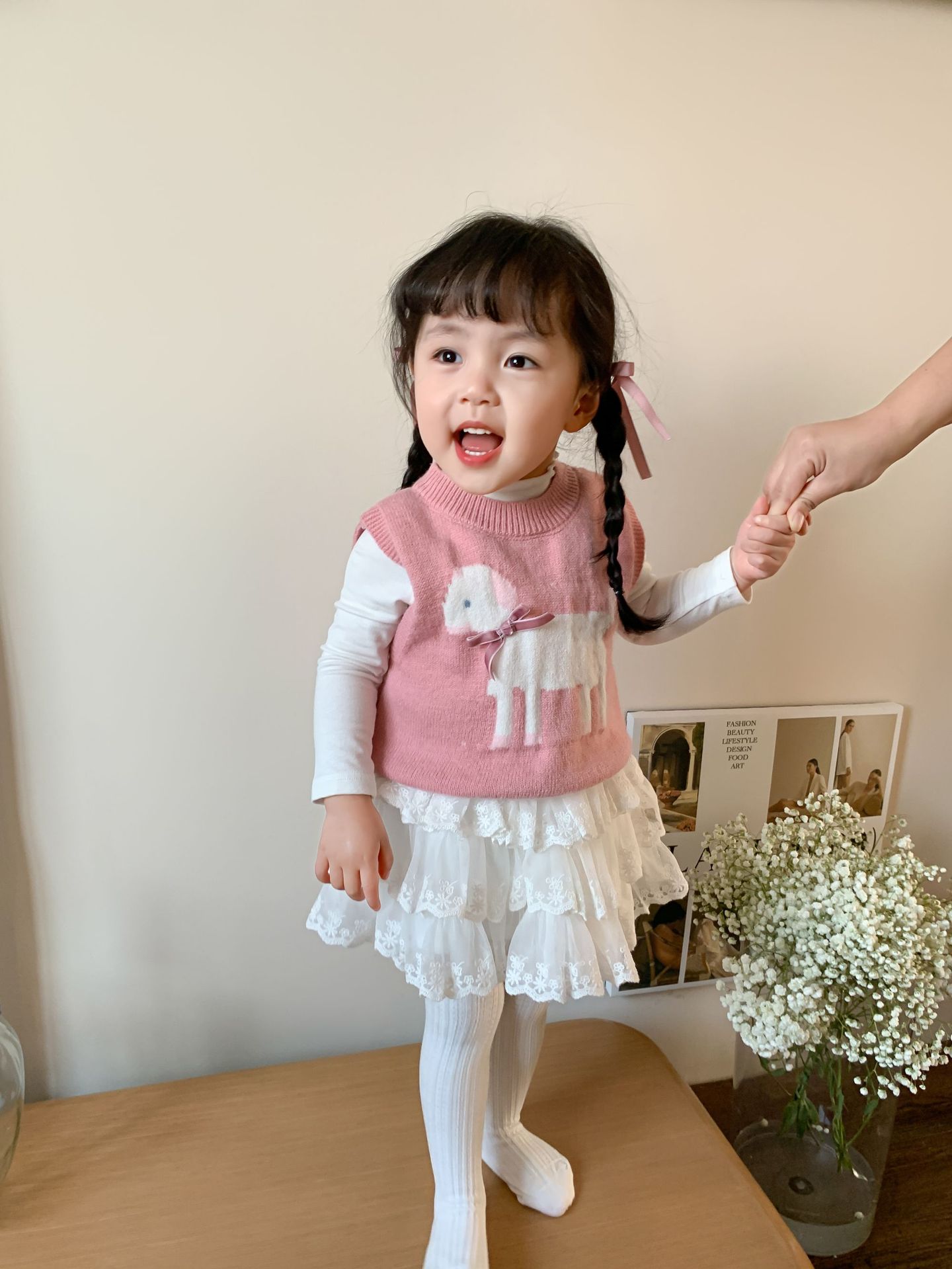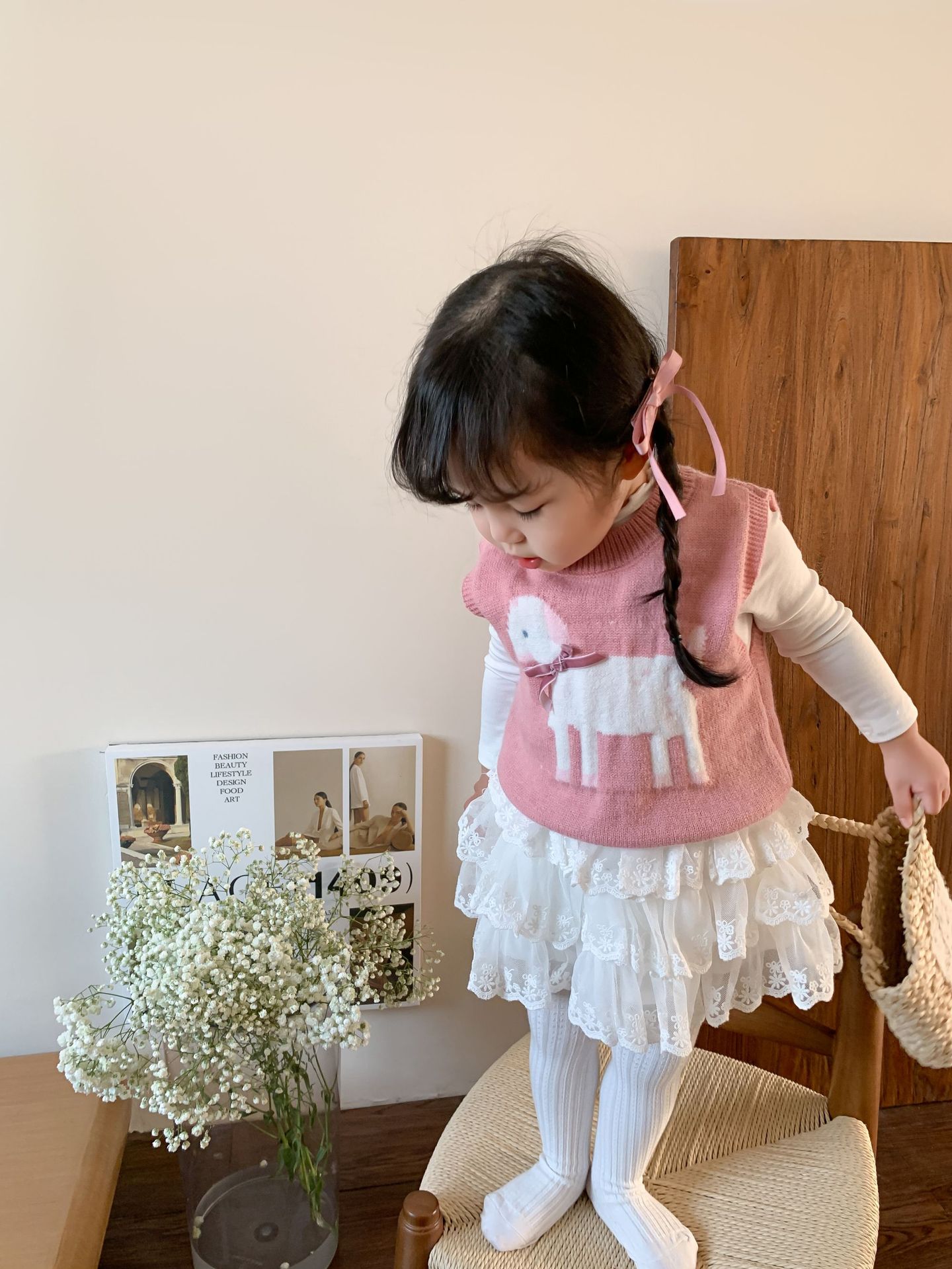 • 핑크 양고기 니트 조끼