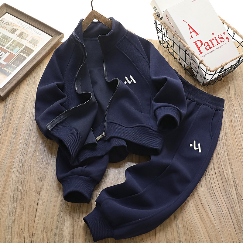 어린이 세트 2025 봄 새 소년 소녀 땀 바지 두 조각 한국 패션 중 큰 어린이를위한 유행 옷스토어 가기