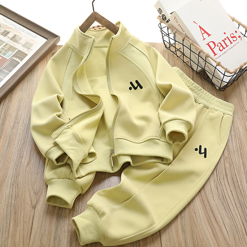 어린이 세트 2025 봄 새 소년 소녀 땀 바지 두 조각 한국 패션 중 큰 어린이를위한 유행 옷