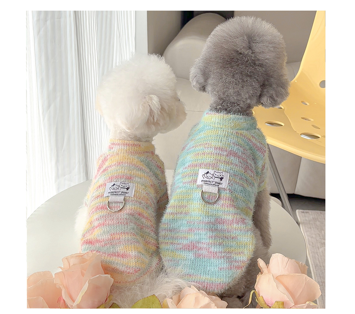 강아지 가을 겨울 니트 애완동물 스웨터 비숑 테디 포메라니안 소형견 고양이 옷 심플 플러스 벨벳 신축성