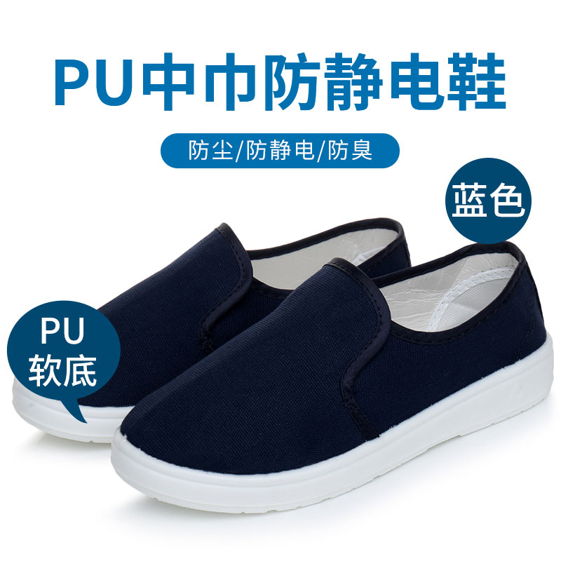 PU 소프트 솔리드 정전기 신발 전자 식품 깨끗한 먼지없는 작업장 남성 통기성 캔버스 보호 신발 정전기 방지 보호 신발스토어 가기