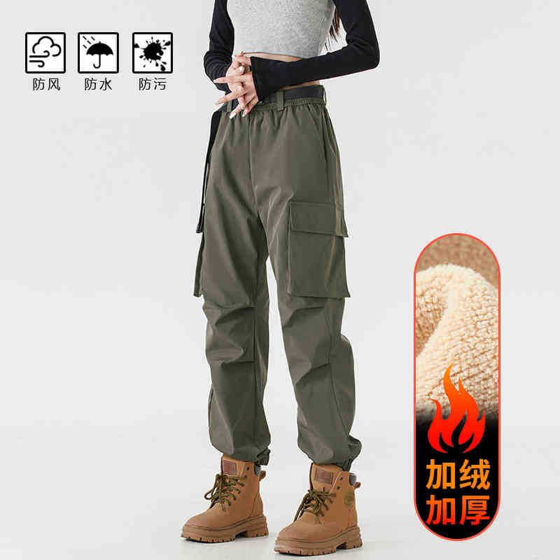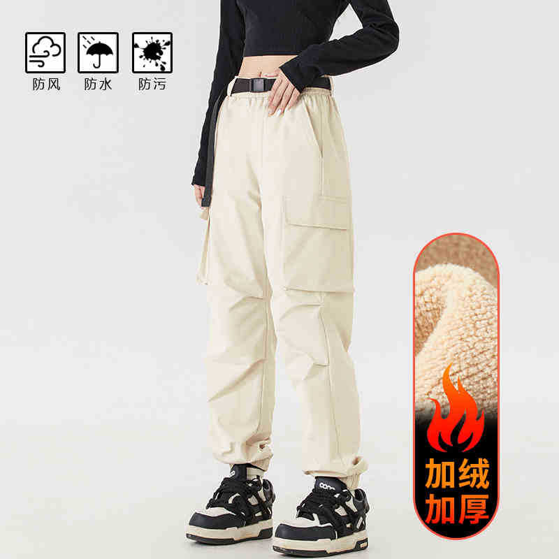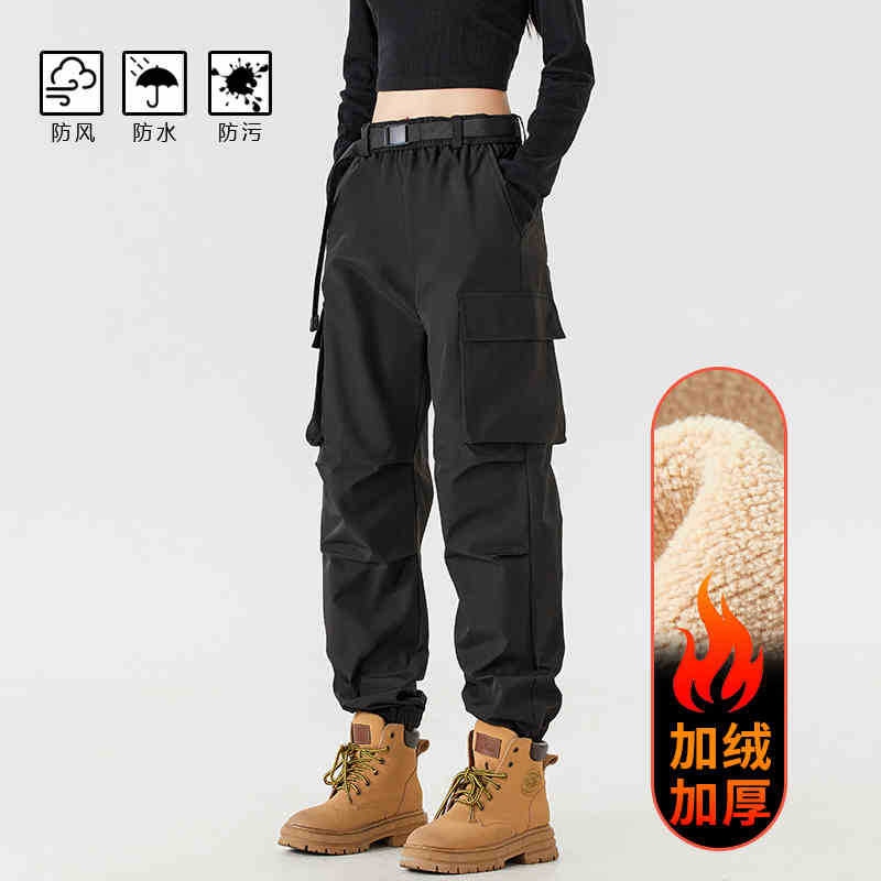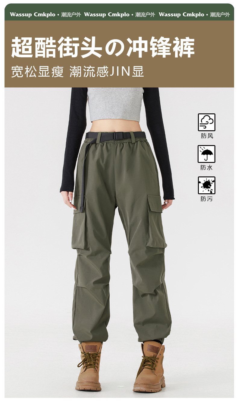 WASSUP 공동 브랜드 아웃도어 재킷 및 바지 여성용 가을 겨울 등산 아웃도어 작업복 남성용 플리스 안감