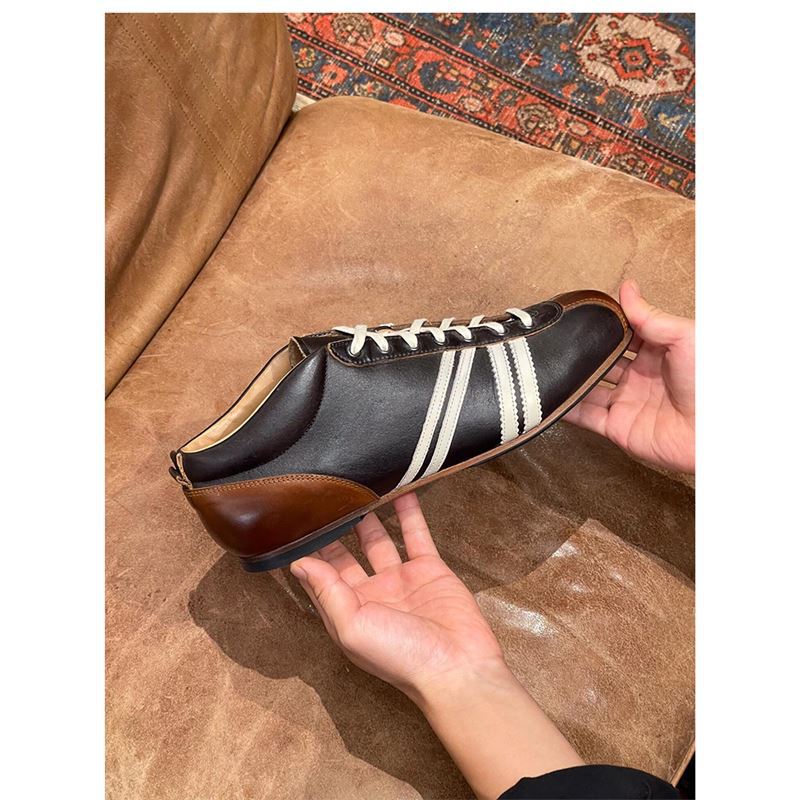 정품 가죽 ~ 2024 메일라드 니치 컬러 블록 레트로 트레이닝 슈즈 레이스업 플랫 스니커즈 다용도 라운드 투 캐주얼