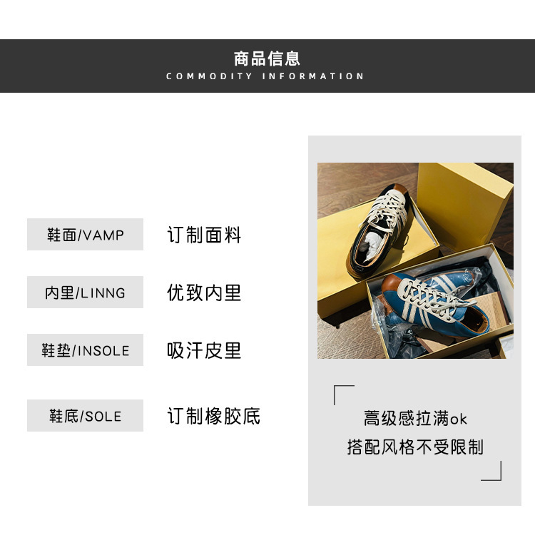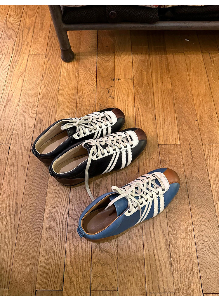 정품 가죽 ~ 2024 메일라드 니치 컬러 블록 레트로 트레이닝 슈즈 레이스업 플랫 스니커즈 다용도 라운드 투 캐주얼스토어 가기