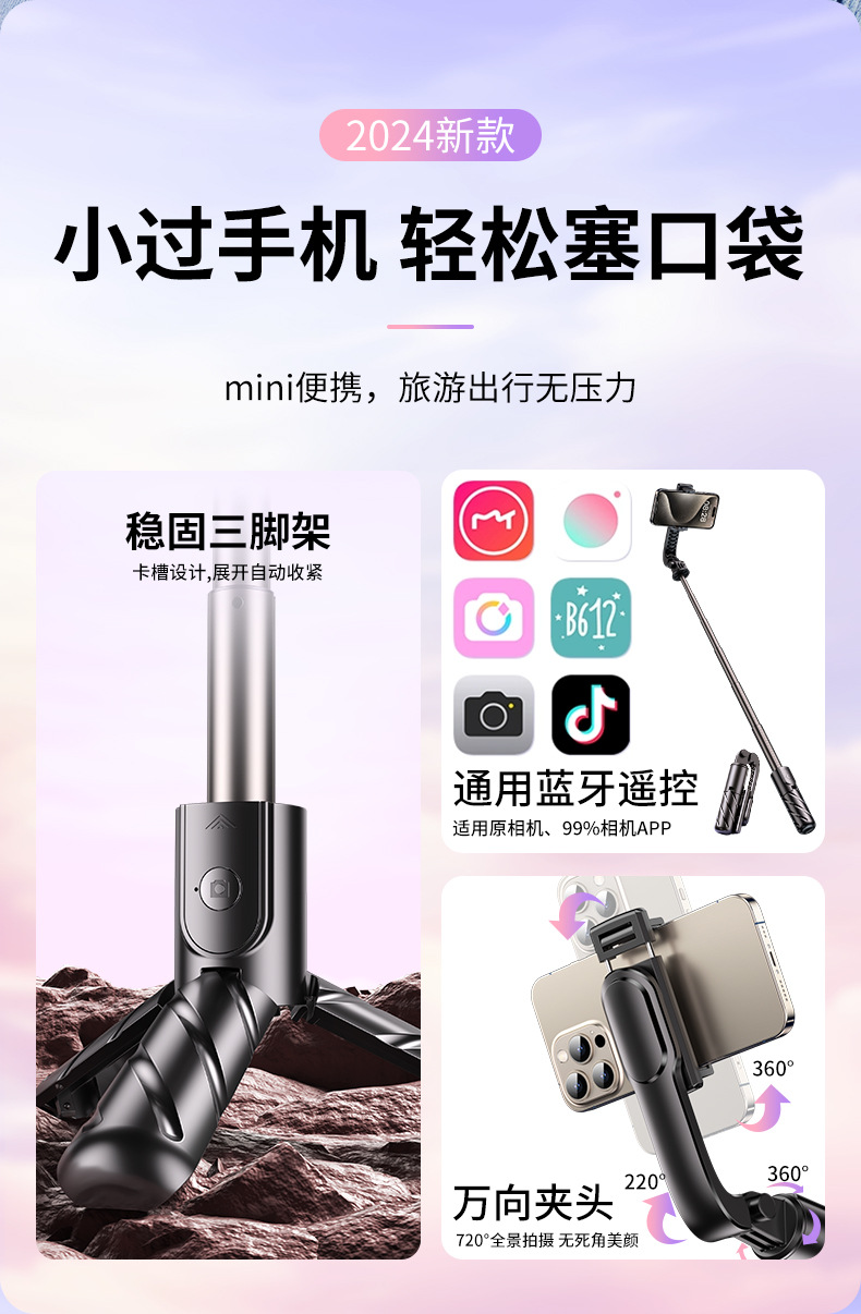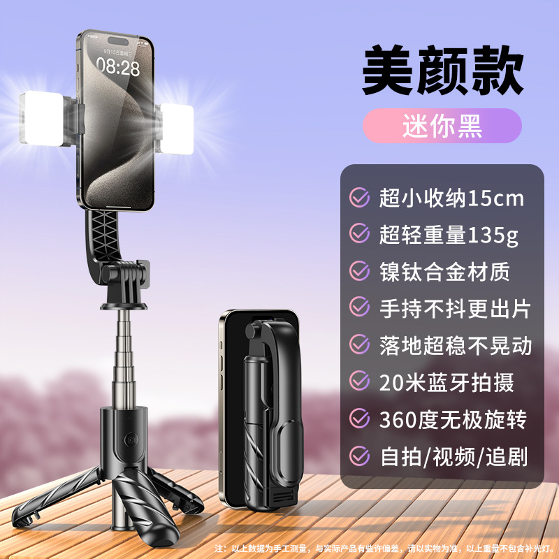휴대용 미니 셀카 스틱 휴대용 텔레스코픽 통합 비디오 라이브 라이트 채우기 삼각대 휴대 전화 카메라 스탠드