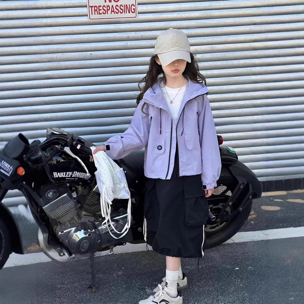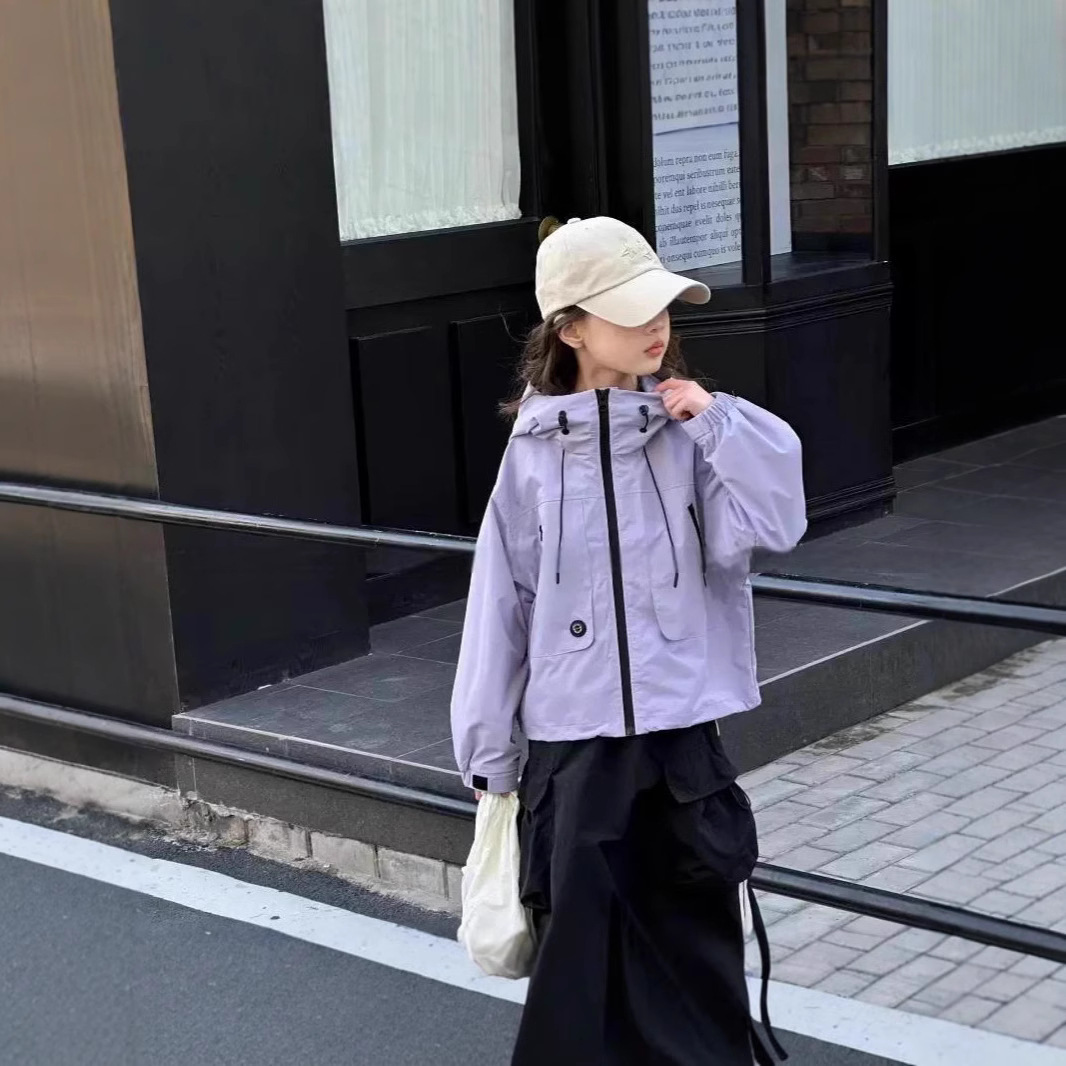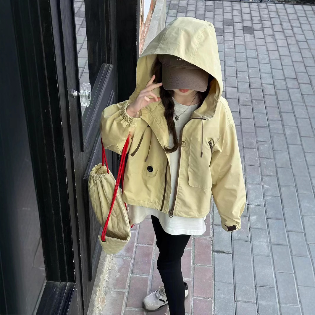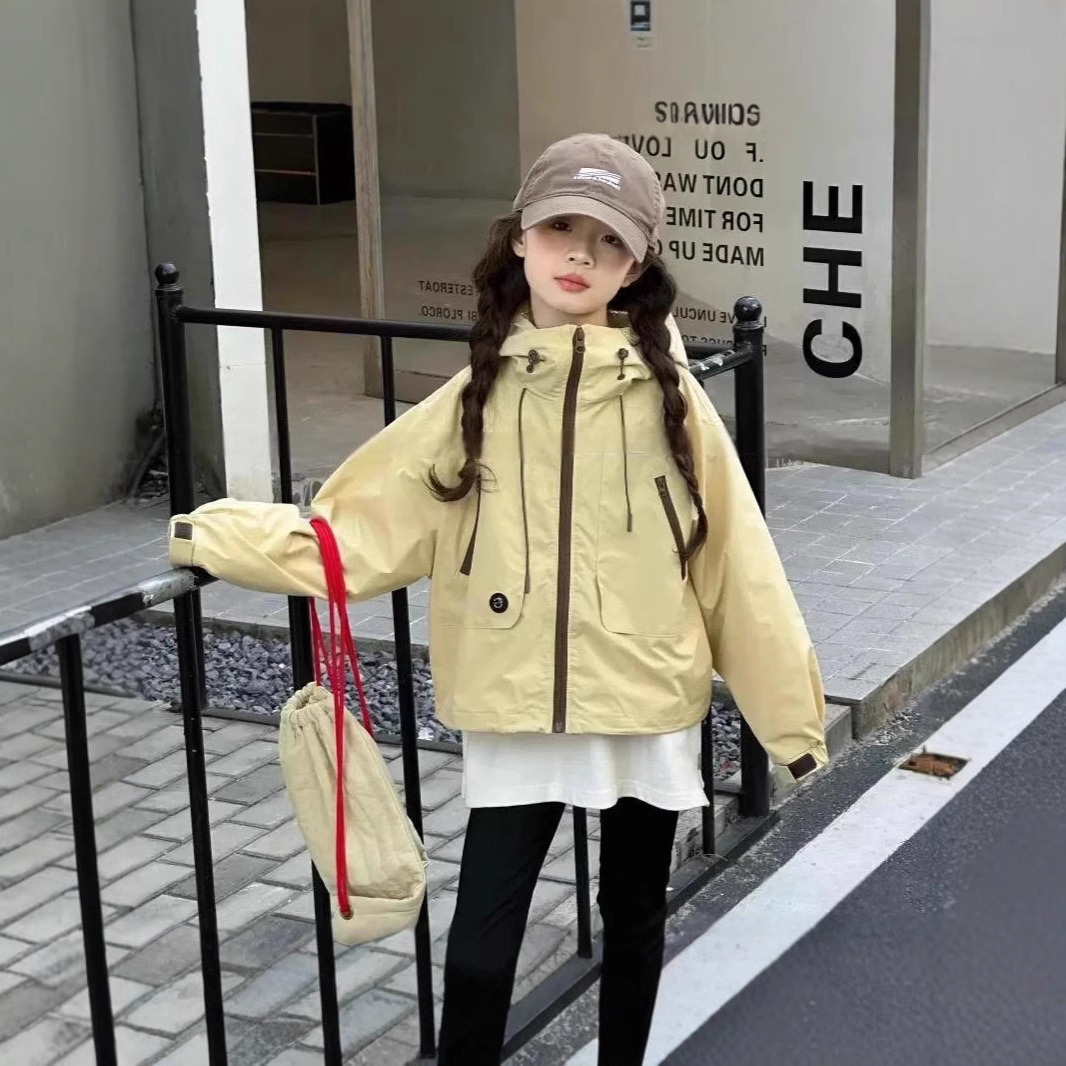 소녀 충전 옷 2025 봄 새로운 도착 한국 스타일 트렌디 코트 중 및 빅 키즈 소녀 쇼트 탑 후드 코트스토어 가기