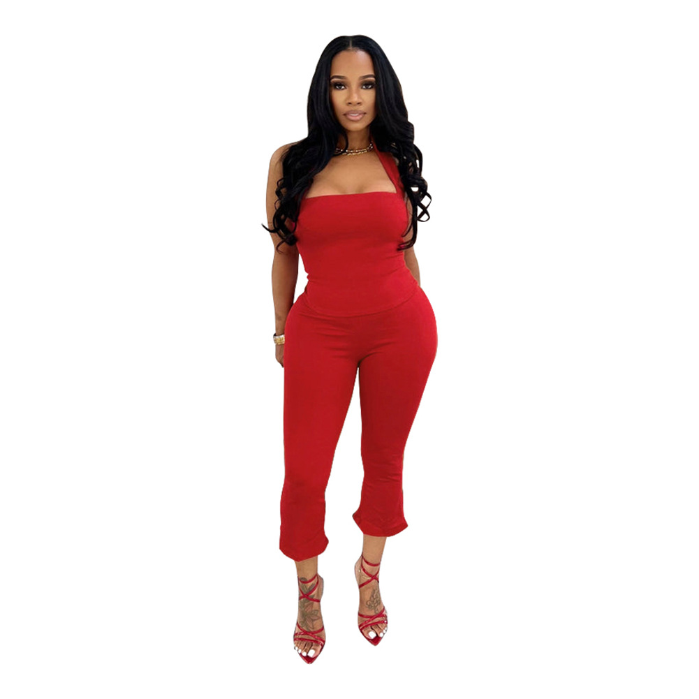 D88237 국경을 넘는 유럽과 미국 스타일 2025 봄 새로운 패션 여성의 등이없는 레이스 업 넥 캐미솔 세트