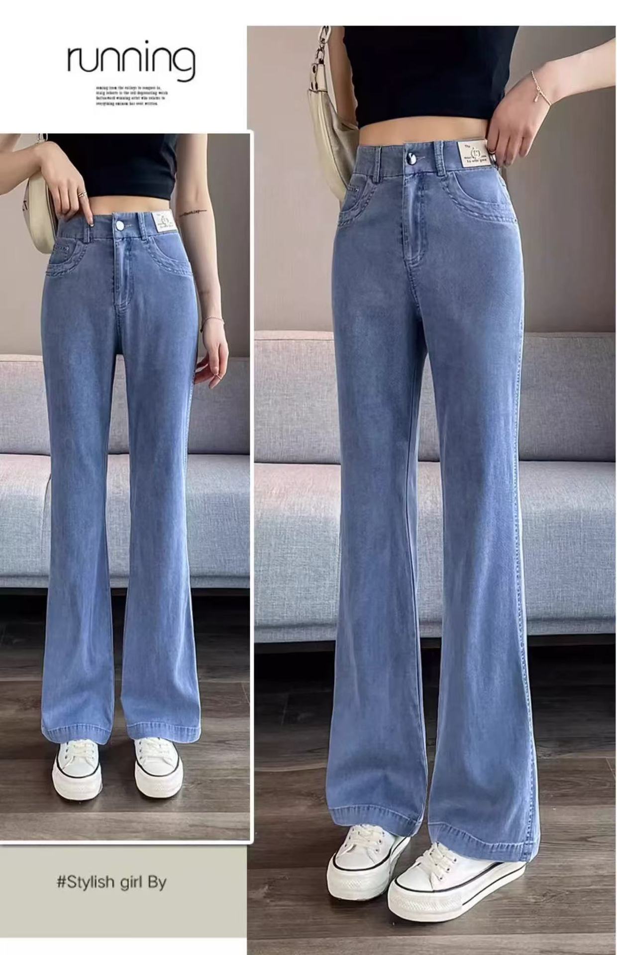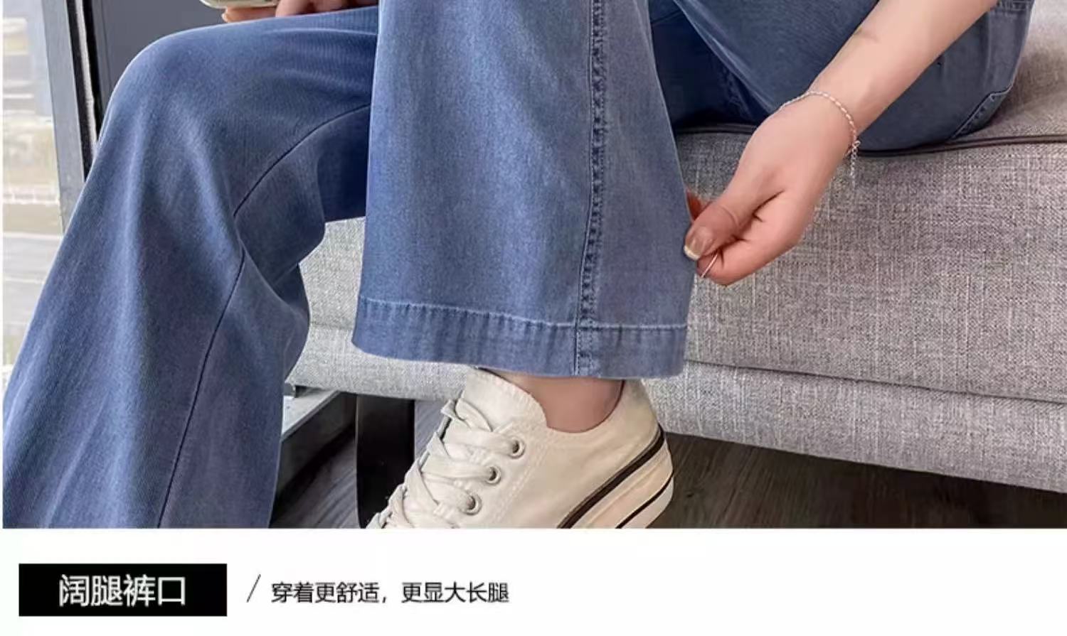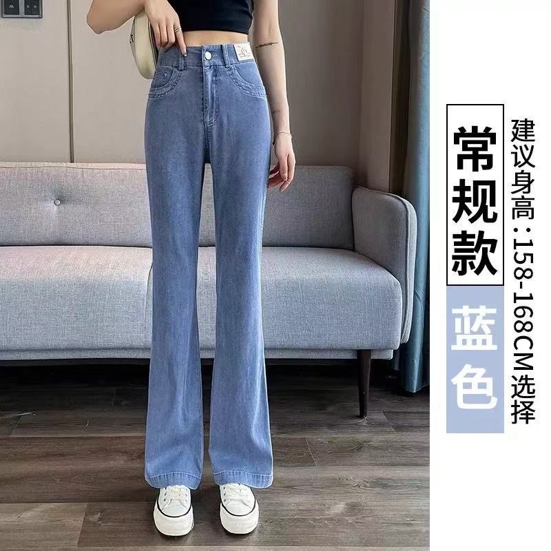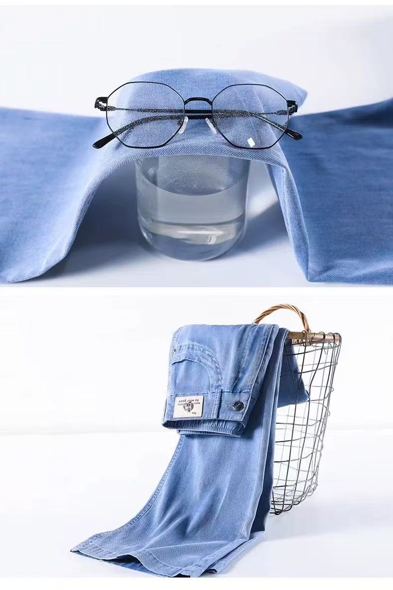 얇은 마이크로 혼 텐셀 청바지 여성의 2025 년 여름 새로운 허리 느슨한 느슨한 좁은 넓은 다리 바지스토어 가기