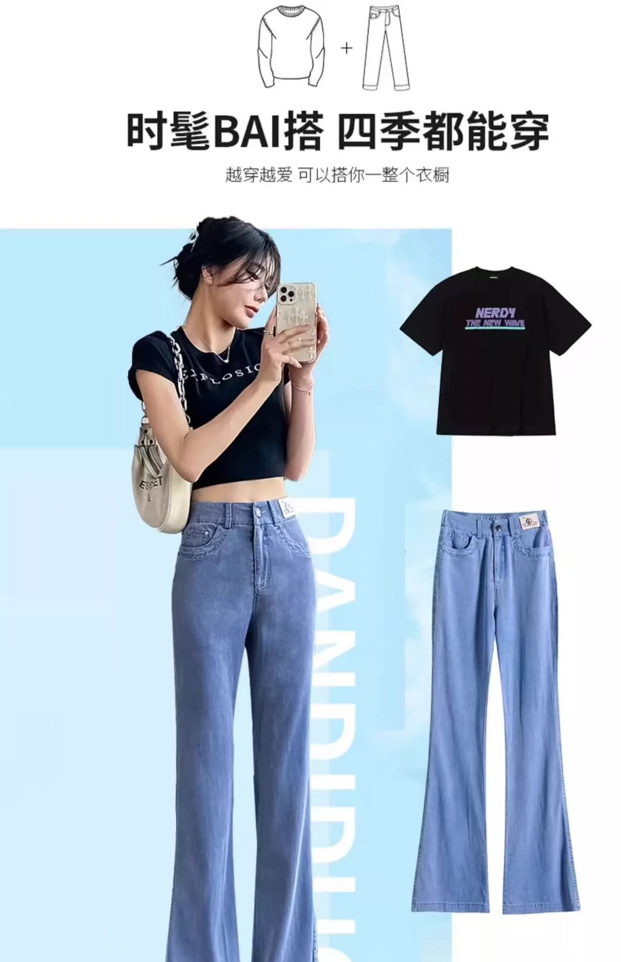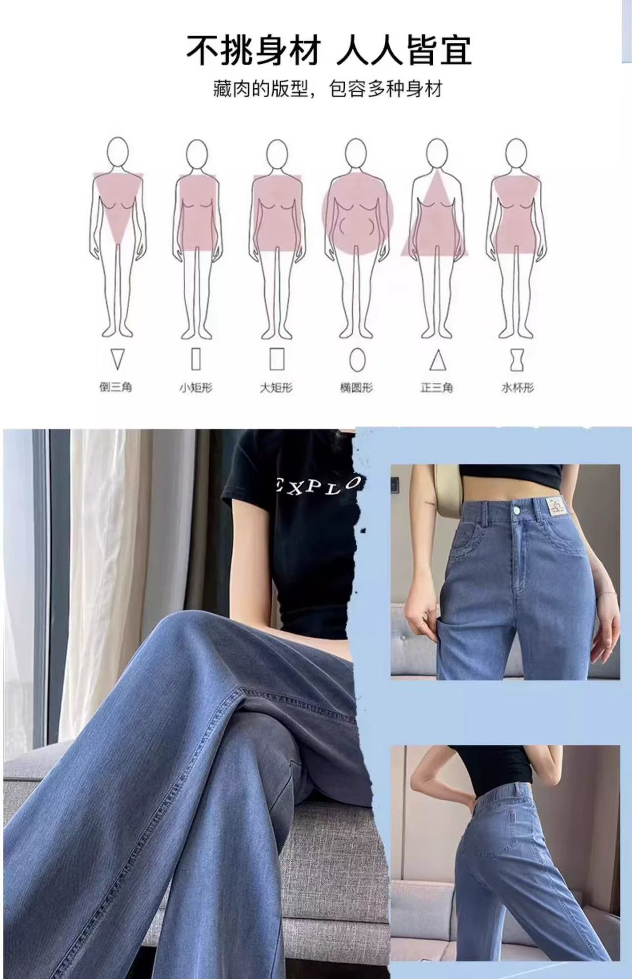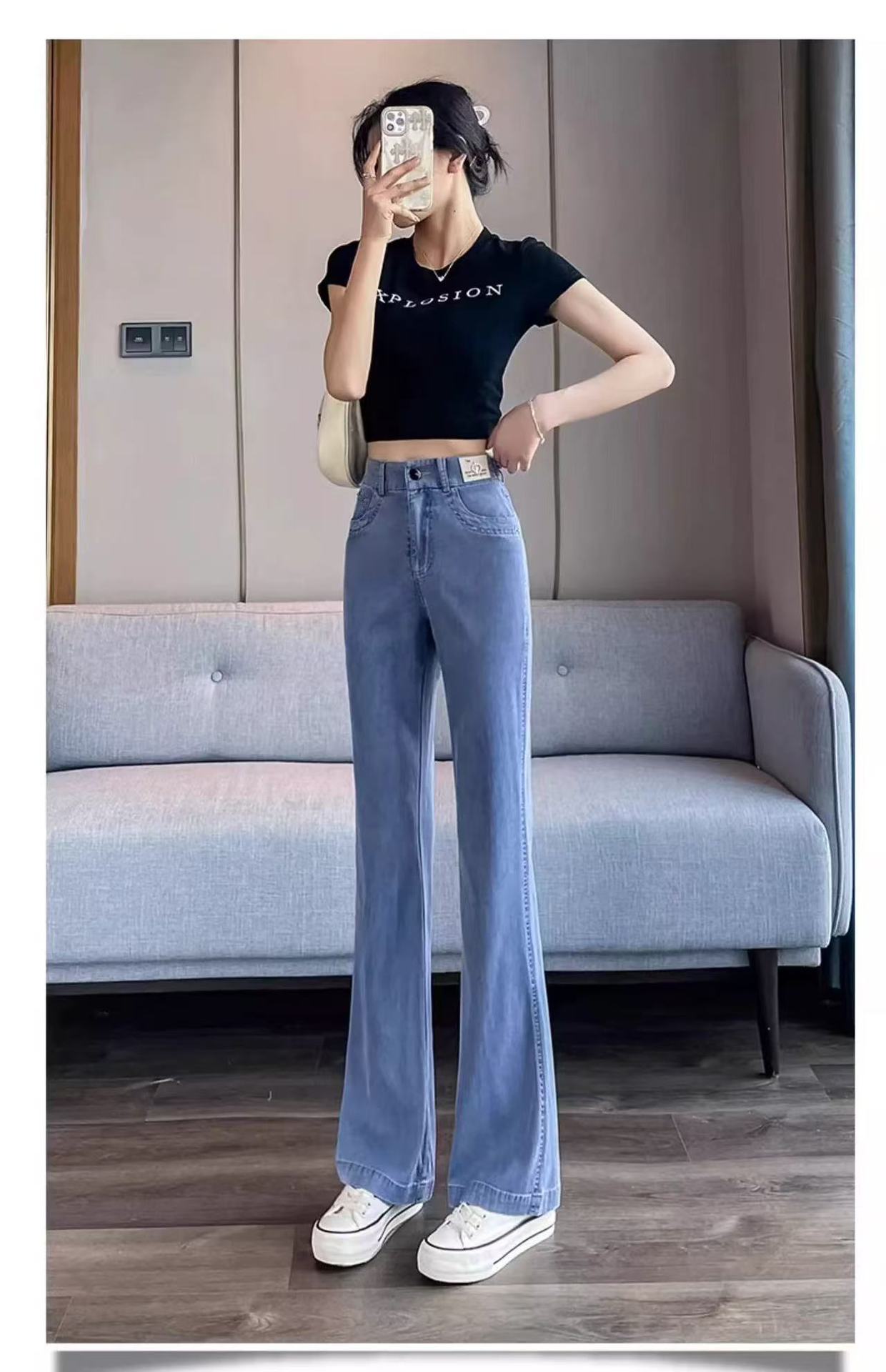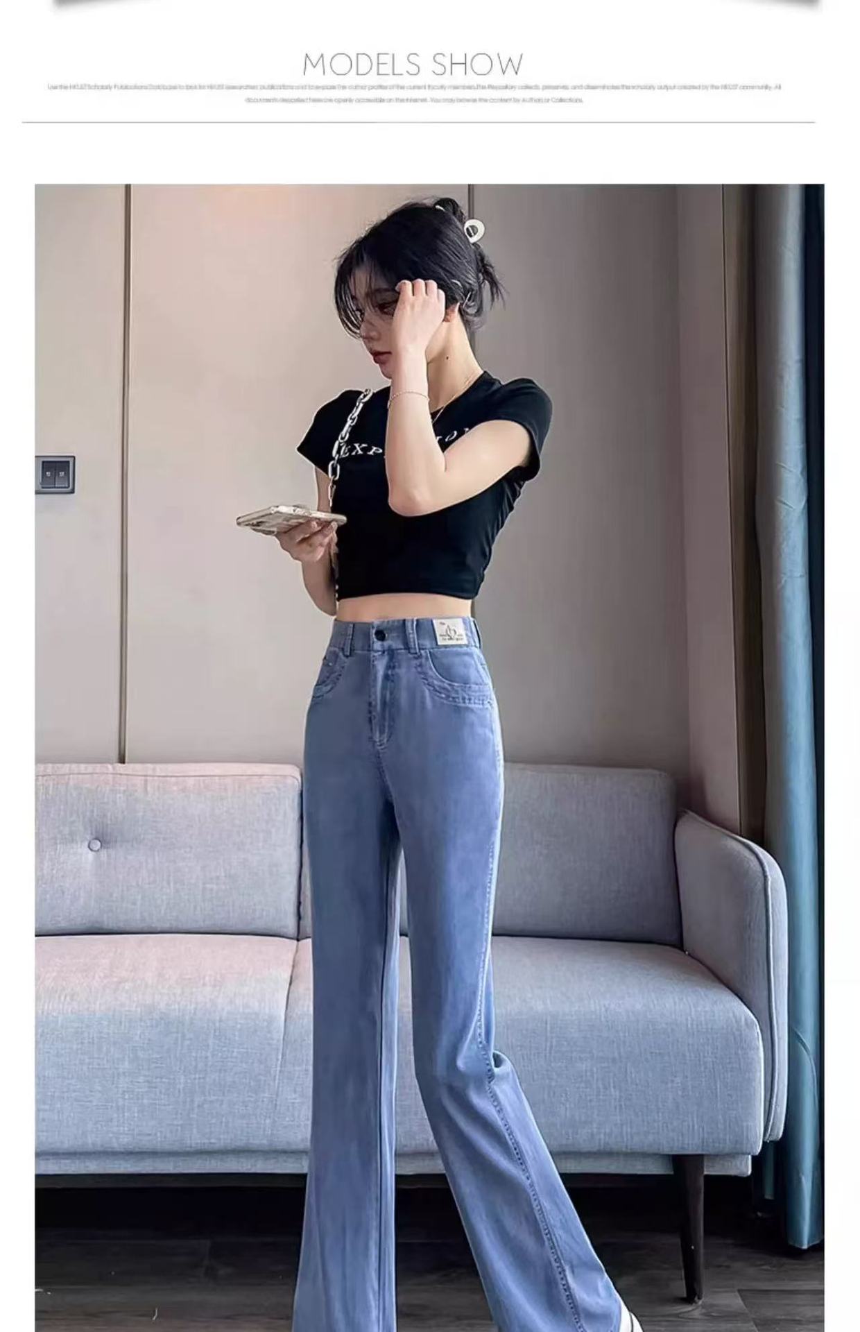 얇은 마이크로 혼 텐셀 청바지 여성의 2025 년 여름 새로운 허리 느슨한 느슨한 좁은 넓은 다리 바지스토어 가기