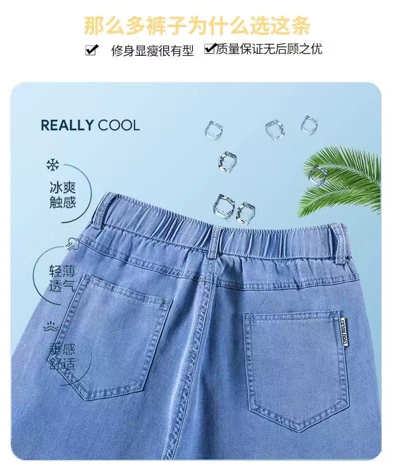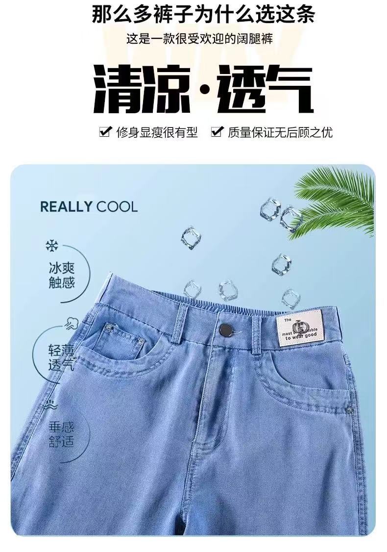 얇은 마이크로 혼 텐셀 청바지 여성의 2025 년 여름 새로운 허리 느슨한 느슨한 좁은 넓은 다리 바지