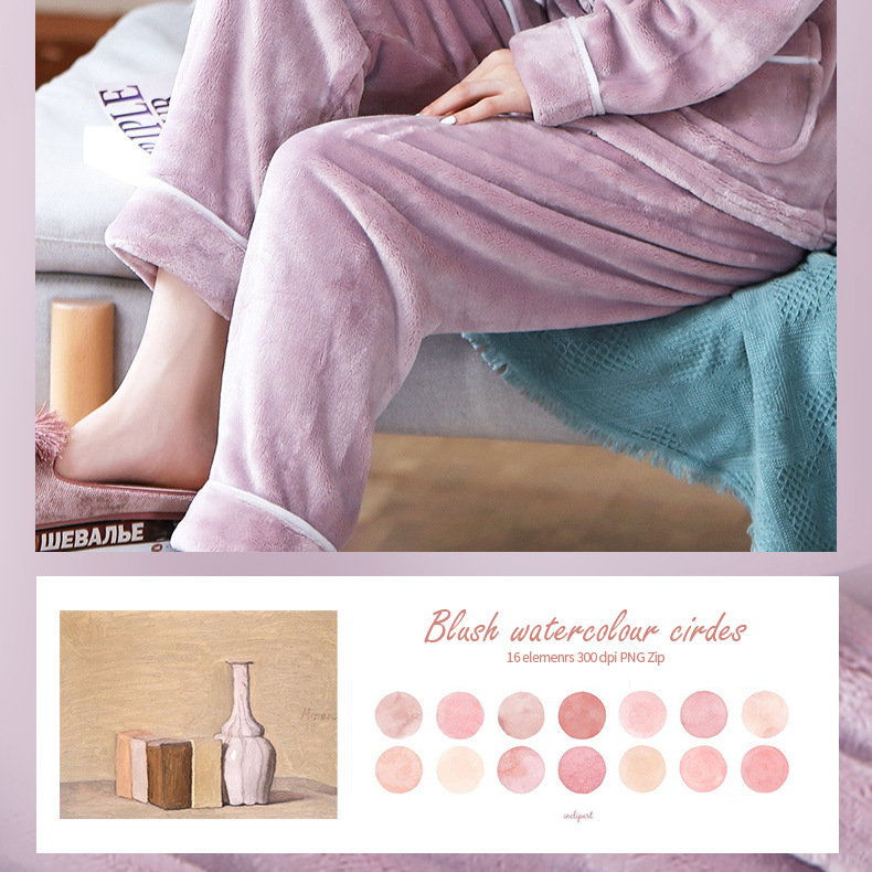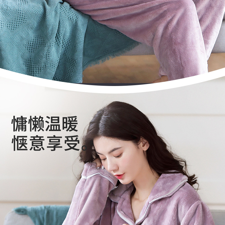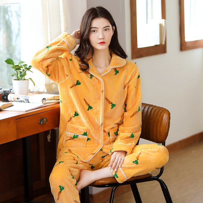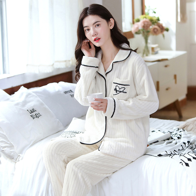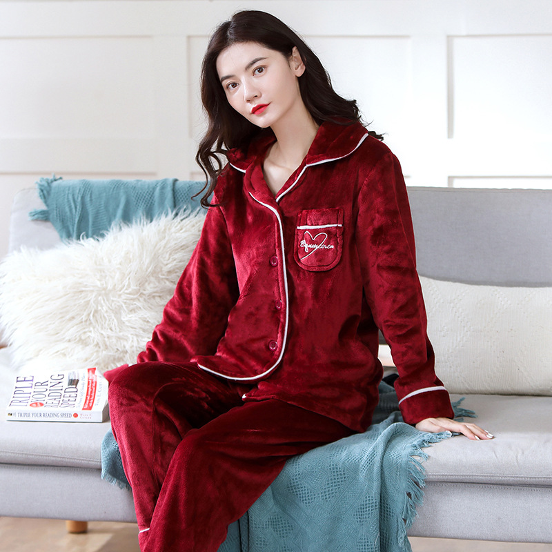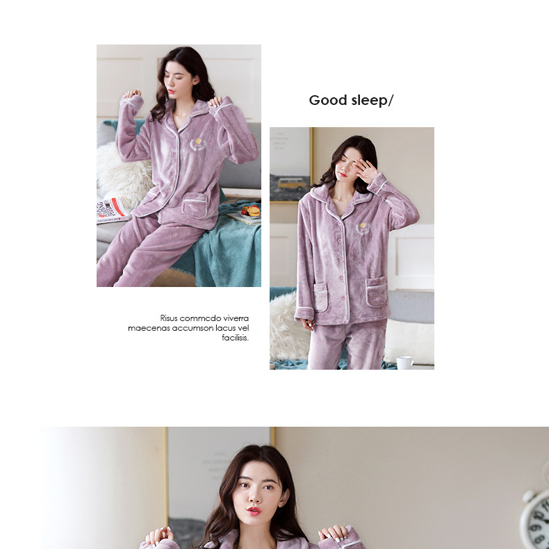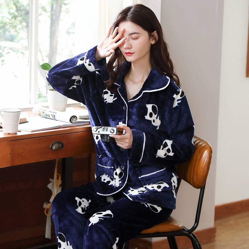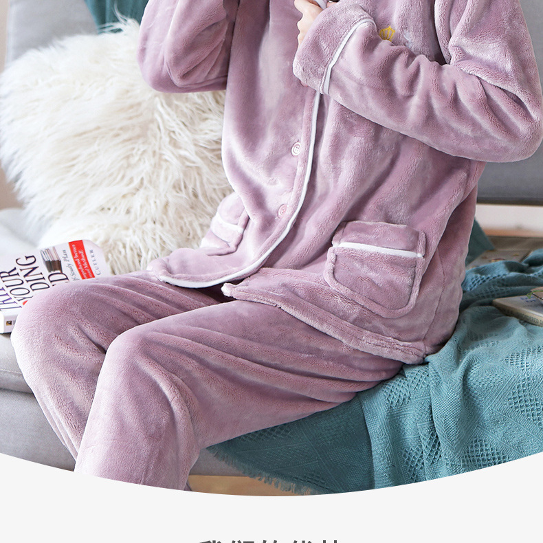 새로운 가을 겨울 산호 벨벳 잠옷 여성용 카라 오픈 플란넬 여성 홈웨어 세트