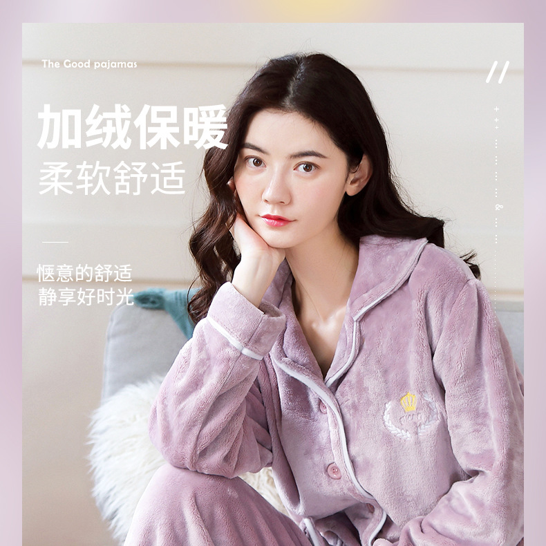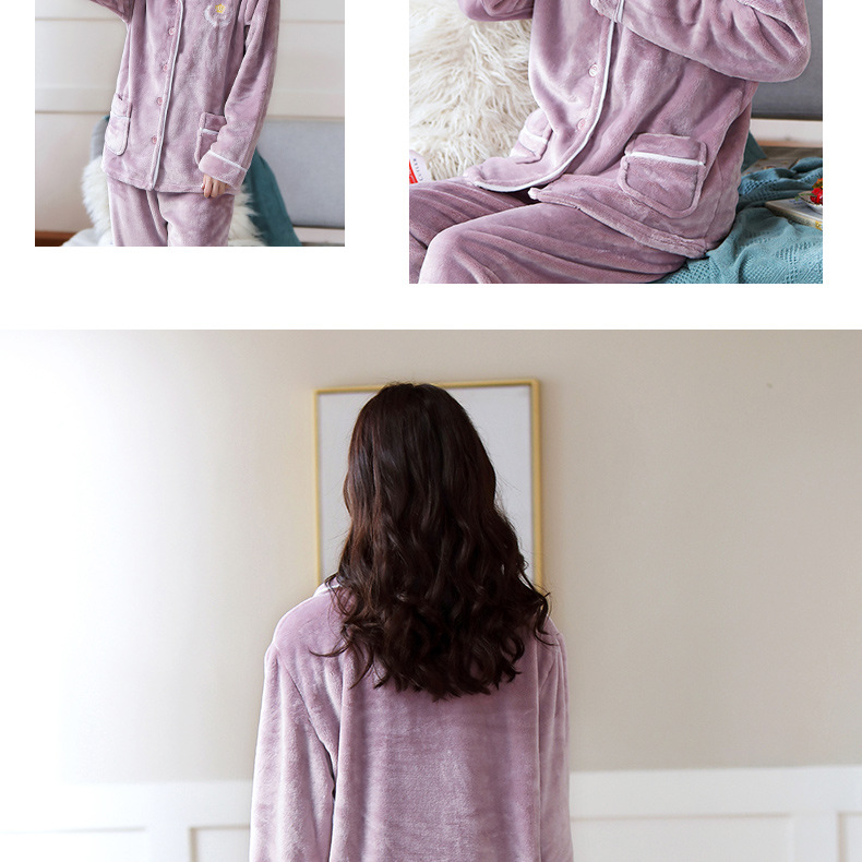 새로운 가을 겨울 산호 벨벳 잠옷 여성용 카라 오픈 플란넬 여성 홈웨어 세트스토어 가기