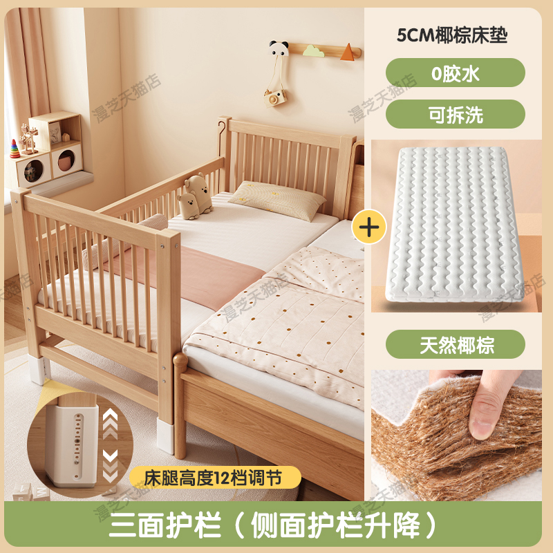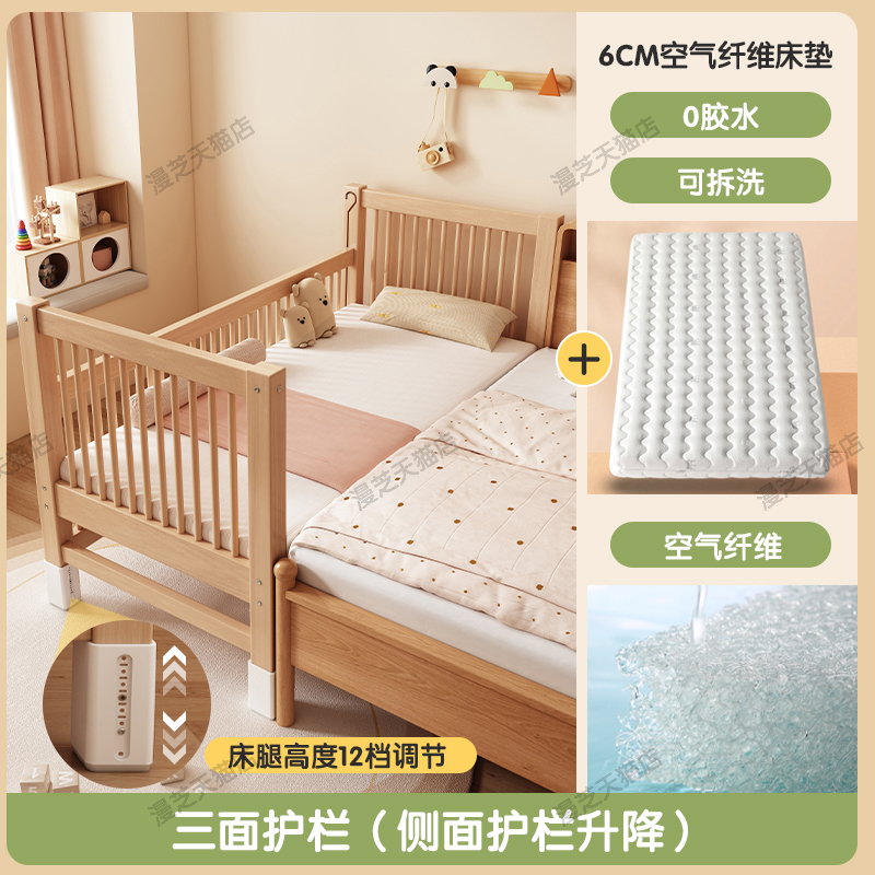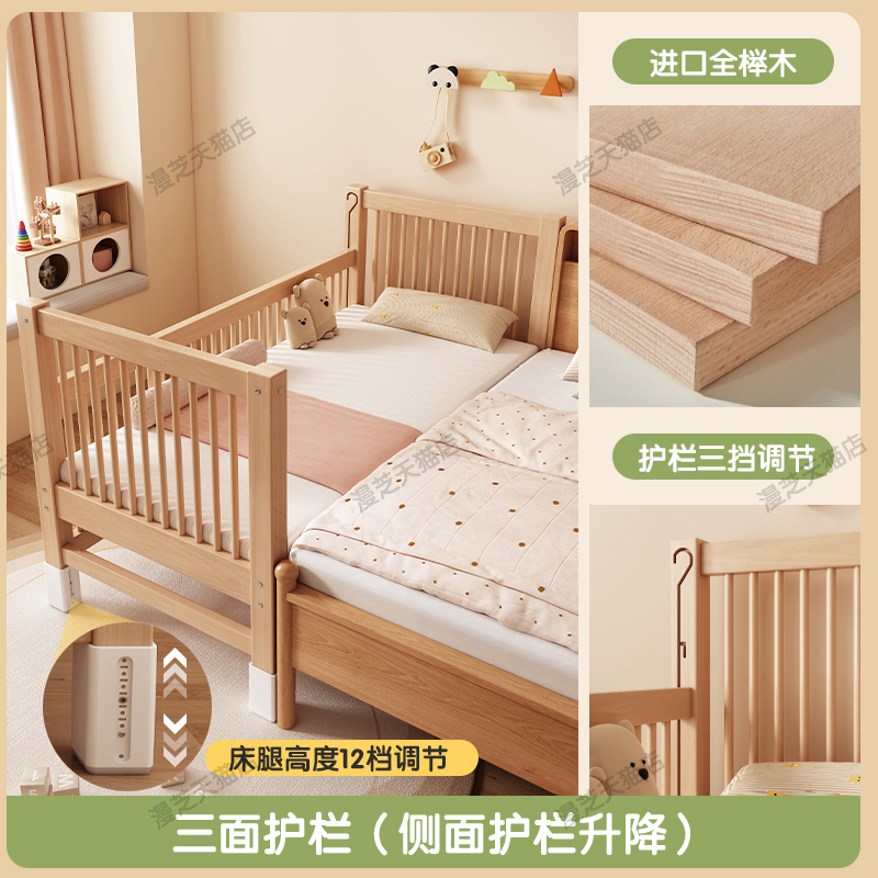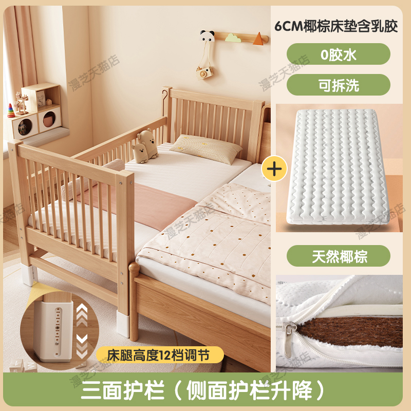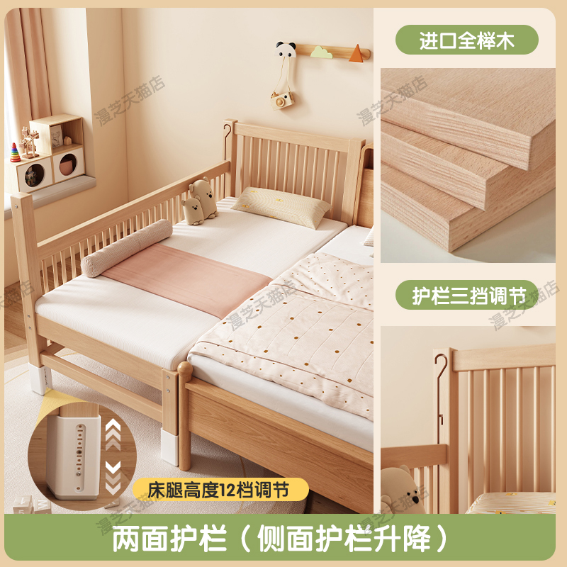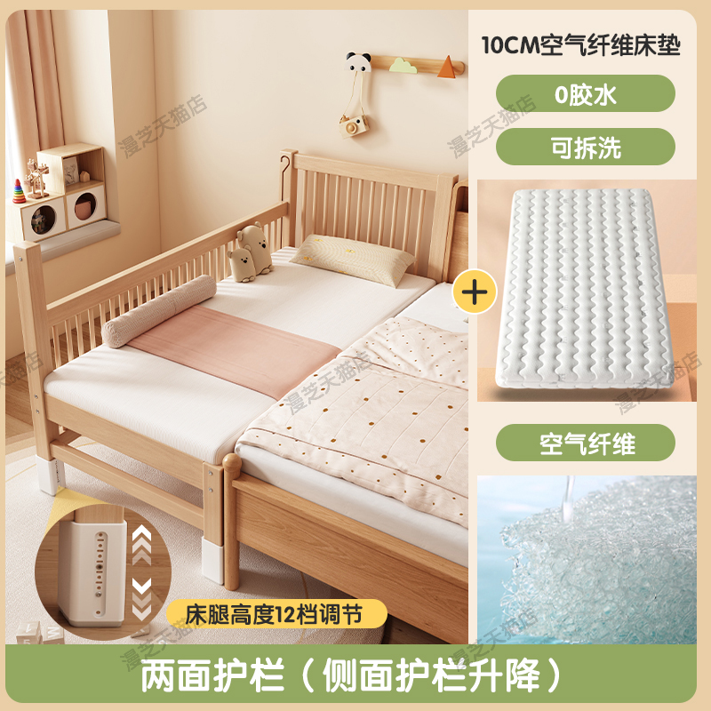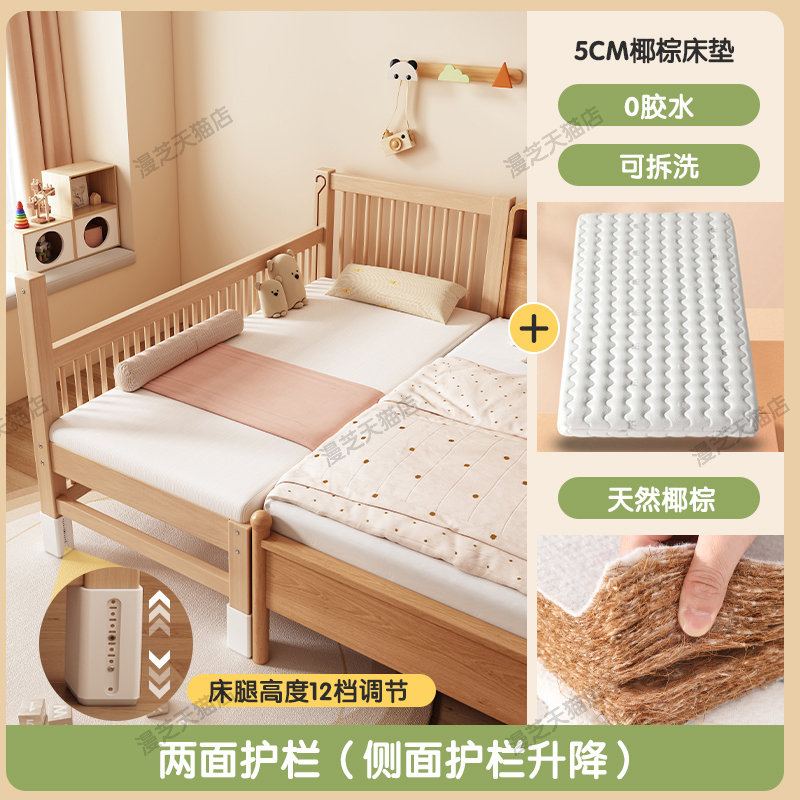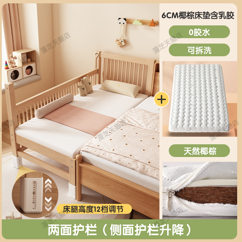M * 단단한 나무 어린이 침대 너도밤 나무 접합 침대는 큰 침대 리프팅 가드 레일 소년과 소녀 아기 아기를 연결하는 작은 침대를 넓혔습니다.스토어 가기