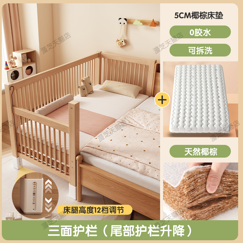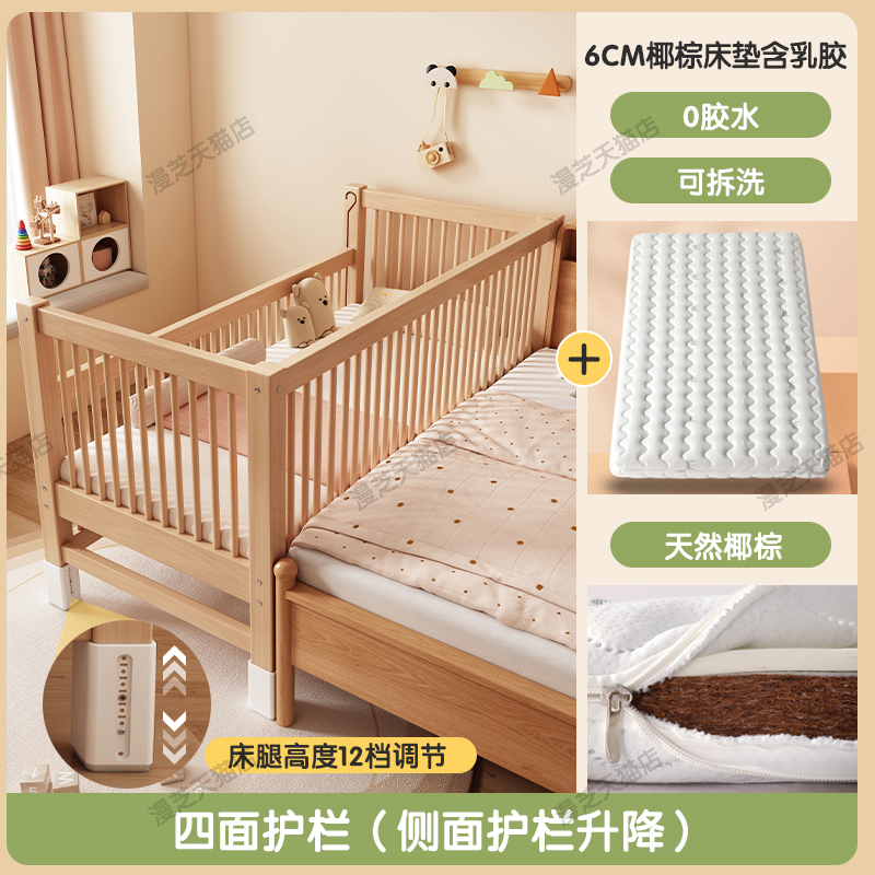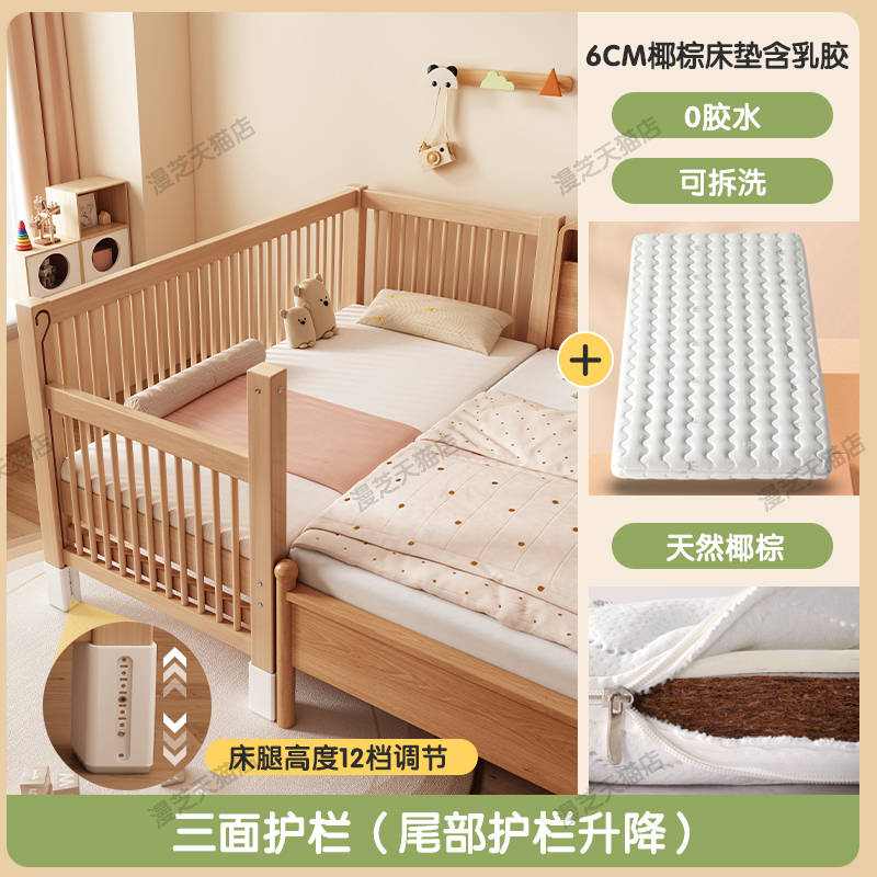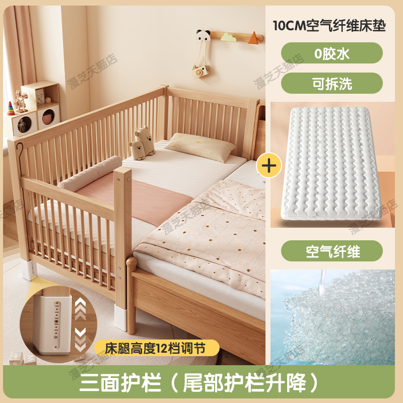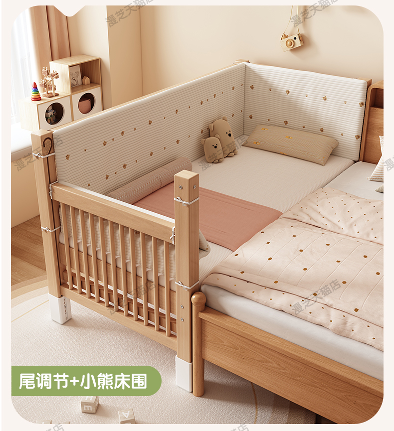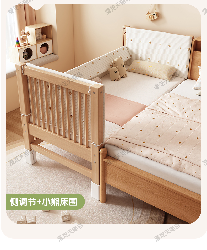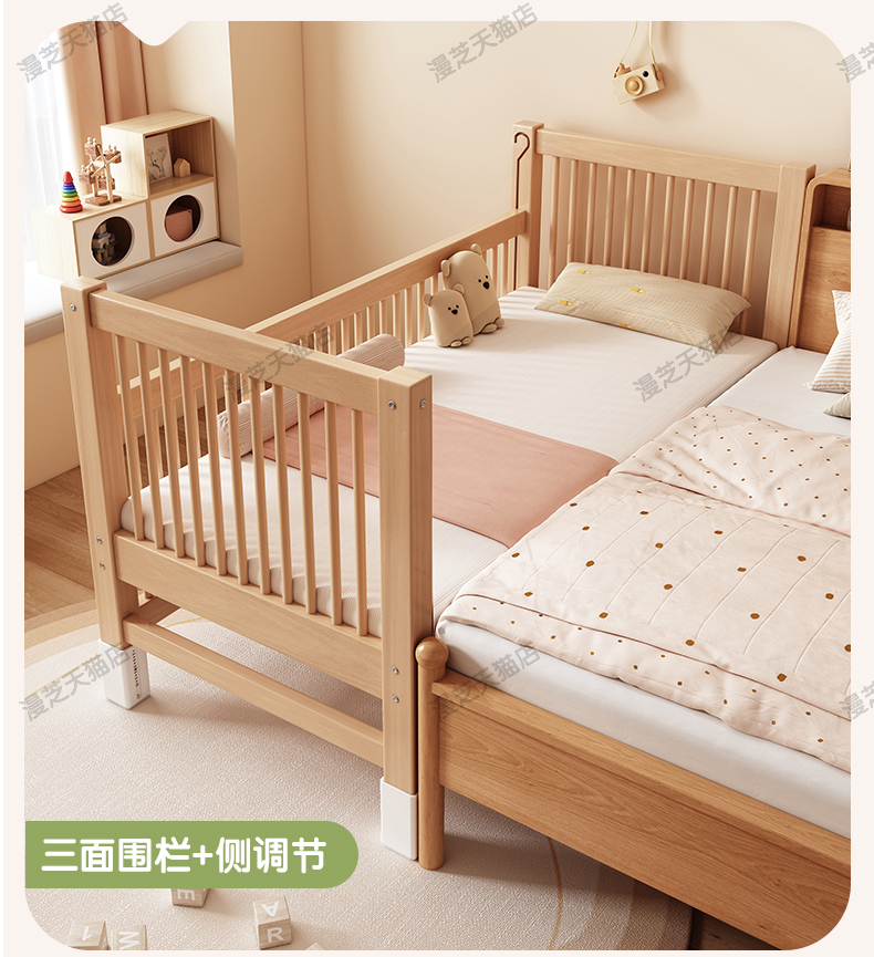 M * 단단한 나무 어린이 침대 너도밤 나무 접합 침대는 큰 침대 리프팅 가드 레일 소년과 소녀 아기 아기를 연결하는 작은 침대를 넓혔습니다.스토어 가기