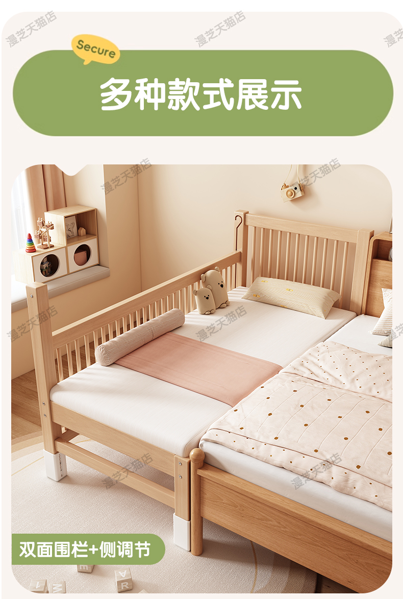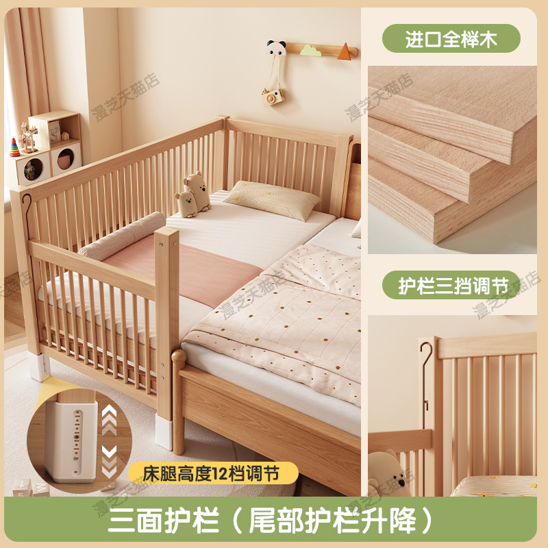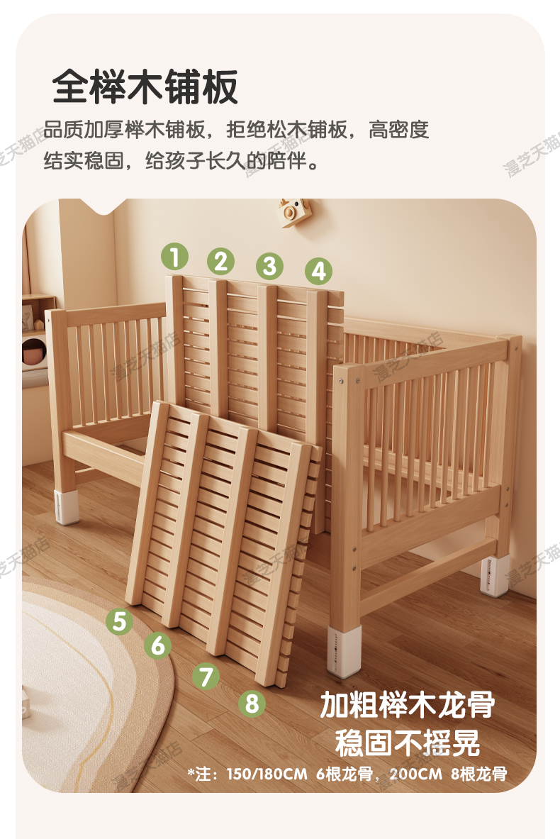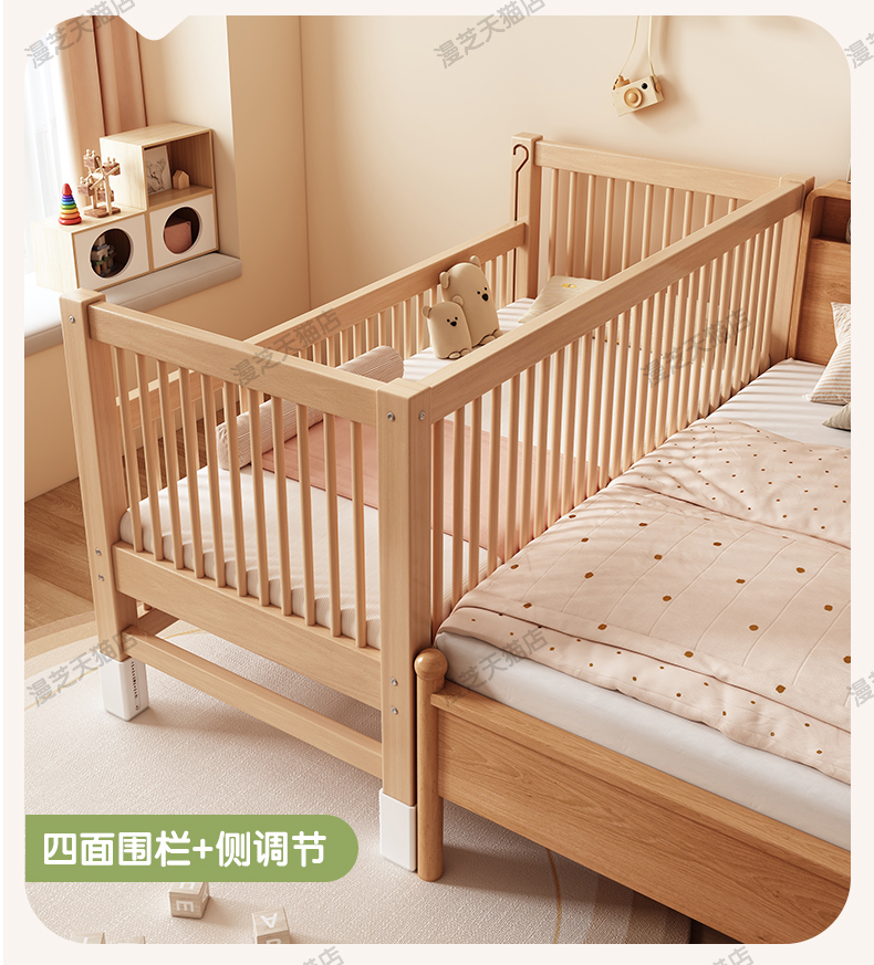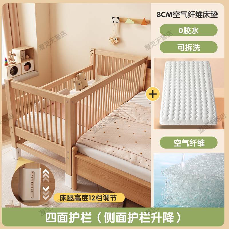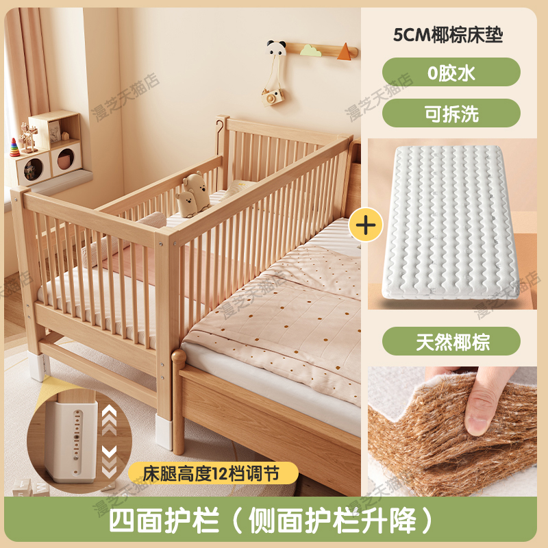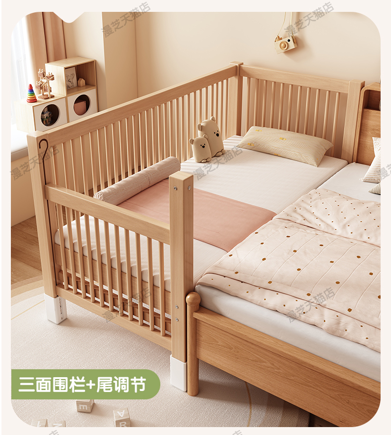 M * 단단한 나무 어린이 침대 너도밤 나무 접합 침대는 큰 침대 리프팅 가드 레일 소년과 소녀 아기 아기를 연결하는 작은 침대를 넓혔습니다.스토어 가기