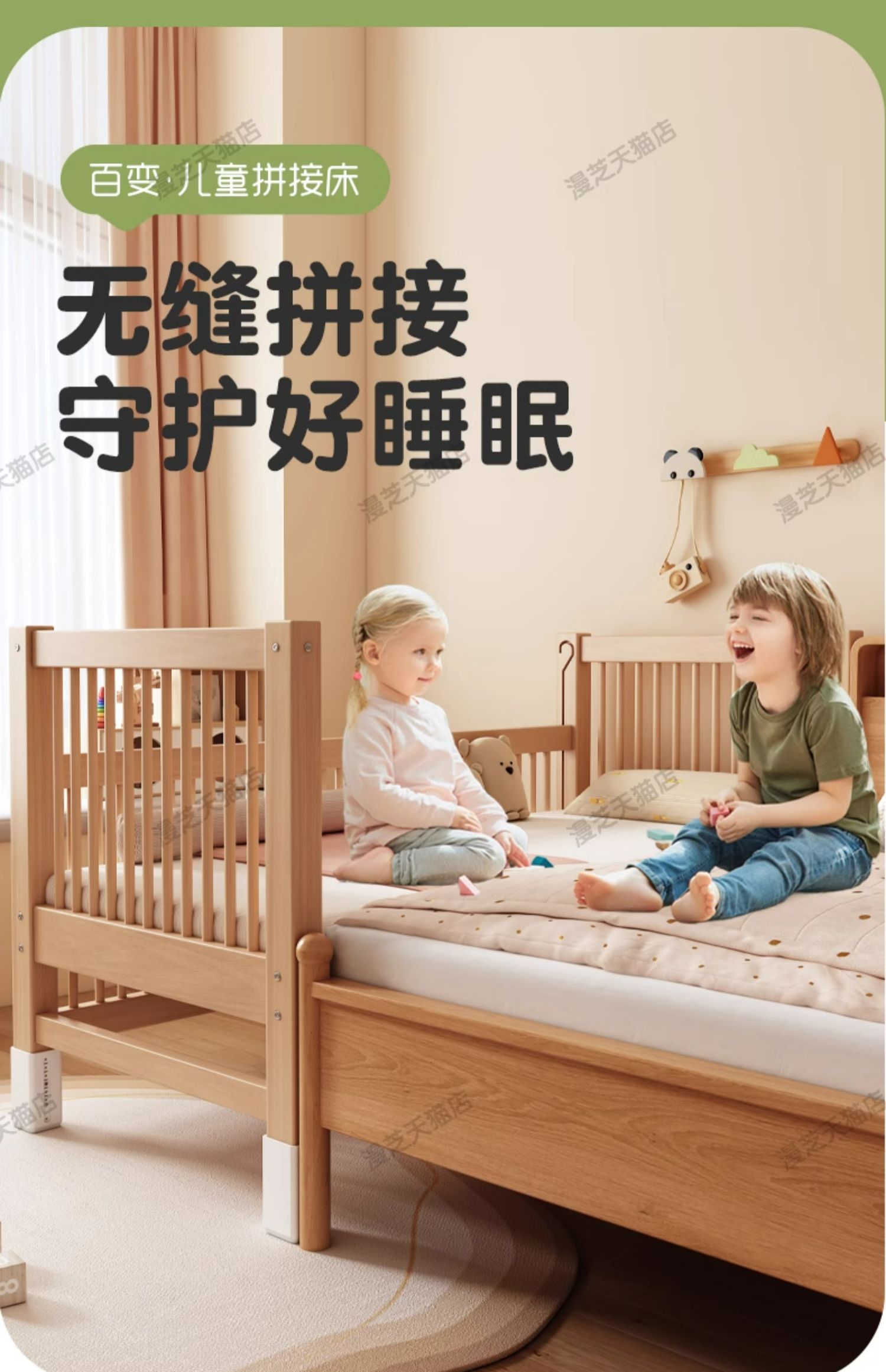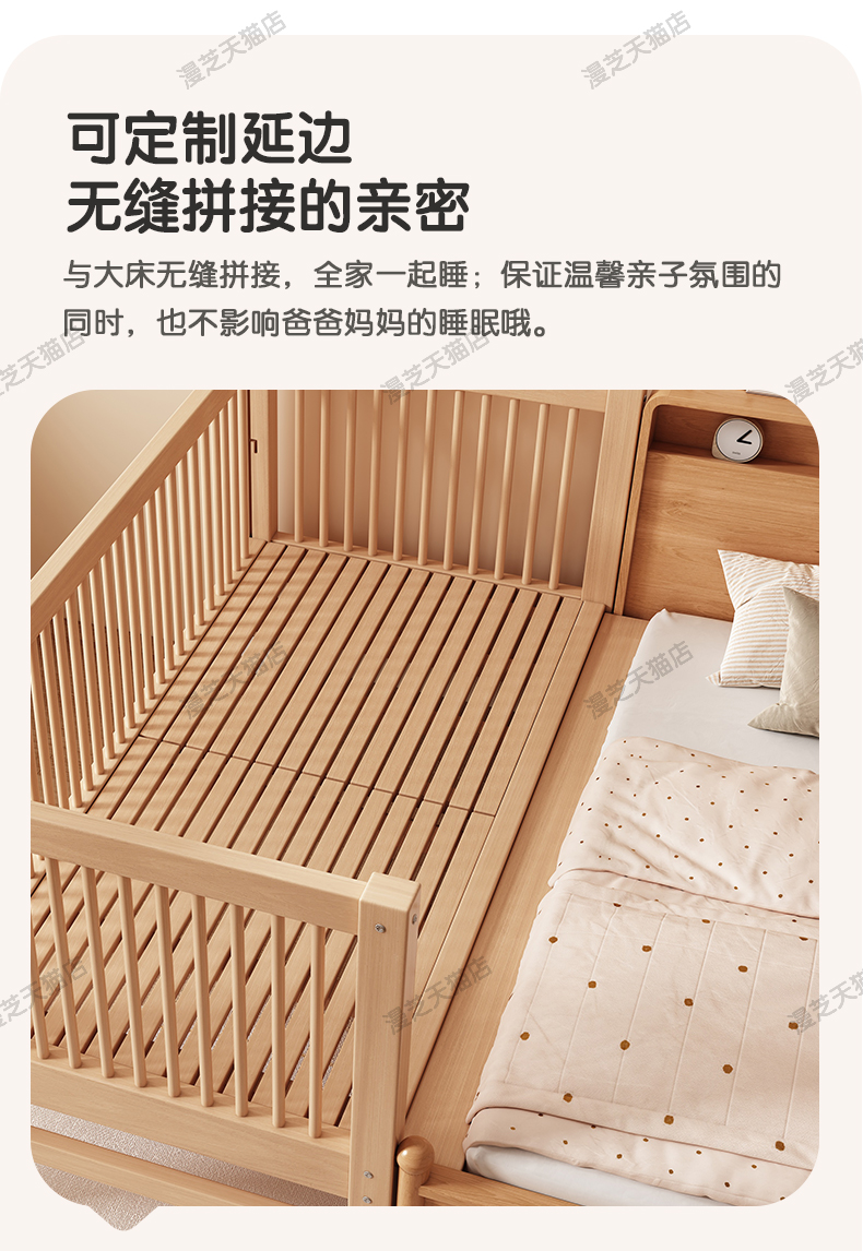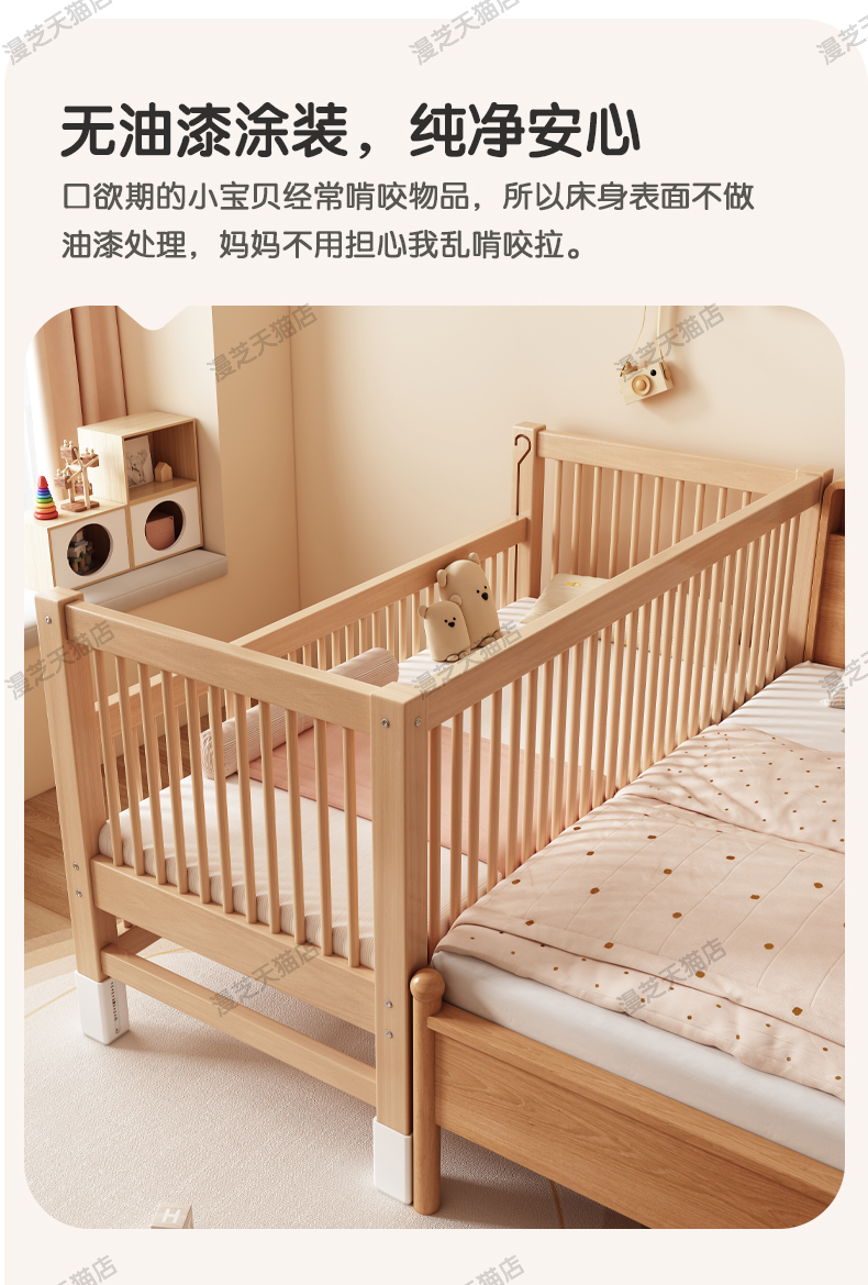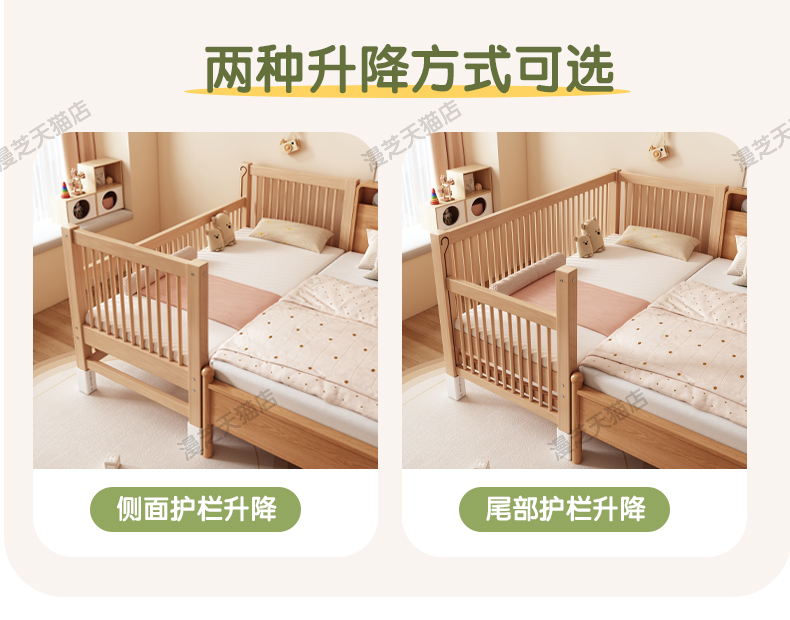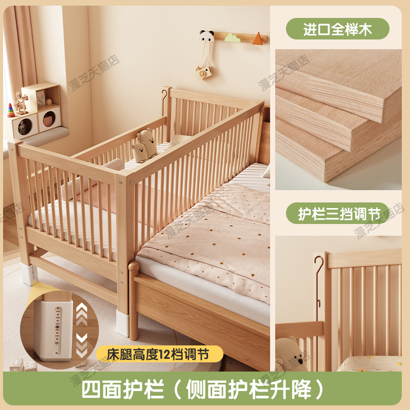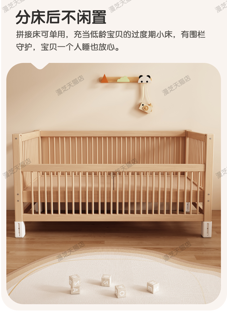M * 단단한 나무 어린이 침대 너도밤 나무 접합 침대는 큰 침대 리프팅 가드 레일 소년과 소녀 아기 아기를 연결하는 작은 침대를 넓혔습니다.스토어 가기