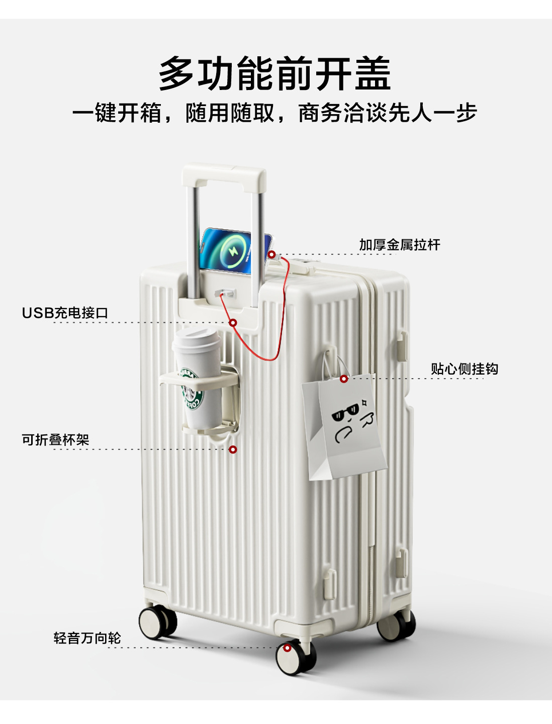 전면 개방 수하물 케이스 여성의 다기능 고 가치 내구성로드 암호 상자 2025 새로운 가방 남자 20 인치