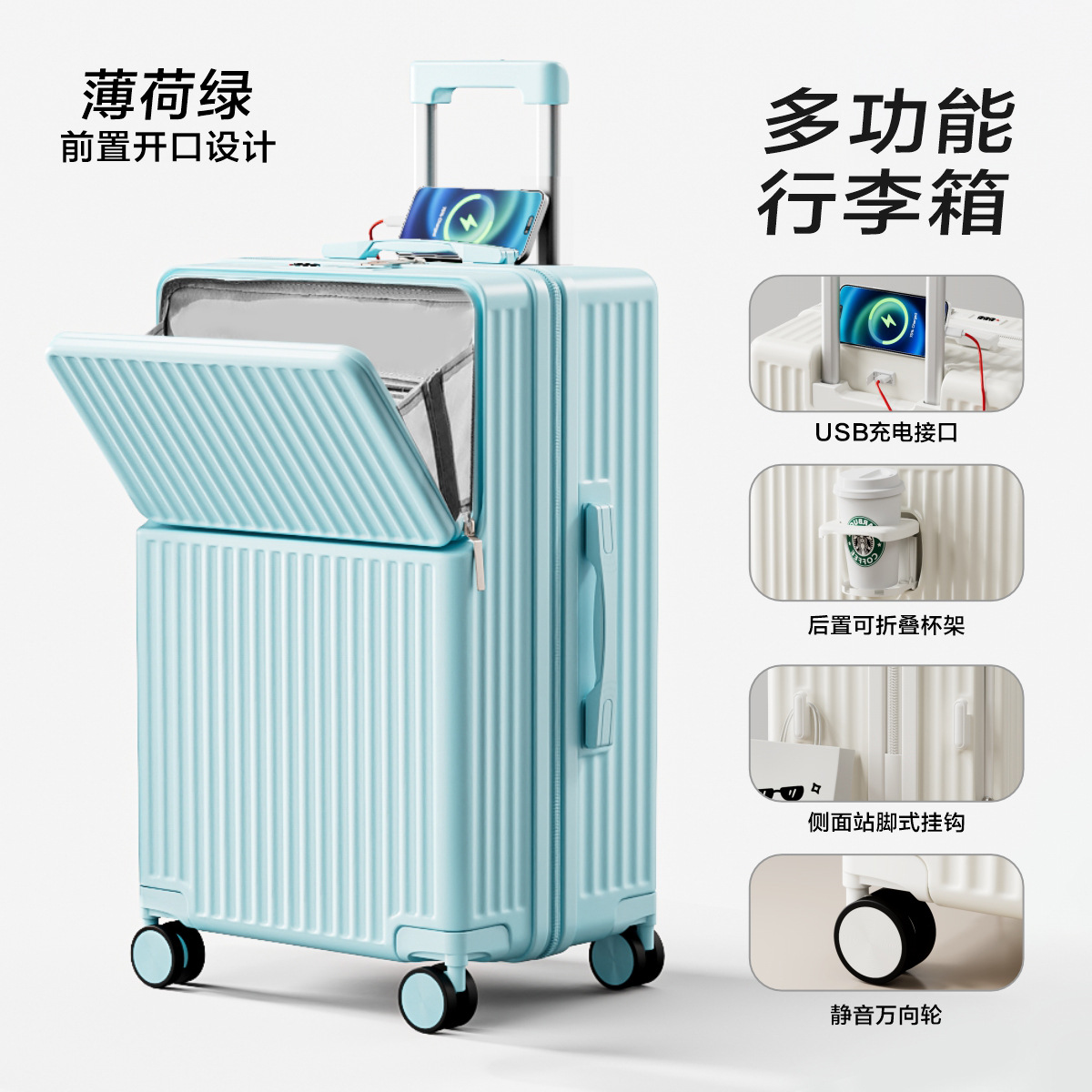전면 개방 수하물 케이스 여성의 다기능 고 가치 내구성로드 암호 상자 2025 새로운 가방 남자 20 인치스토어 가기