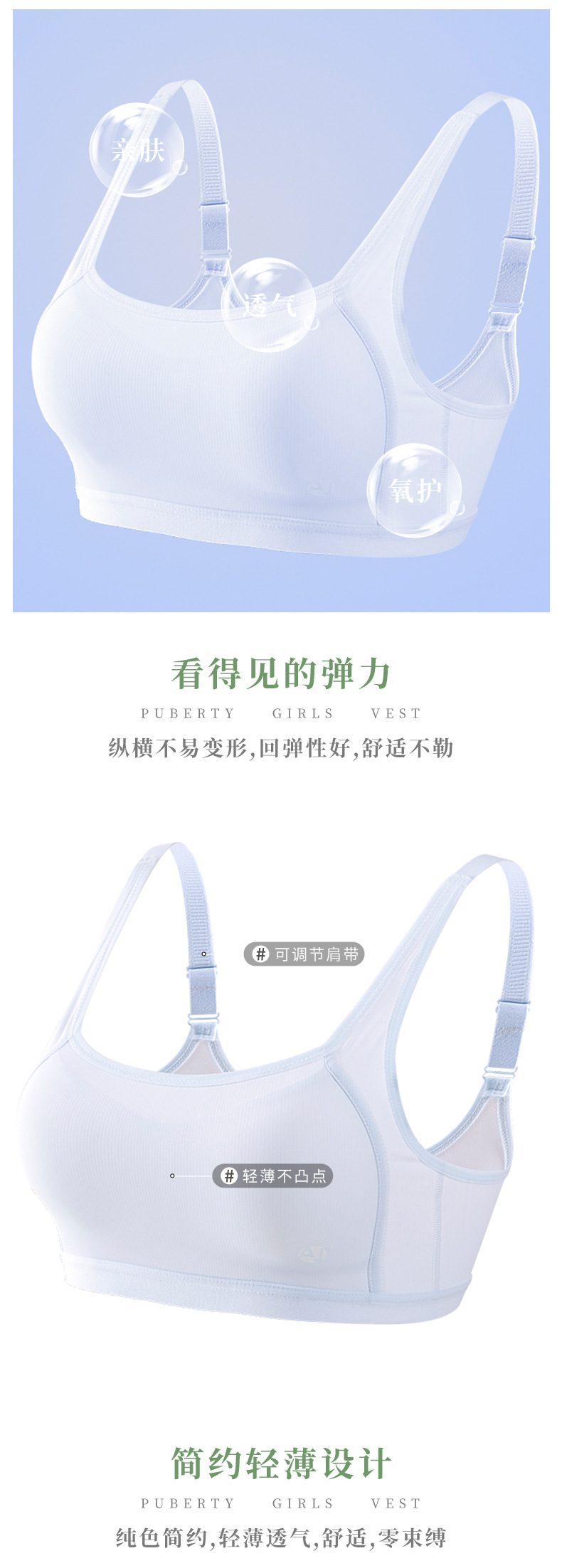 학생들을위한 2 단계 간단한 소녀의 브래지어 여름 얇은 속옷 중학교 고등학교 스포츠 편안한 조끼