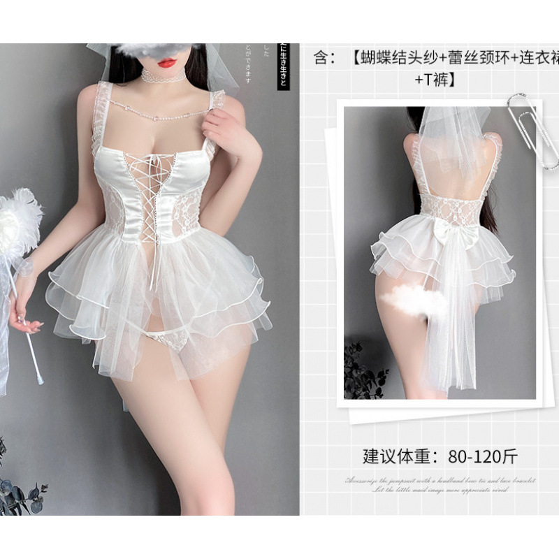 섹시한 웨딩 원피스 섹시 속옷 유혹 유니폼 세트 침대 뜨거운 열정 한밤중의 매력 로브는 파자마