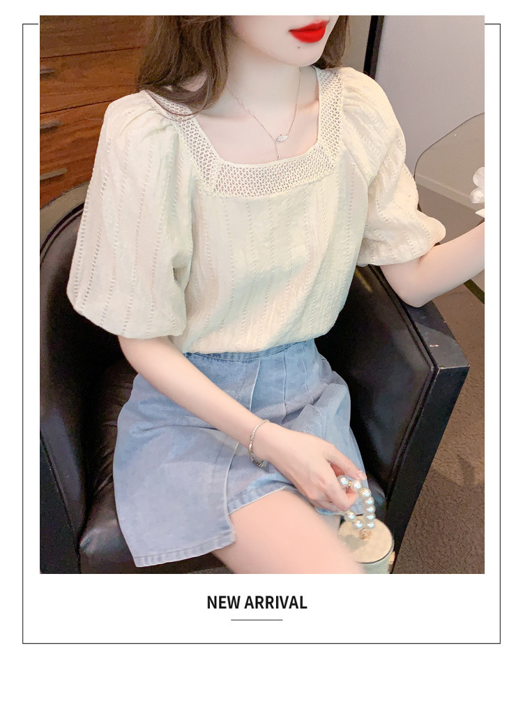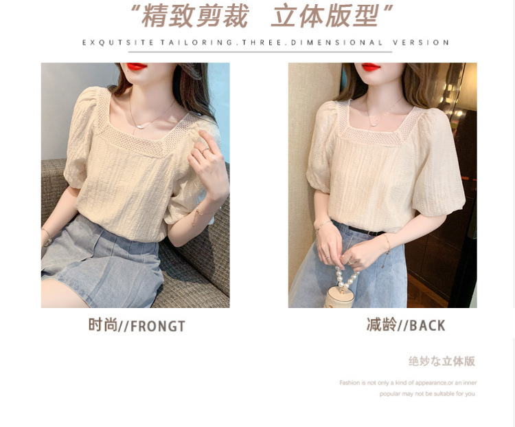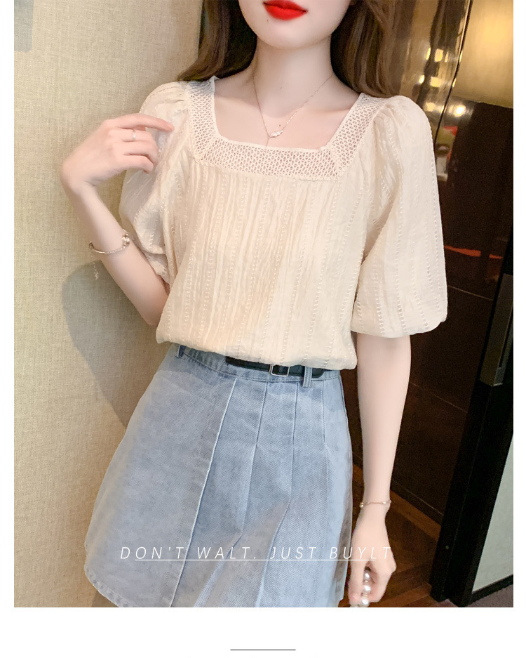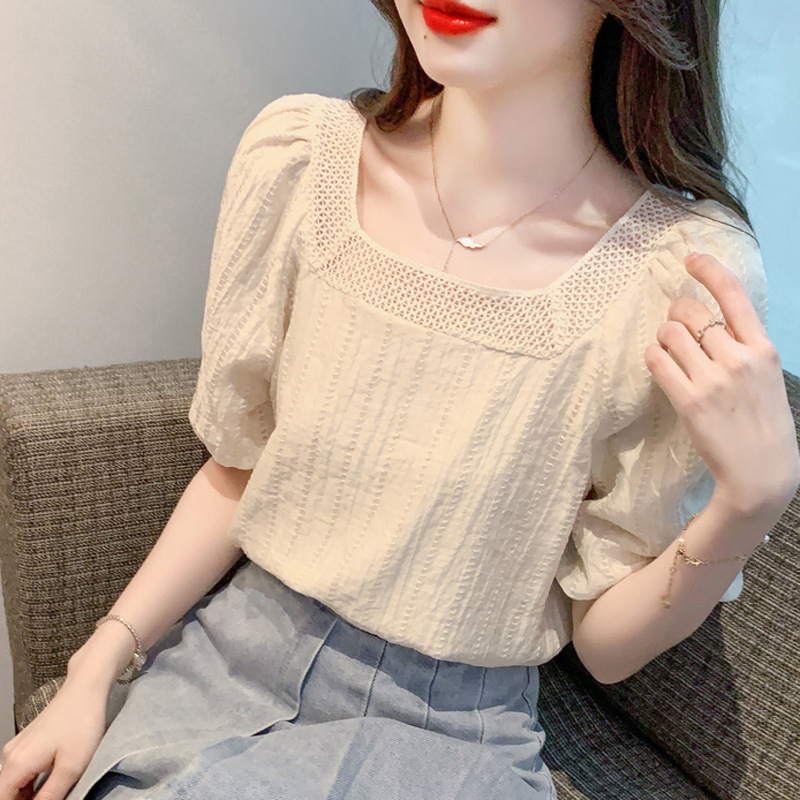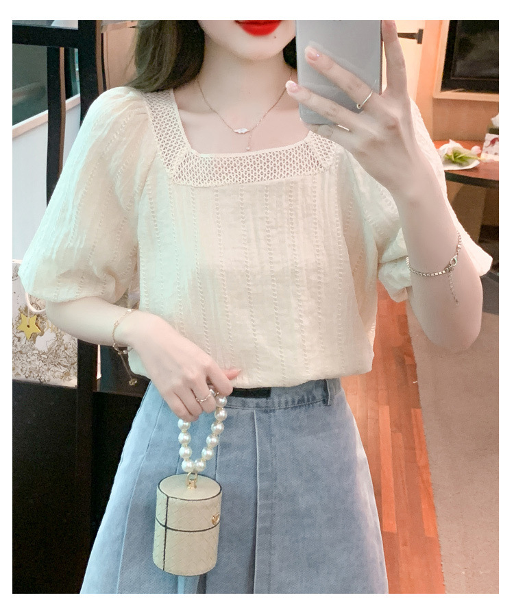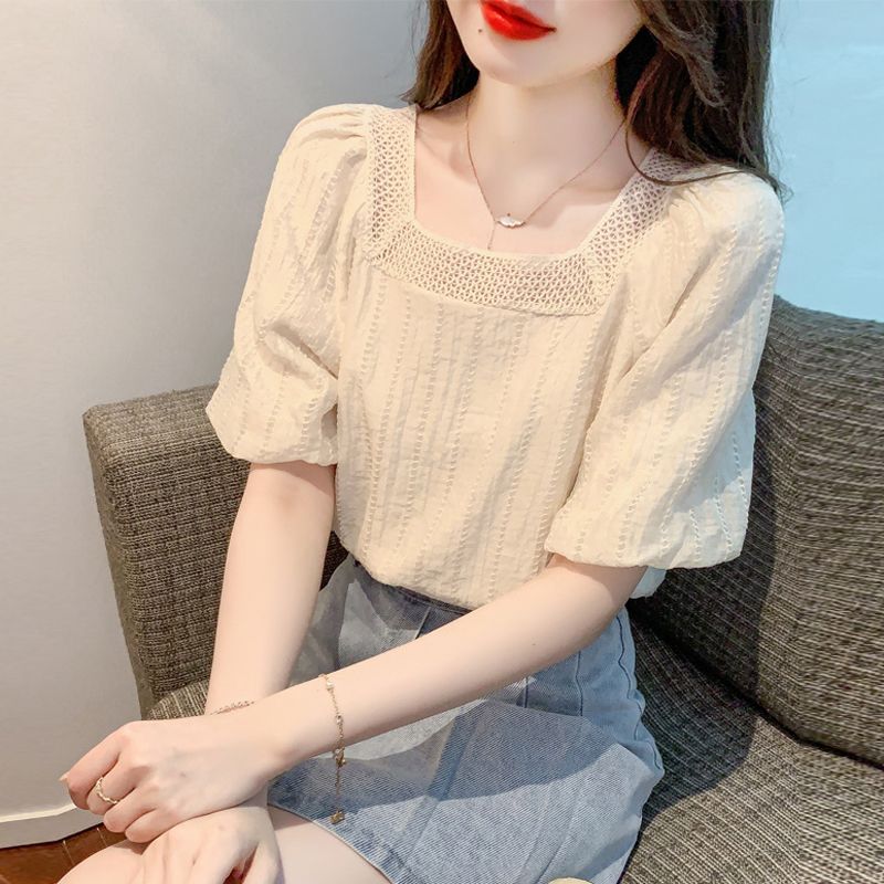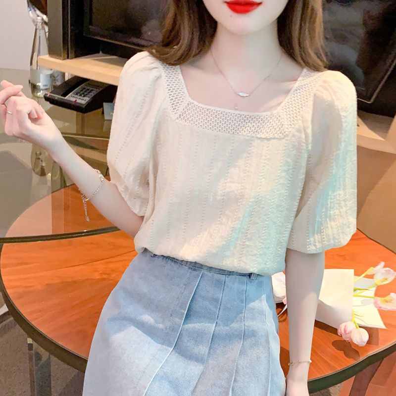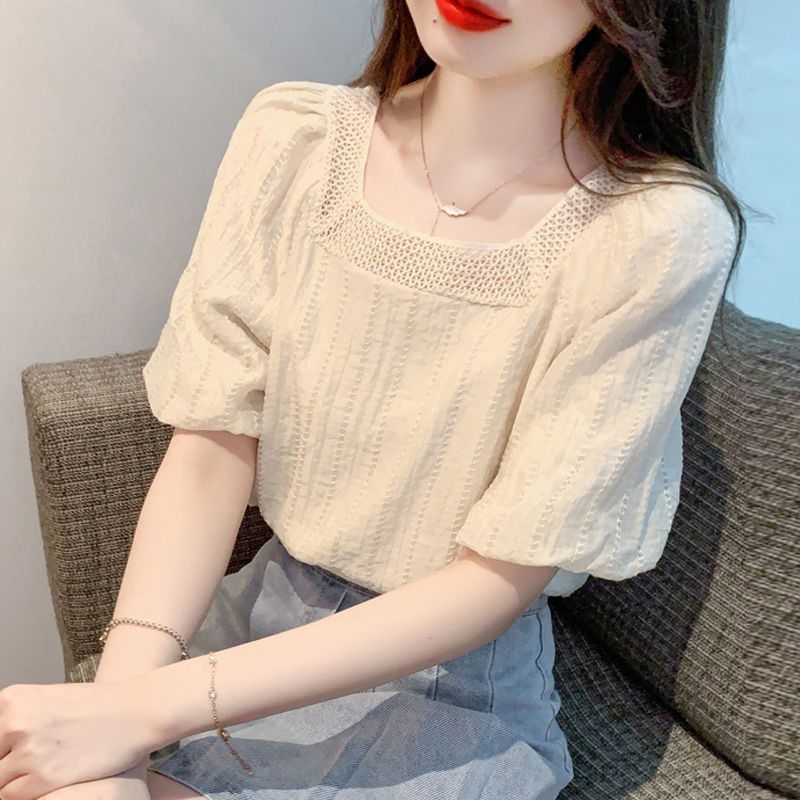 여름 새로운 스타일 쉬폰 셔츠 우아한 달콤한 프랑스 스타일 작은 셔츠 소녀 반팔 쉬폰 탑 여성 슬림 커버 벨리스토어 가기