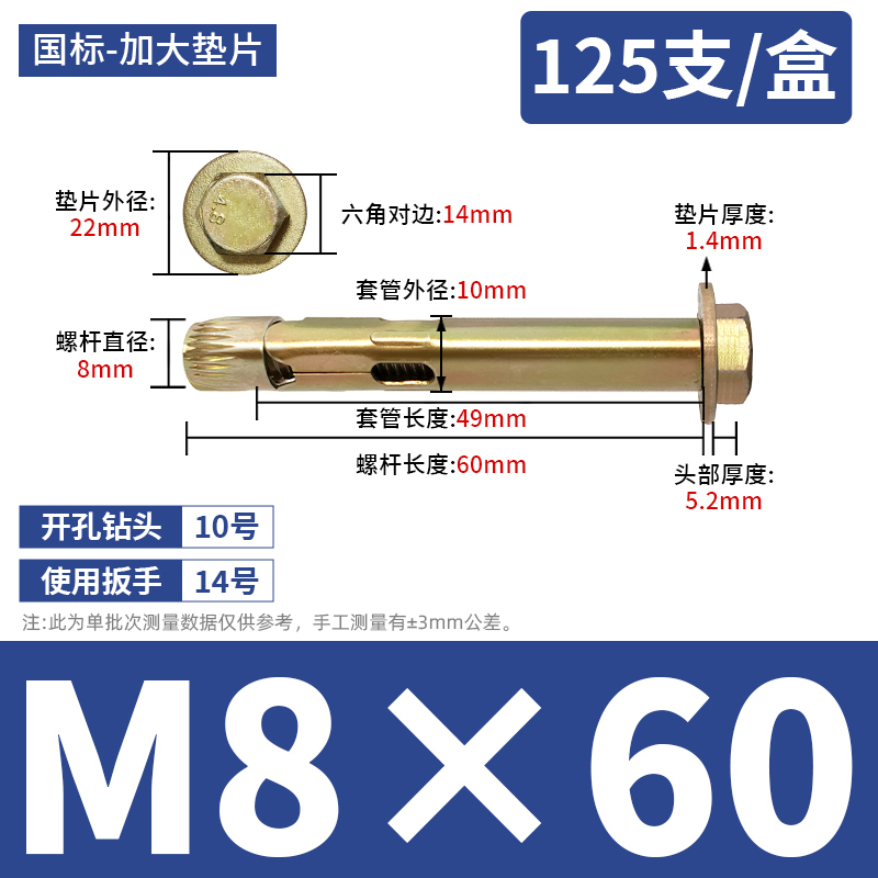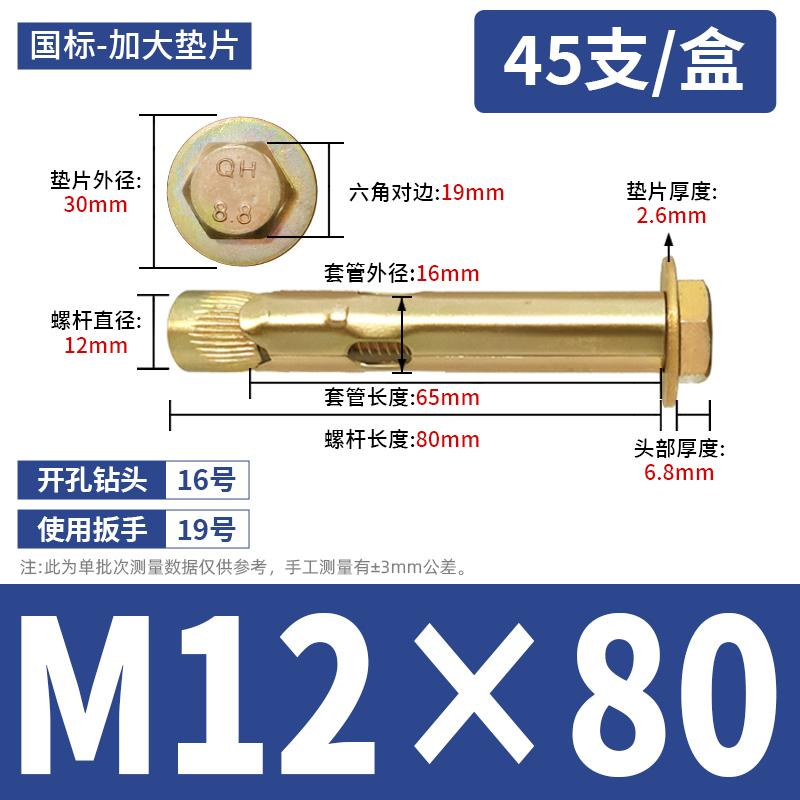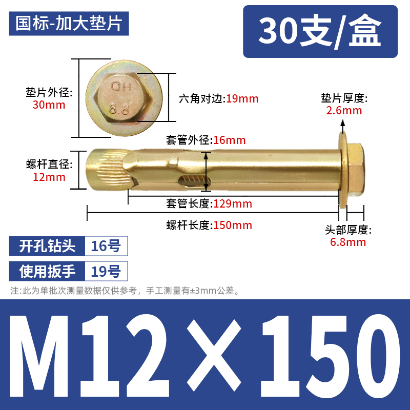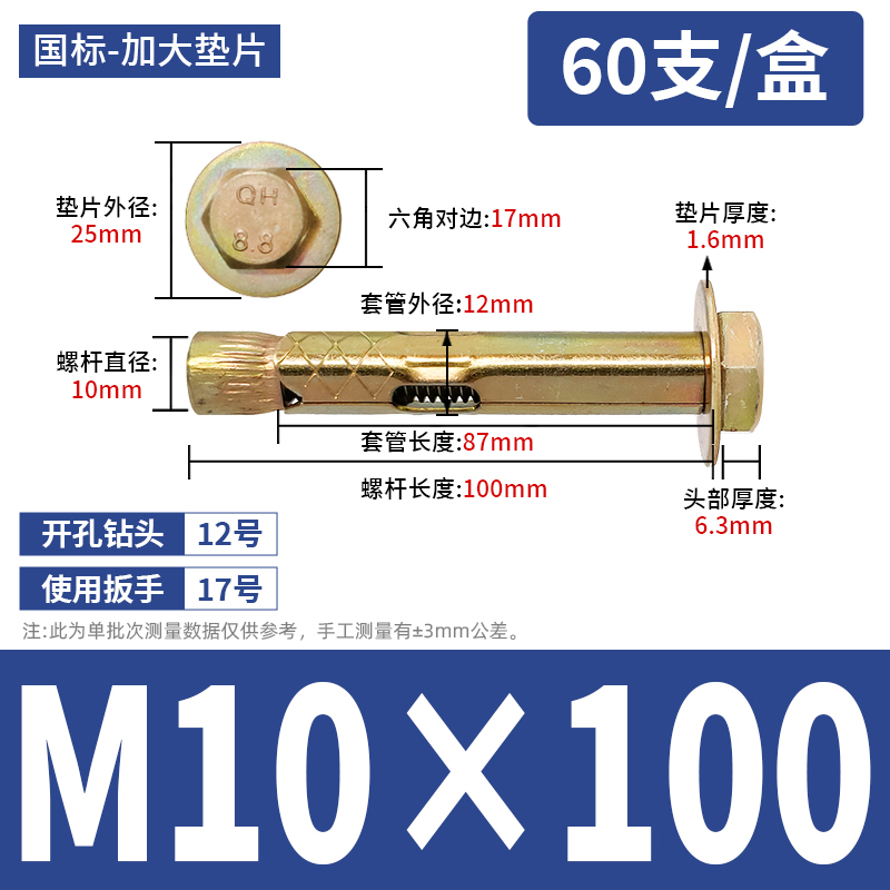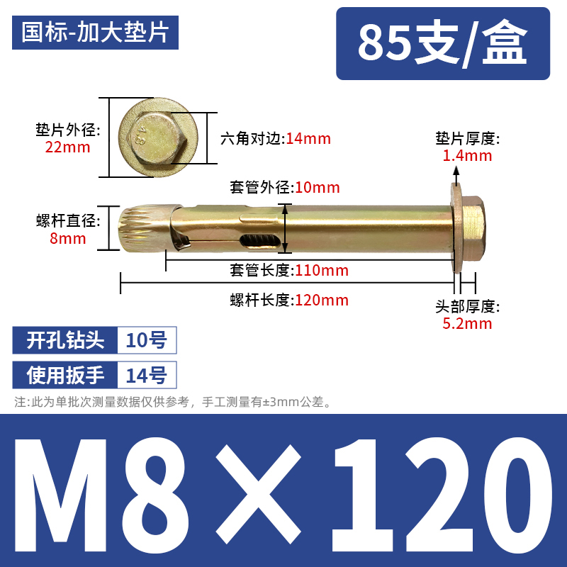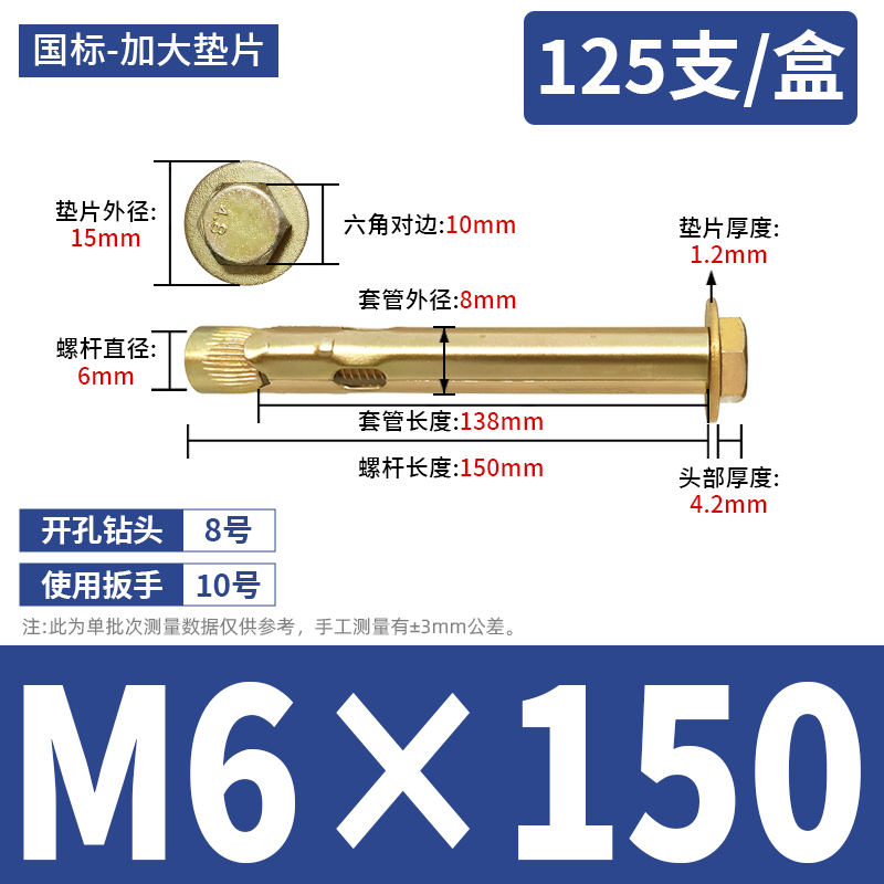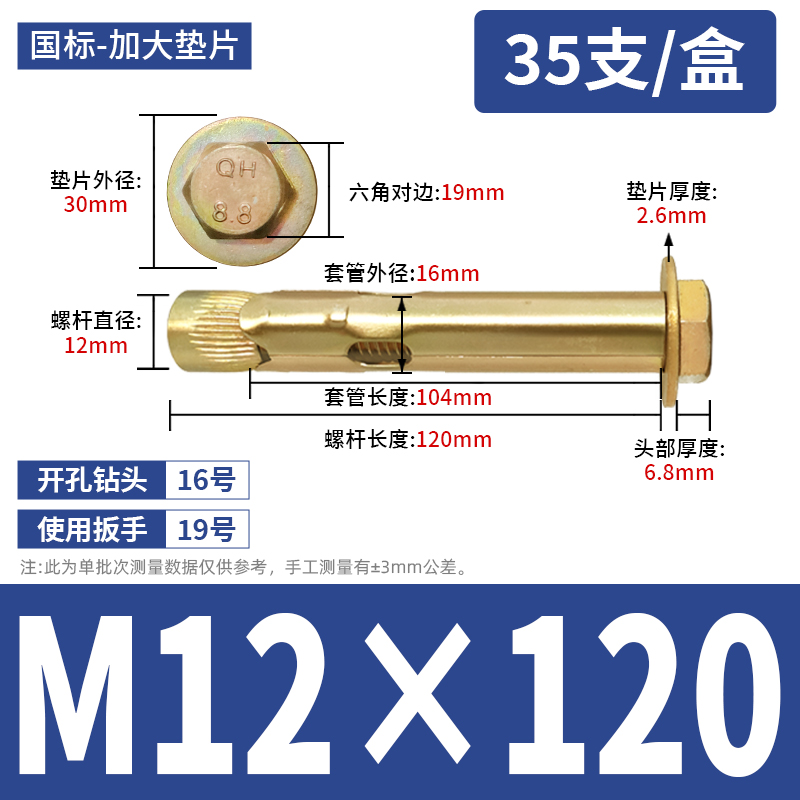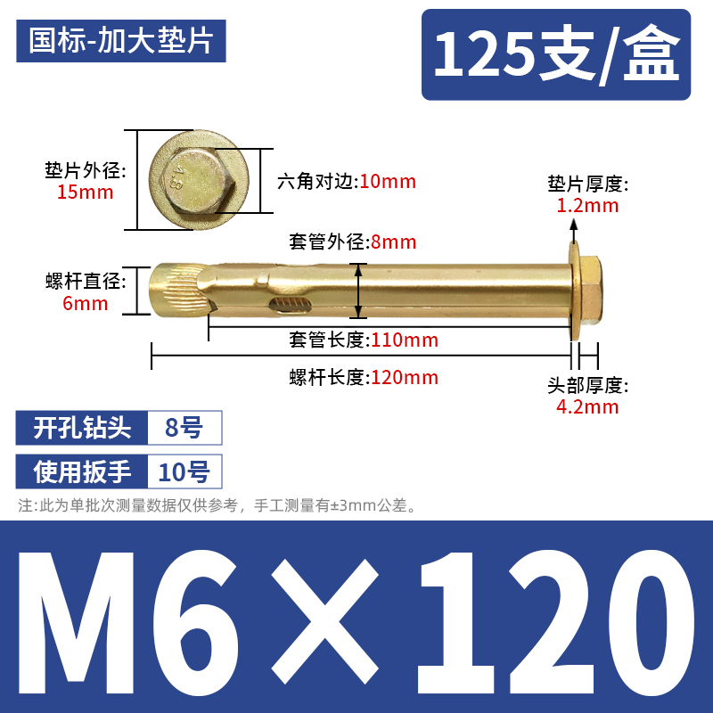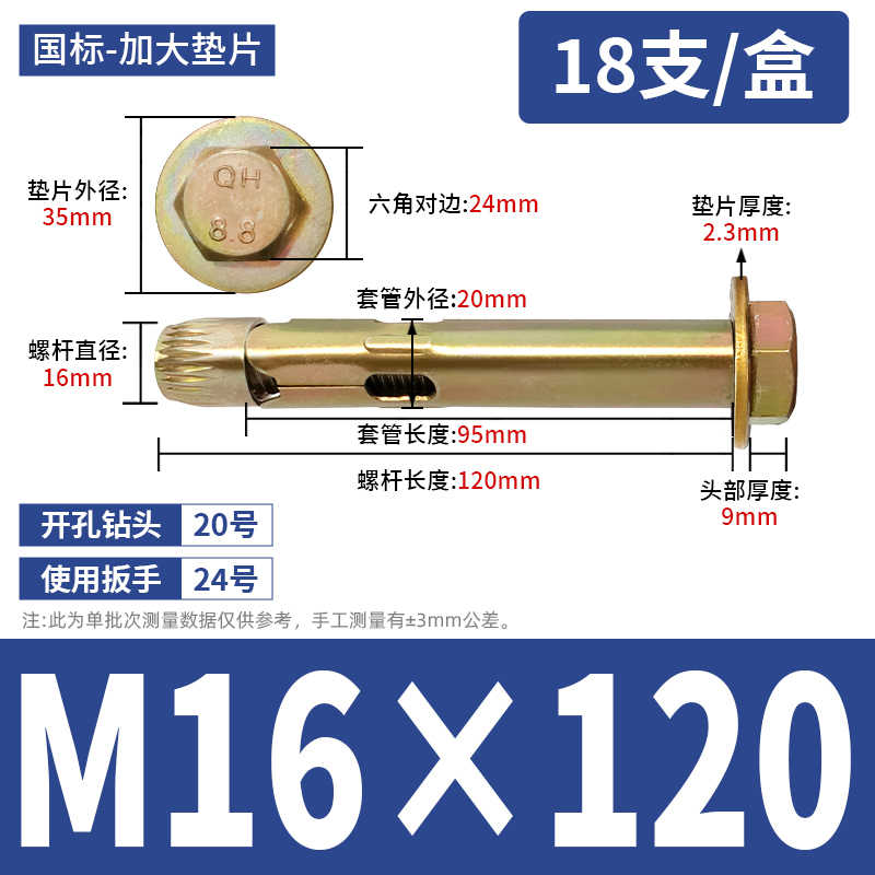• 대형 개스킷이 포함된 국가 표준 M16X120 [1상자에 18개]