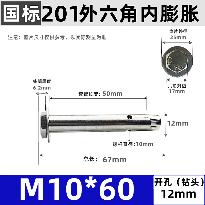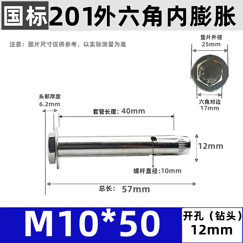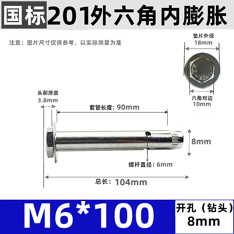 304 스테인레스 스틸 외부 육각형 내부 확장 나사 넓은 유형 내부 풀 폭발 확장 바닥 내파 확장 201