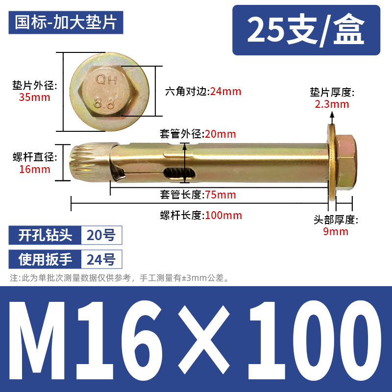 • 대형 개스킷이 있는 국가 표준 M16X100 [25개들이 상자]