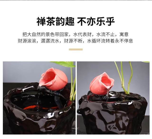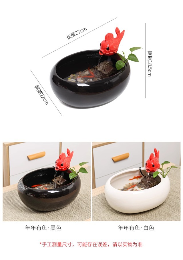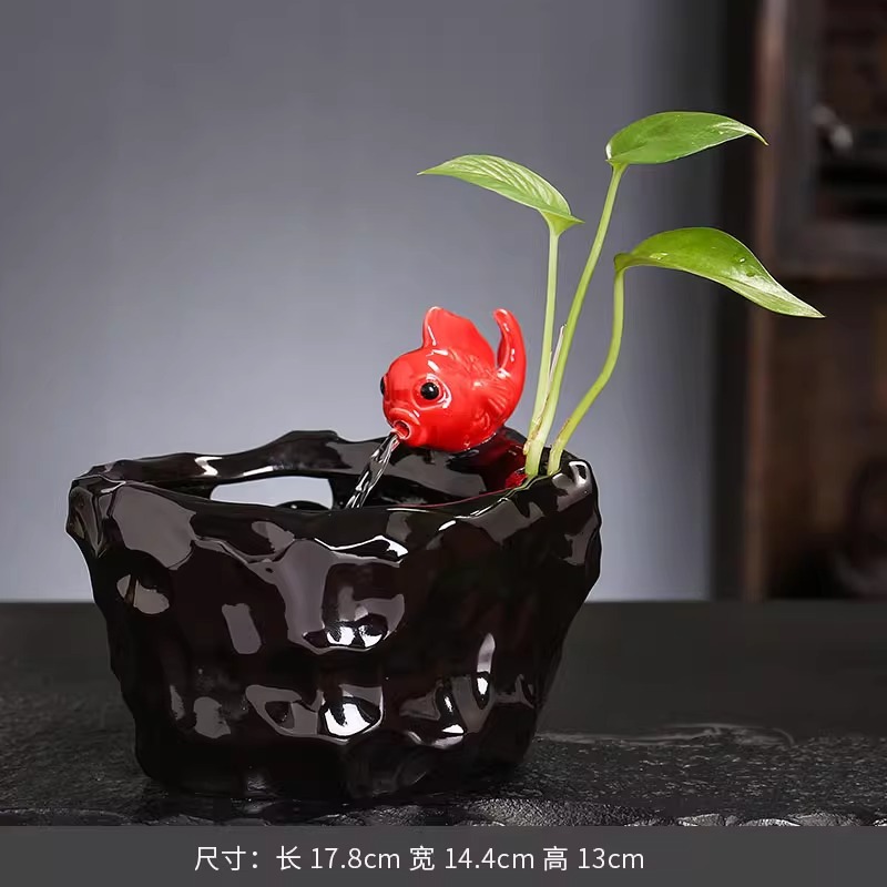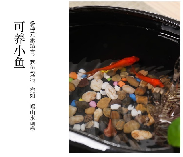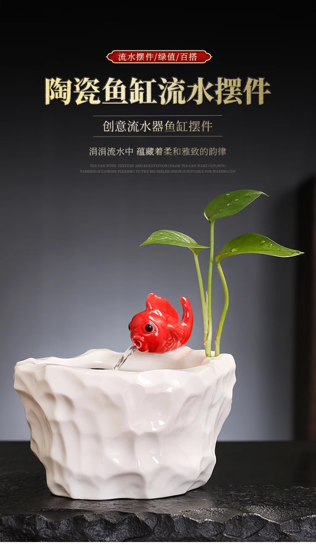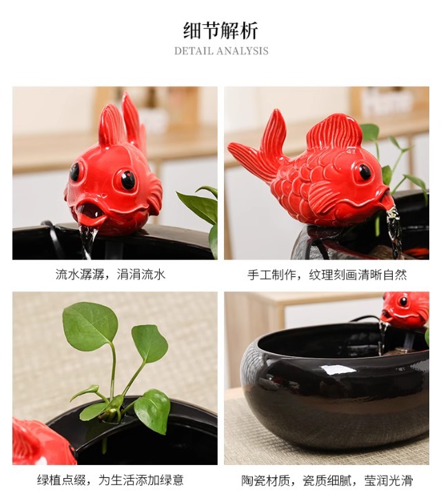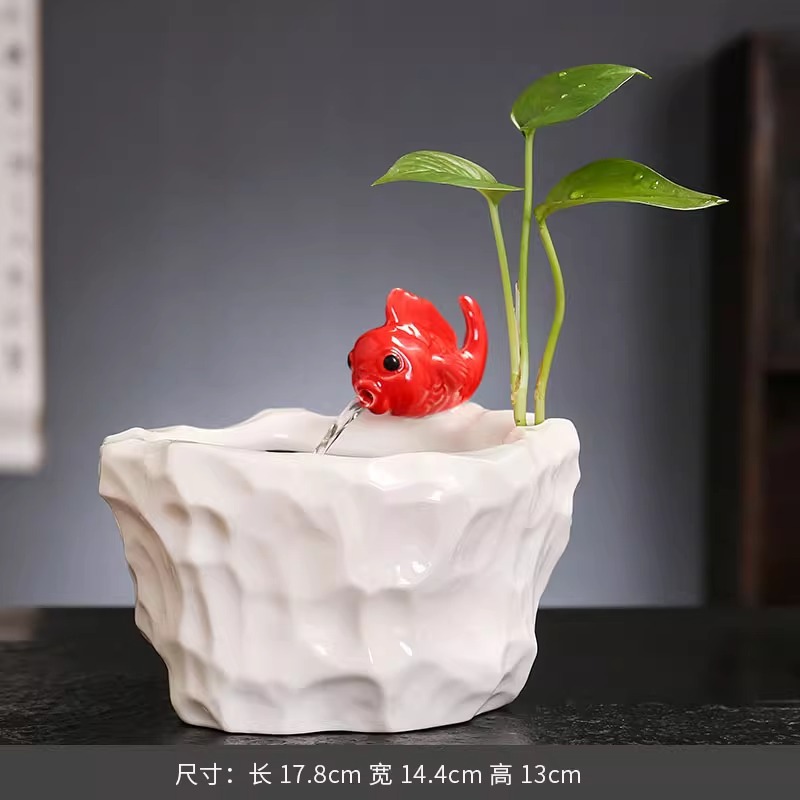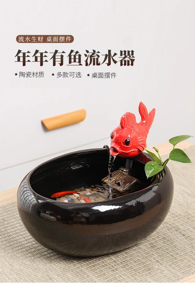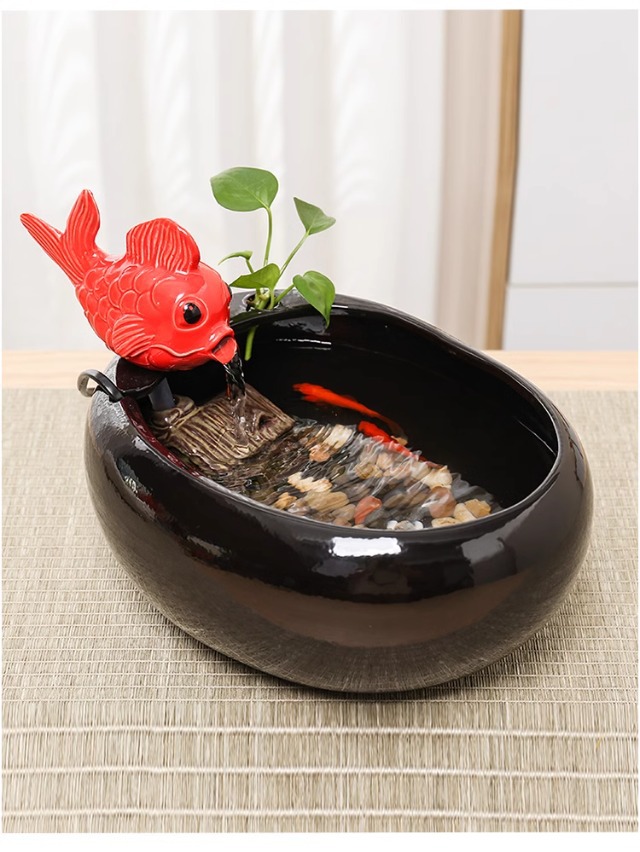 세라믹 자동 순환 흐르는 물 창조적 인 데스크탑 거실 장식품 행운의 물고기 탱크 실내 가습기 고양이 물 디스펜서