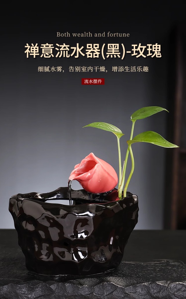 • 피치 핑크 장미 흐르는 물 + 검은 수조 [물 펌프 + 유색 돌 + 녹색 식물 보내기]