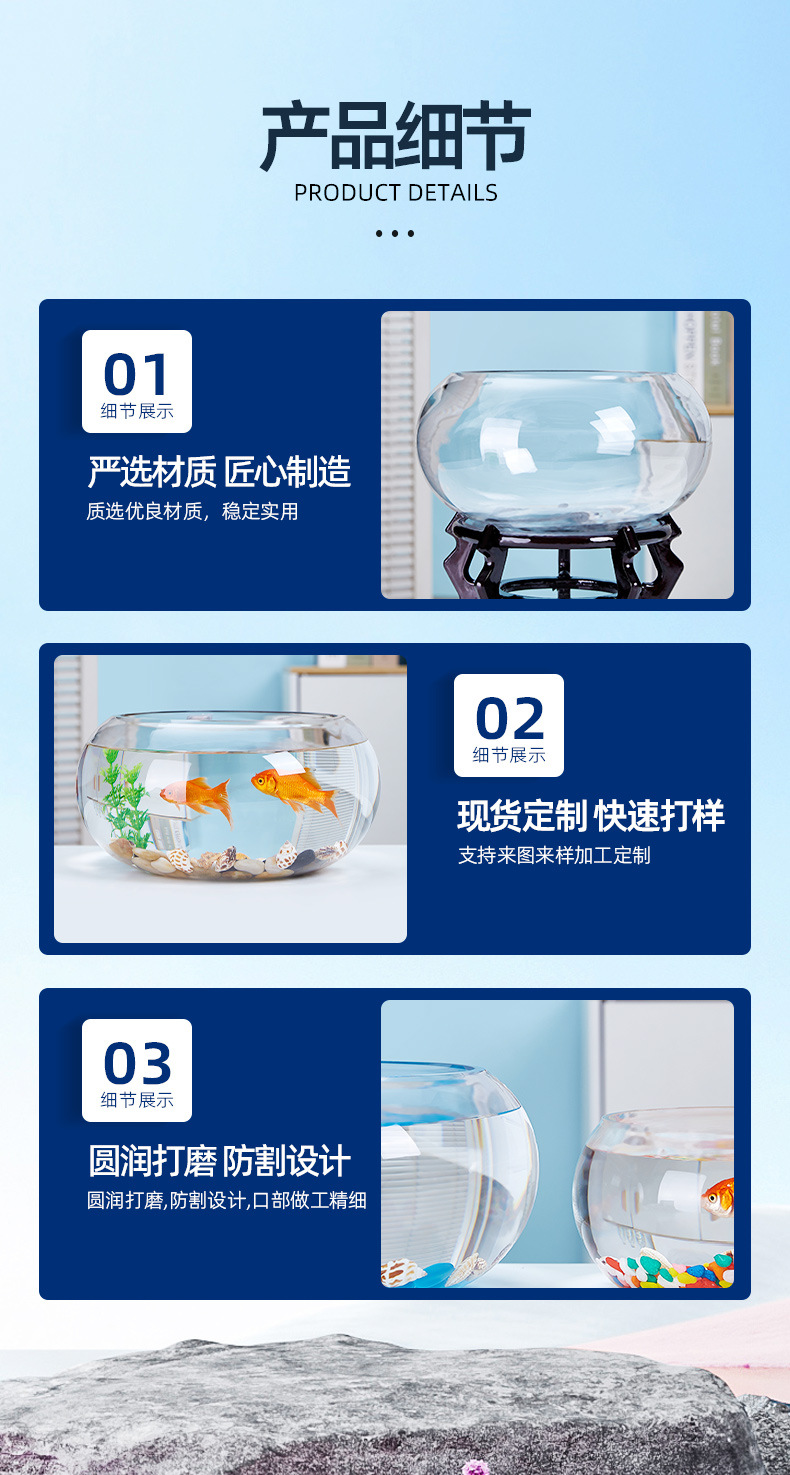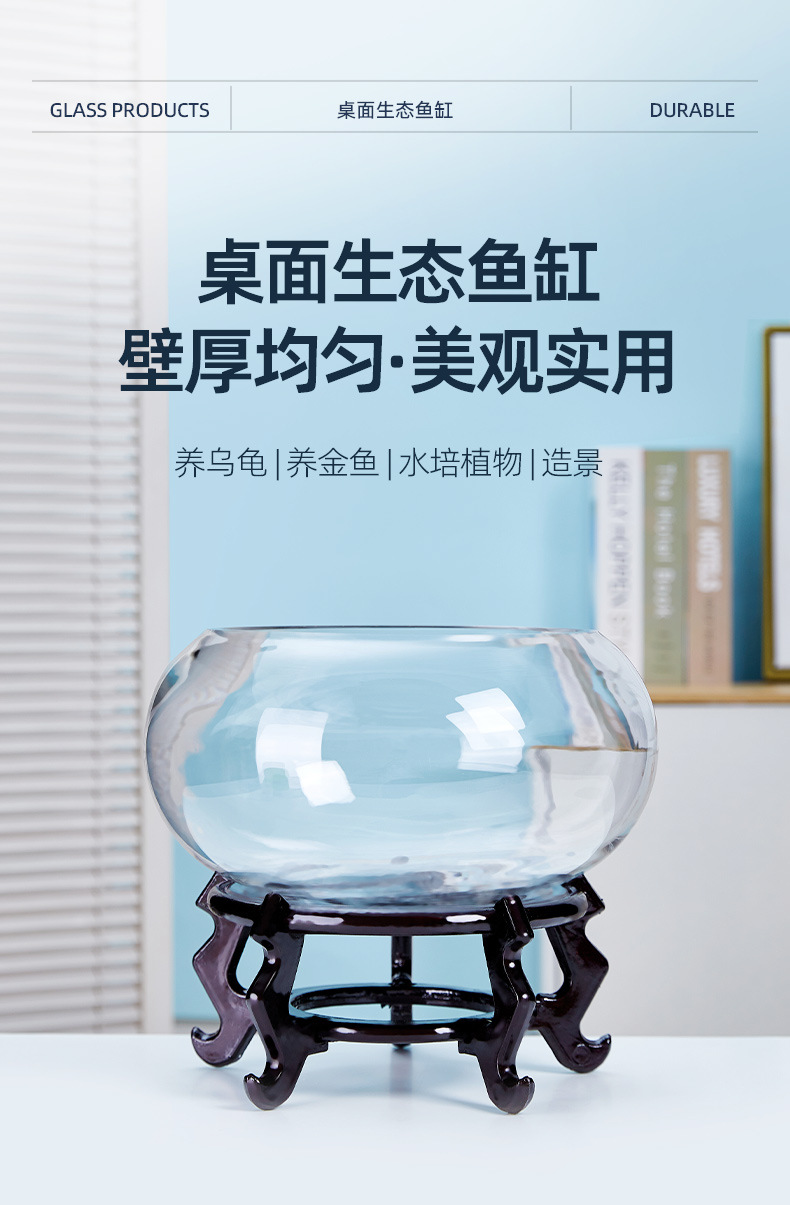 사무실 작은 물고기 탱크 두꺼운 투명 유리 거북이 탱크 거실 가정용 데스크탑 라운드 미니 작은 금붕어 탱크스토어 가기
