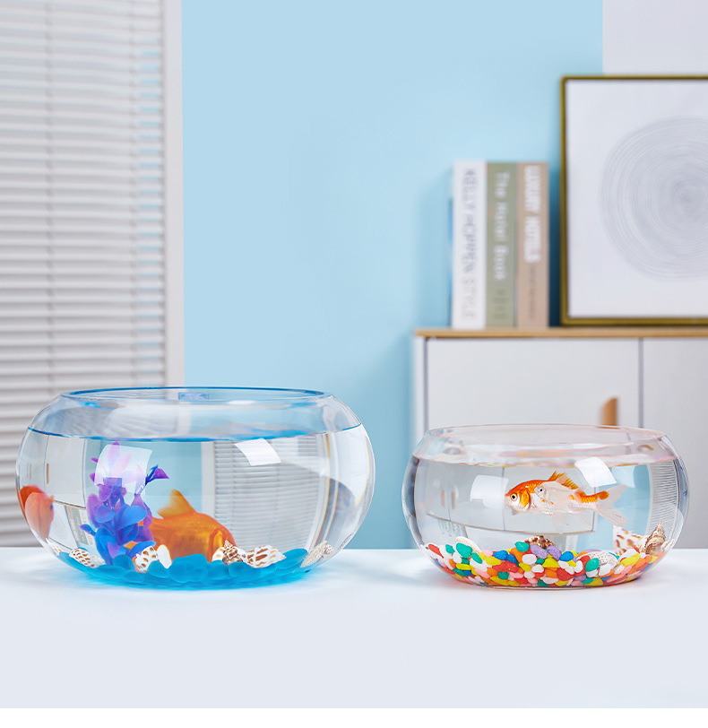 사무실 작은 물고기 탱크 두꺼운 투명 유리 거북이 탱크 거실 가정용 데스크탑 라운드 미니 작은 금붕어 탱크