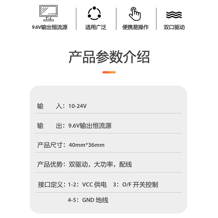 接口定义∶1-2: VCC供电   3:O/F开关控制