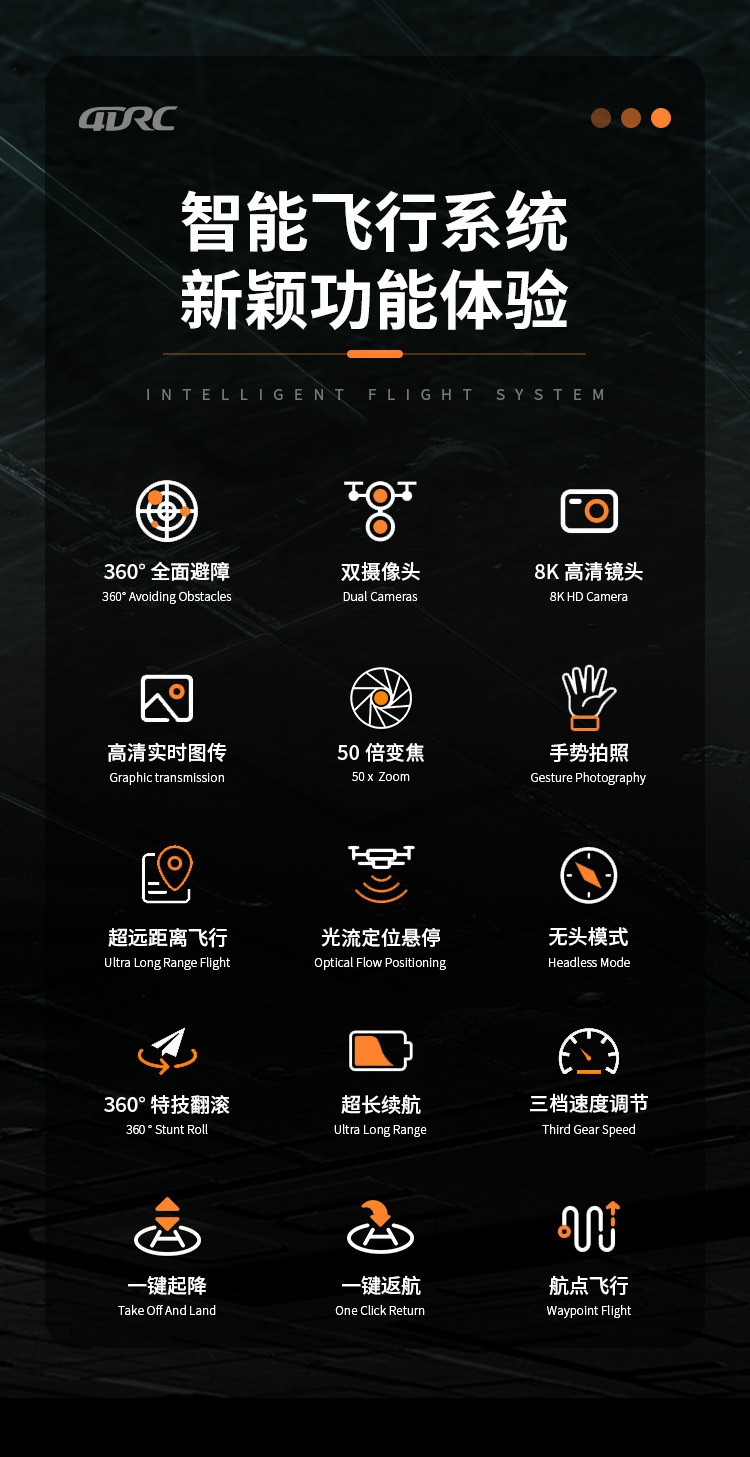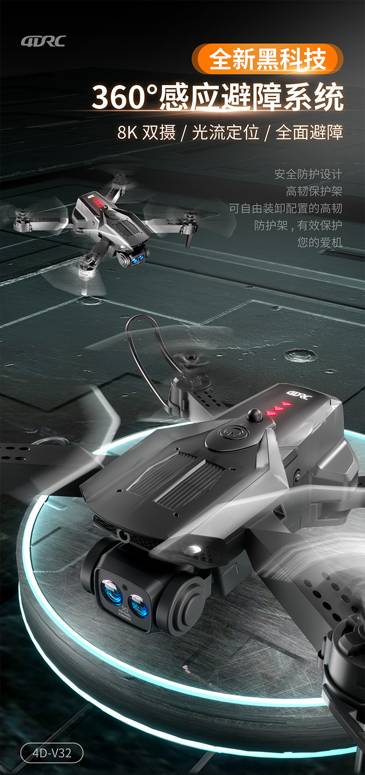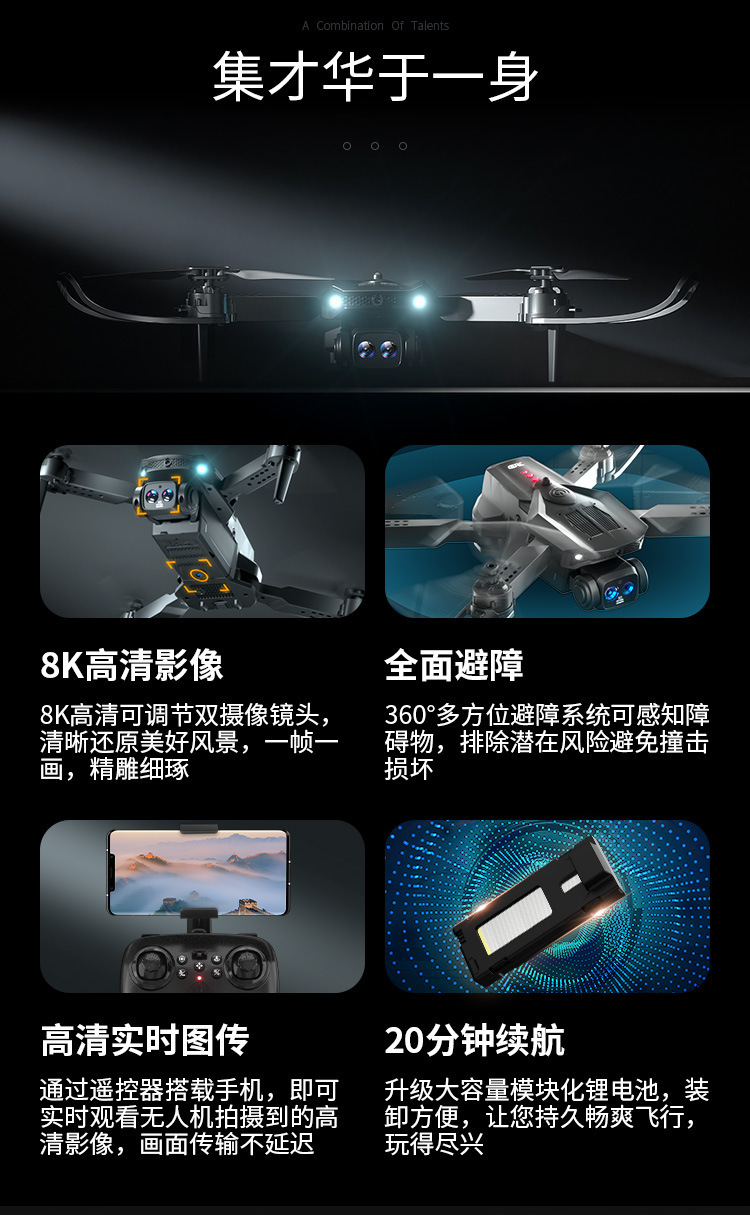 • 8K HD 듀얼 카메라 스위치【360 ° 장애물 회피/광학 흐름 안정화/원클릭 복귀]