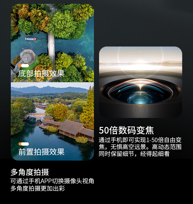 • 8K 고화질 듀얼 카메라 전환 [공중 고정 높이] 원클릭 복귀
