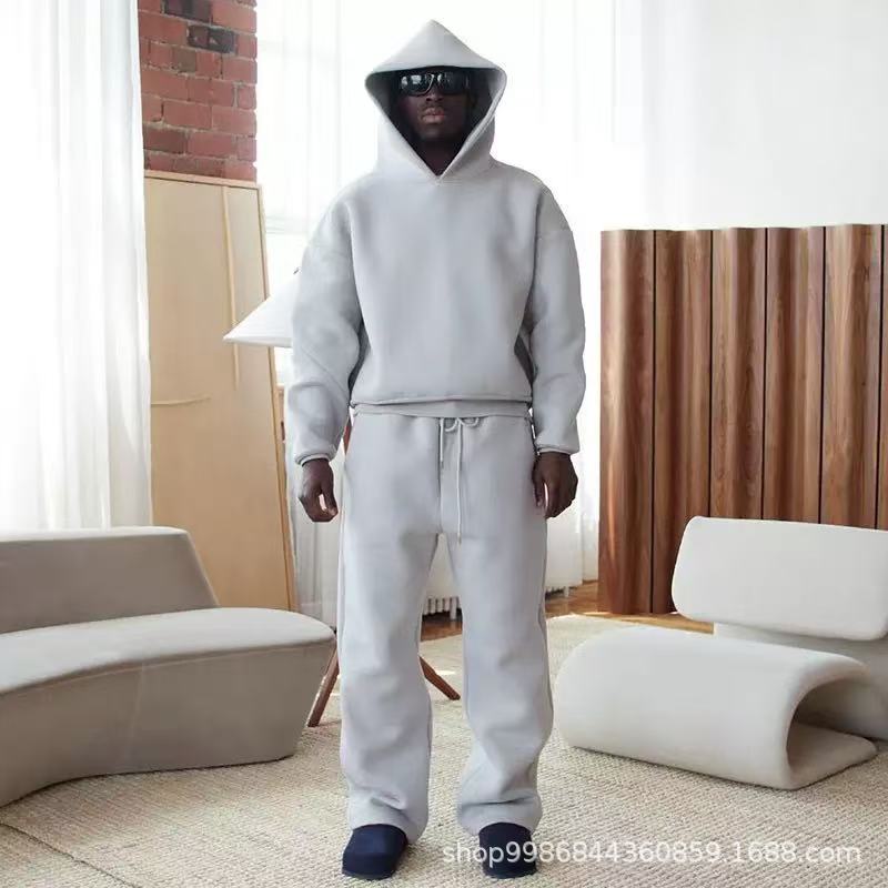 새로운 트렌디 한 국경 간 캐주얼 느슨한 세트 땀 후드 스웨트 바지 솔리드 컬러 폴리에스테르 세트