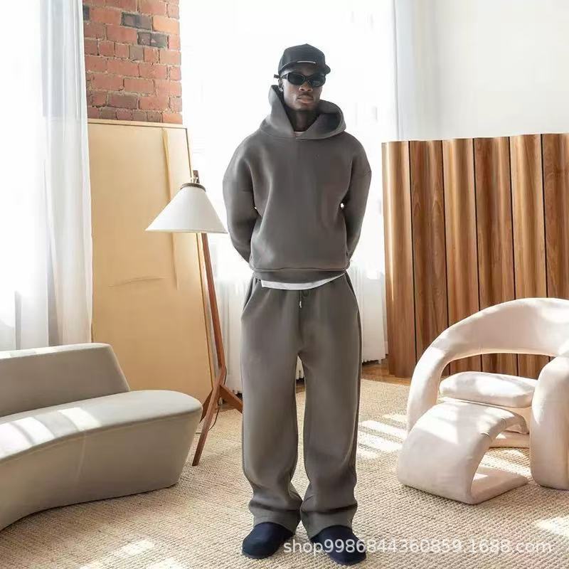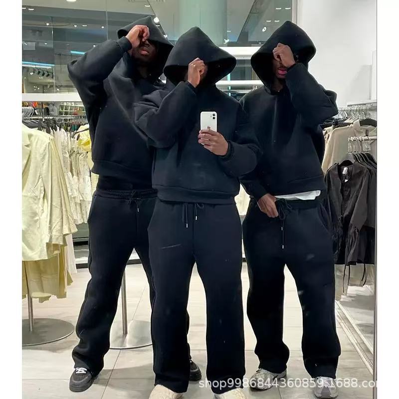 새로운 트렌디 한 국경 간 캐주얼 느슨한 세트 땀 후드 스웨트 바지 솔리드 컬러 폴리에스테르 세트스토어 가기