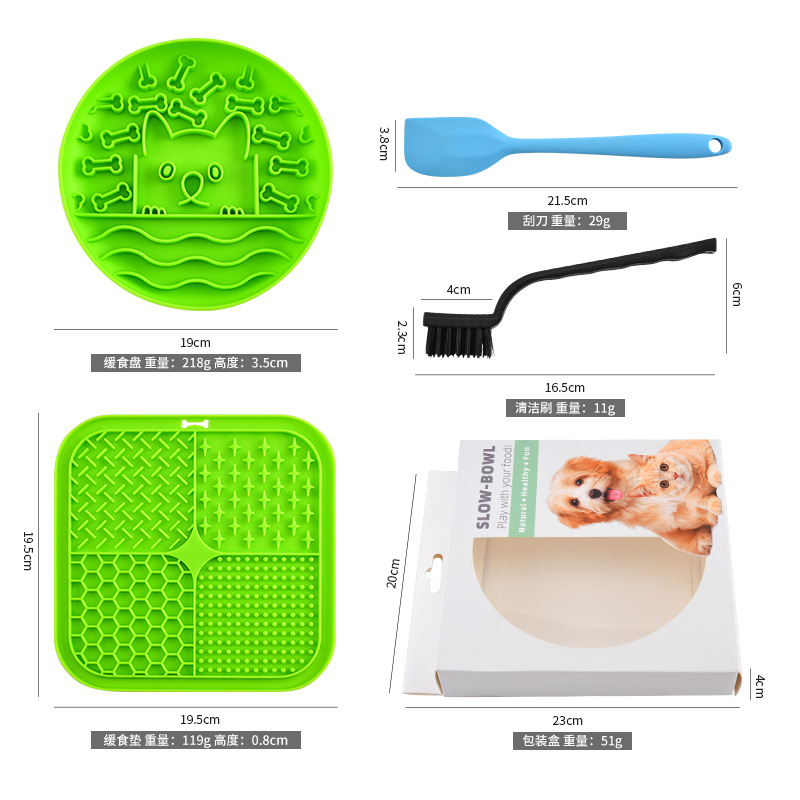 • 슬로우 푸드 그릇 + 슬로우 푸드 매트 + 청소용 주걱 + 청소용 솔 [녹색 색상 상자]