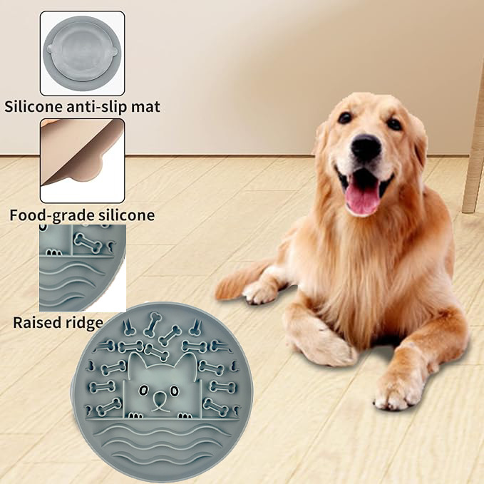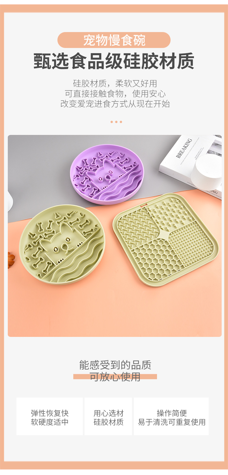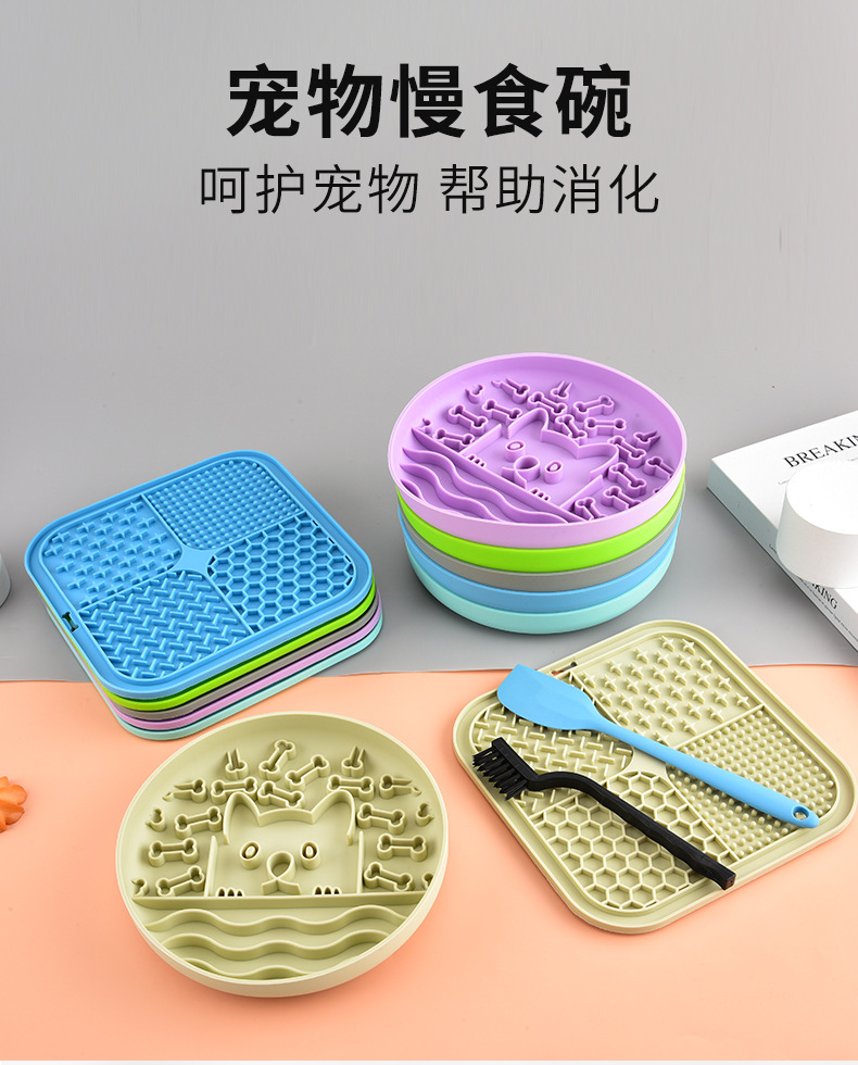 2025 새로운 실리콘 애완 동물 느린 음식 그릇 개 고양이 느린 음식 질식 방지 접시 음식 분지 개 그릇 흡입 컵으로 미끄럼 방지스토어 가기