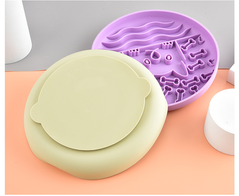 2025 새로운 실리콘 애완 동물 느린 음식 그릇 개 고양이 느린 음식 질식 방지 접시 음식 분지 개 그릇 흡입 컵으로 미끄럼 방지