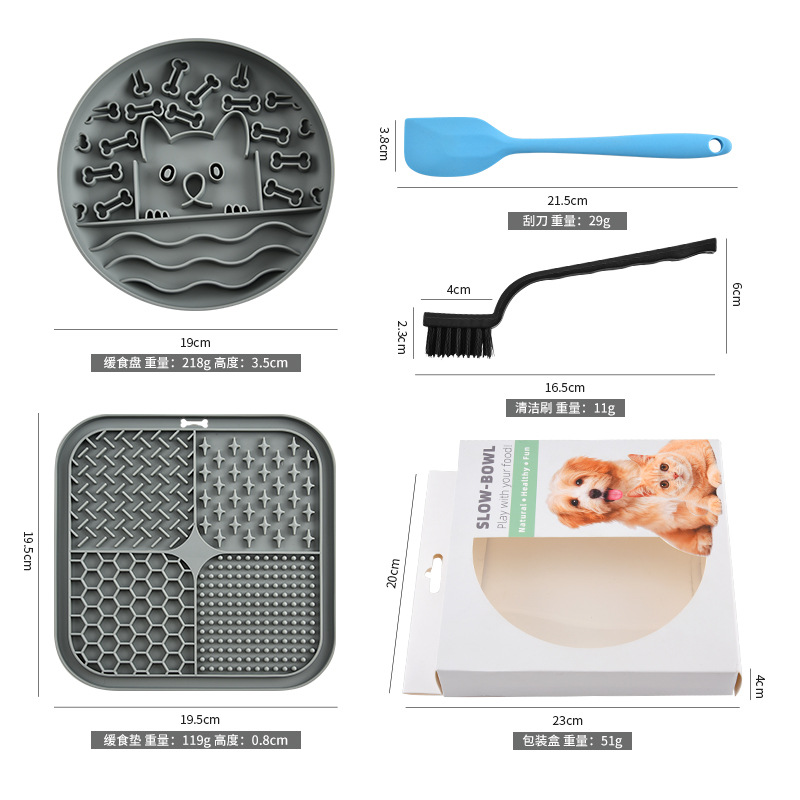• 슬로우 푸드 그릇 + 슬로우 푸드 매트 + 청소용 주걱 + 청소용 솔 [회색 색상 상자]