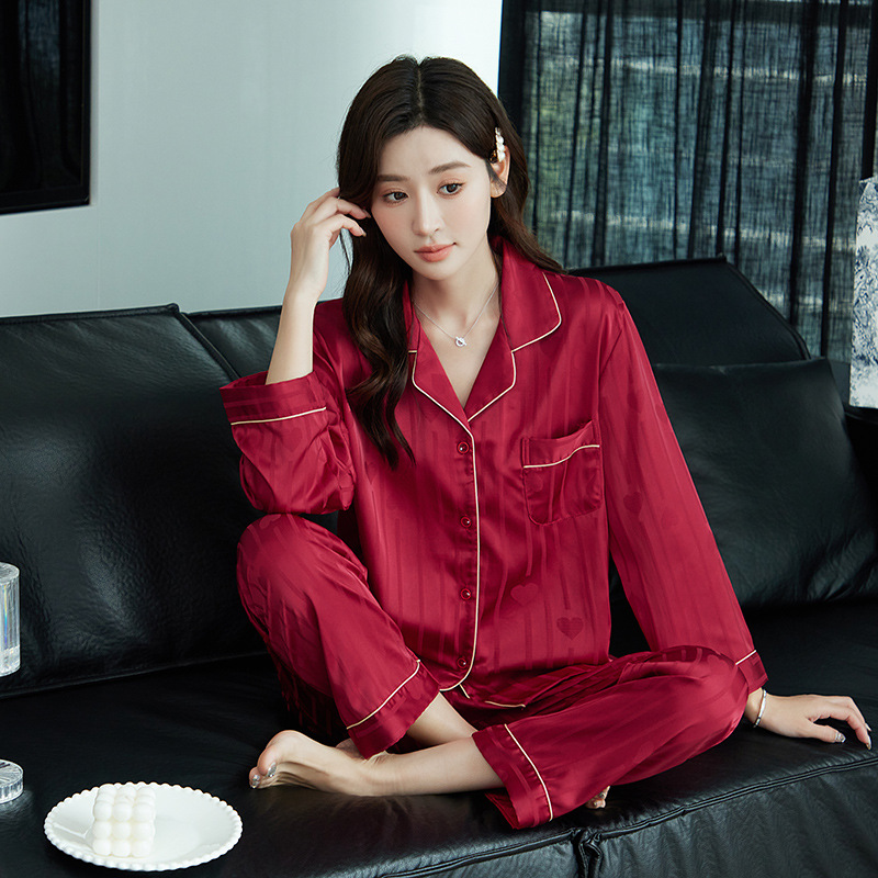 2025 년 봄과 가을 잠옷 아이스 실크 여성의 긴 소매 섹시한 레이스 슬링 나이트 가운 아침 가운 남자 홈 의류 세트스토어 가기