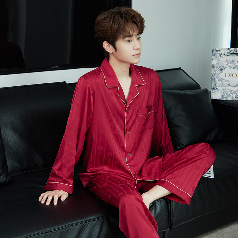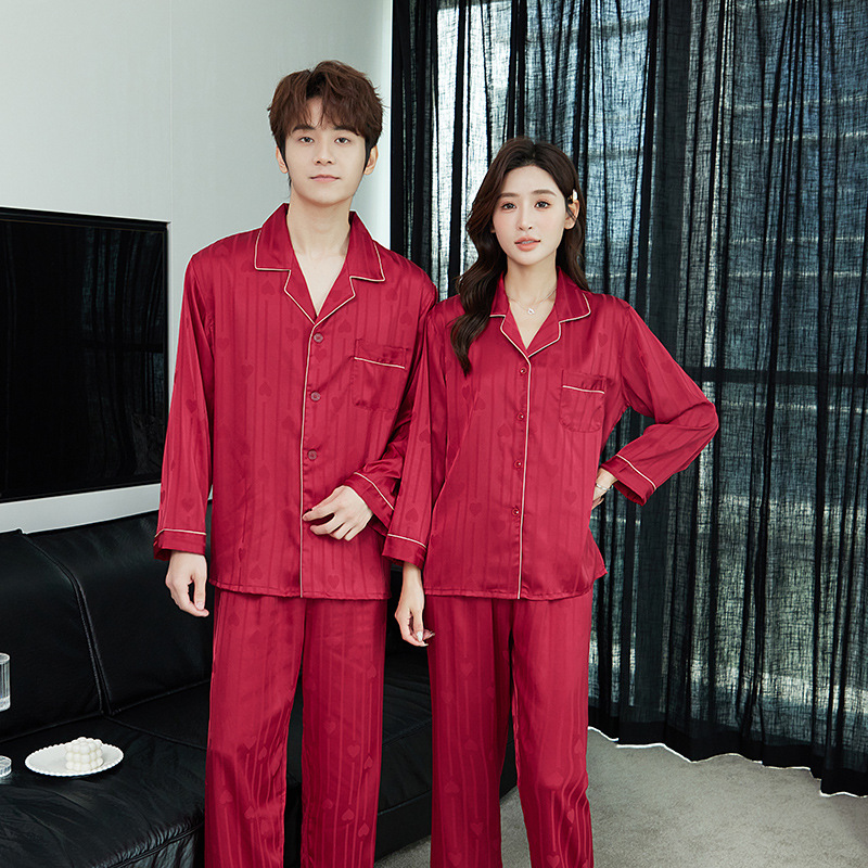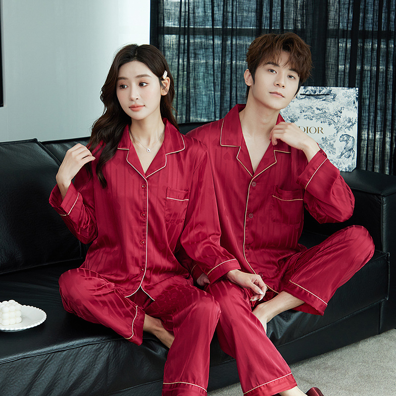 2025 년 봄과 가을 잠옷 아이스 실크 여성의 긴 소매 섹시한 레이스 슬링 나이트 가운 아침 가운 남자 홈 의류 세트