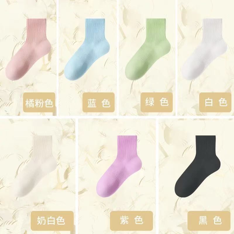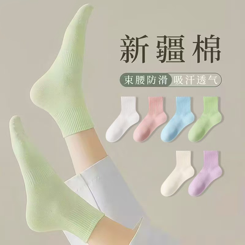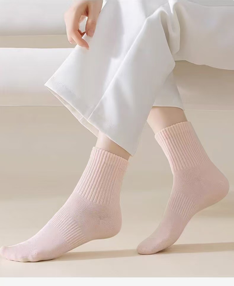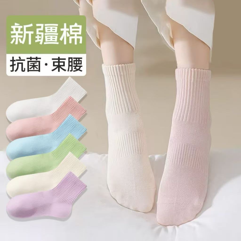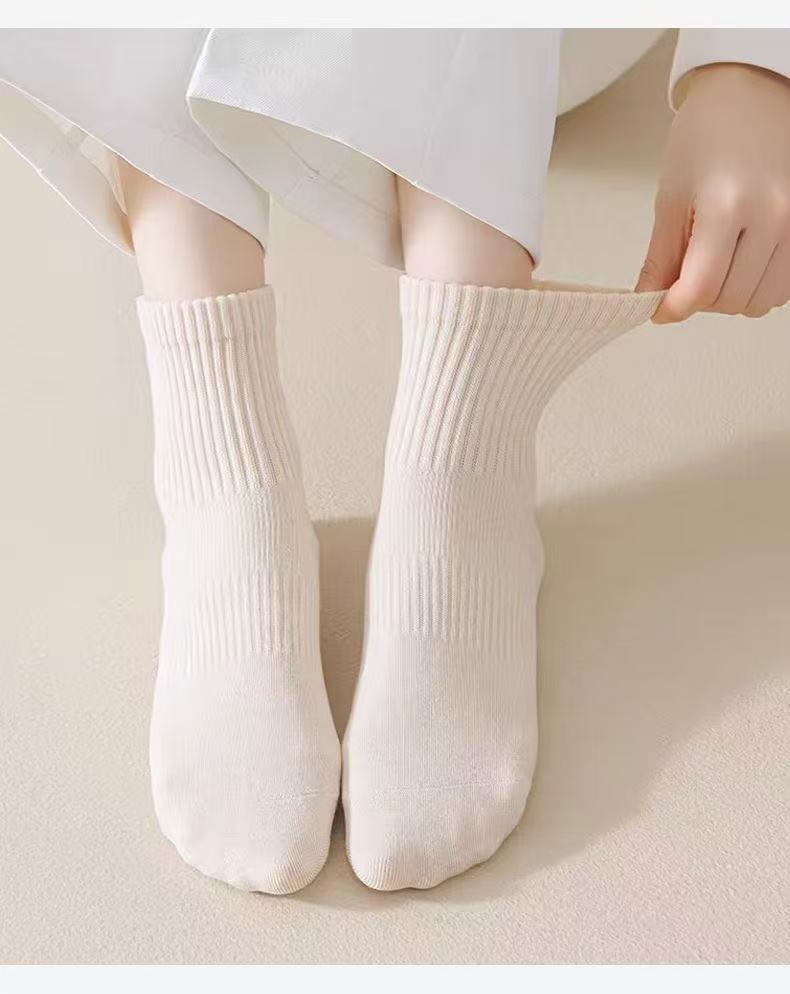 [신강 면화] 겨울 두꺼운 양말 여성용 긴 튜브 캔디 순수 컬러 봄과 가을 면화 스포츠 항균 통기성 탈취제