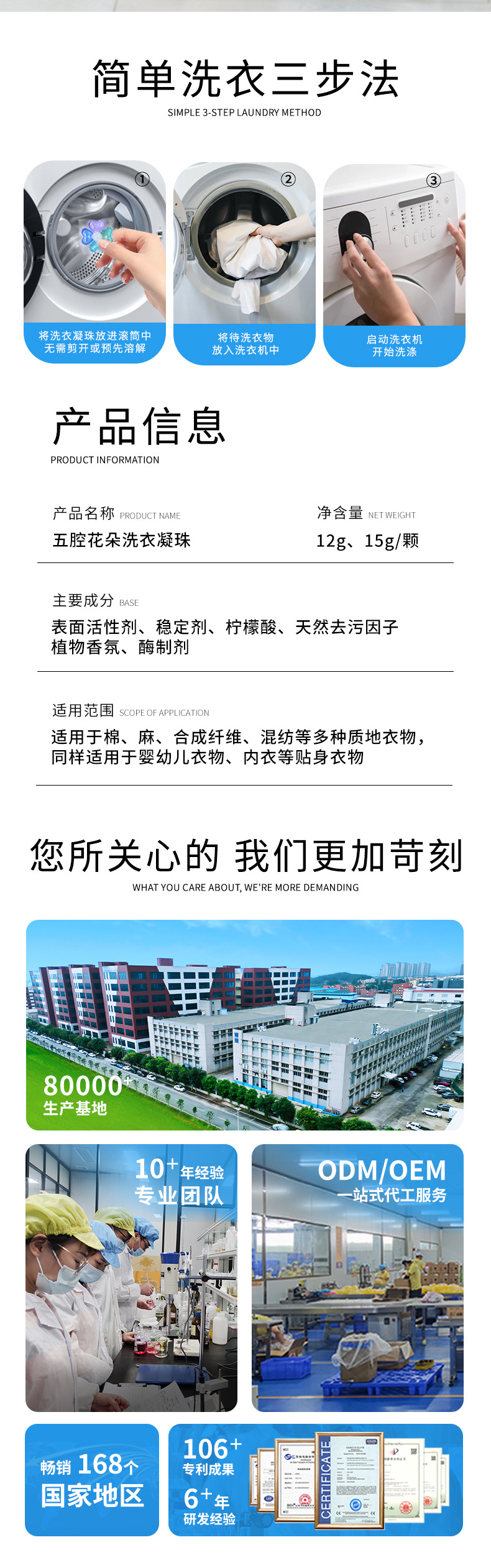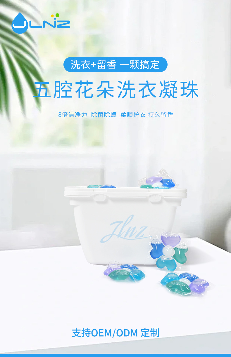 공장 도매 효소 5 챔버 향수 세탁 구슬 세탁 공 8 배 깨끗한 살균 및 진드기 제거 농축 세탁 세제