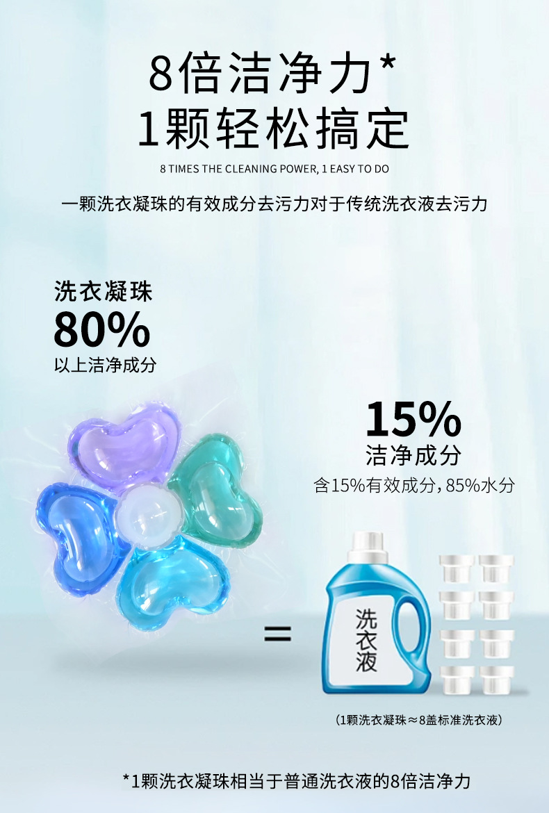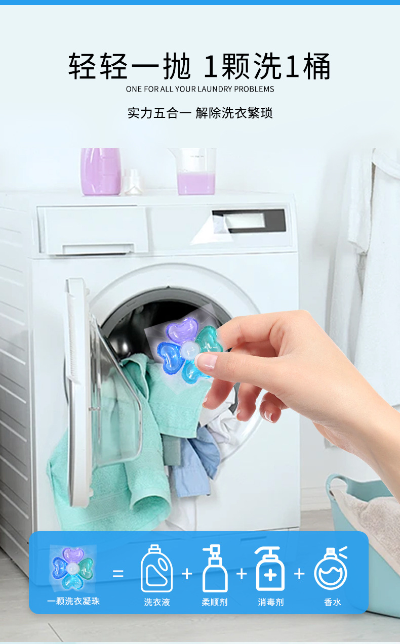 공장 도매 효소 5 챔버 향수 세탁 구슬 세탁 공 8 배 깨끗한 살균 및 진드기 제거 농축 세탁 세제스토어 가기